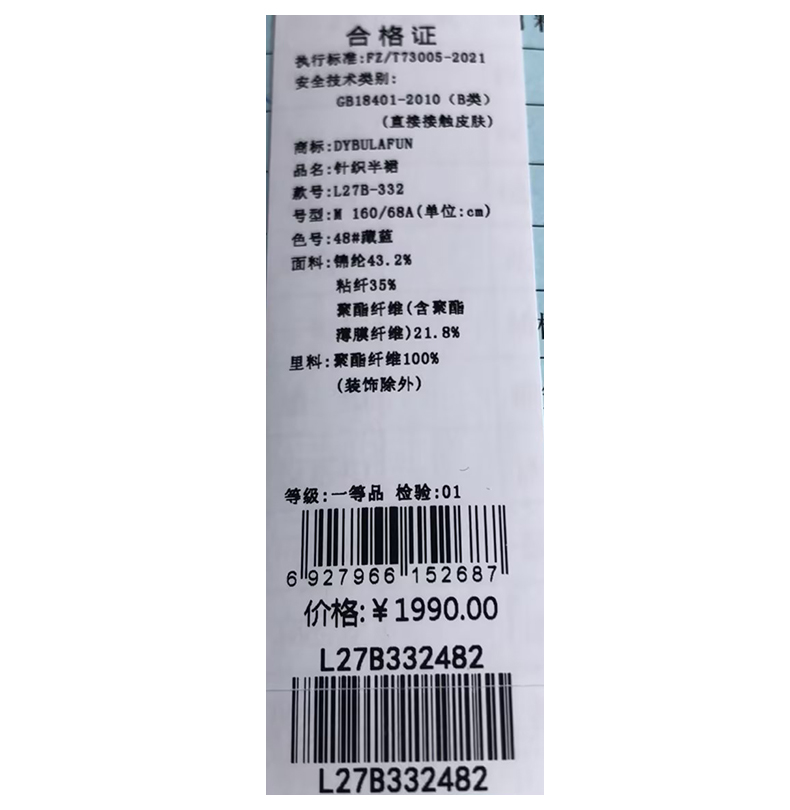 戴布拉芬针织半裙L27B332