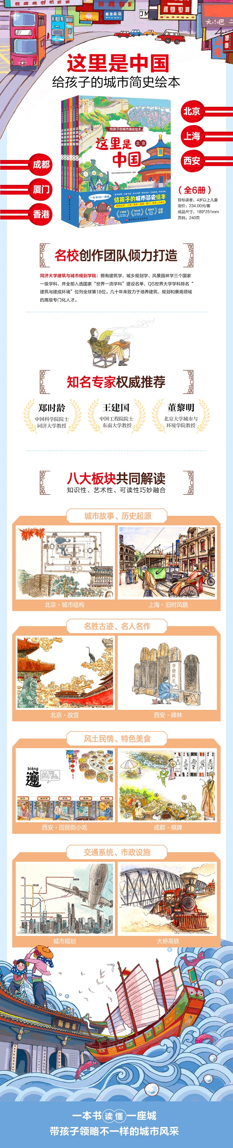 这里是中国(全6册,给孩子的城市简史绘本,精选北京、上海、成都、西安、厦门、香港六大城市,八大板块全