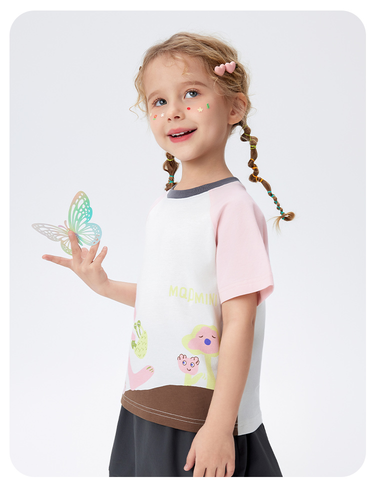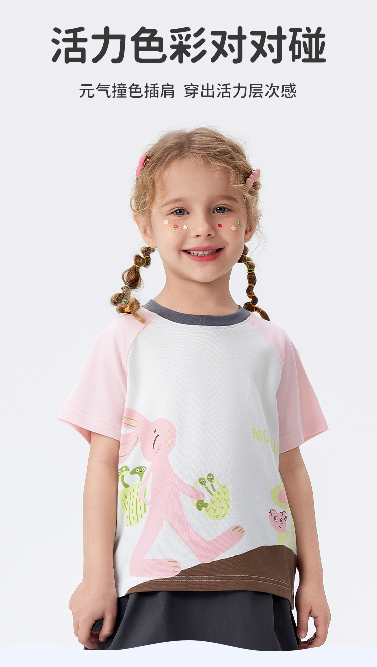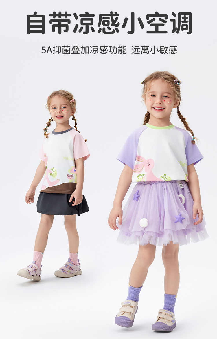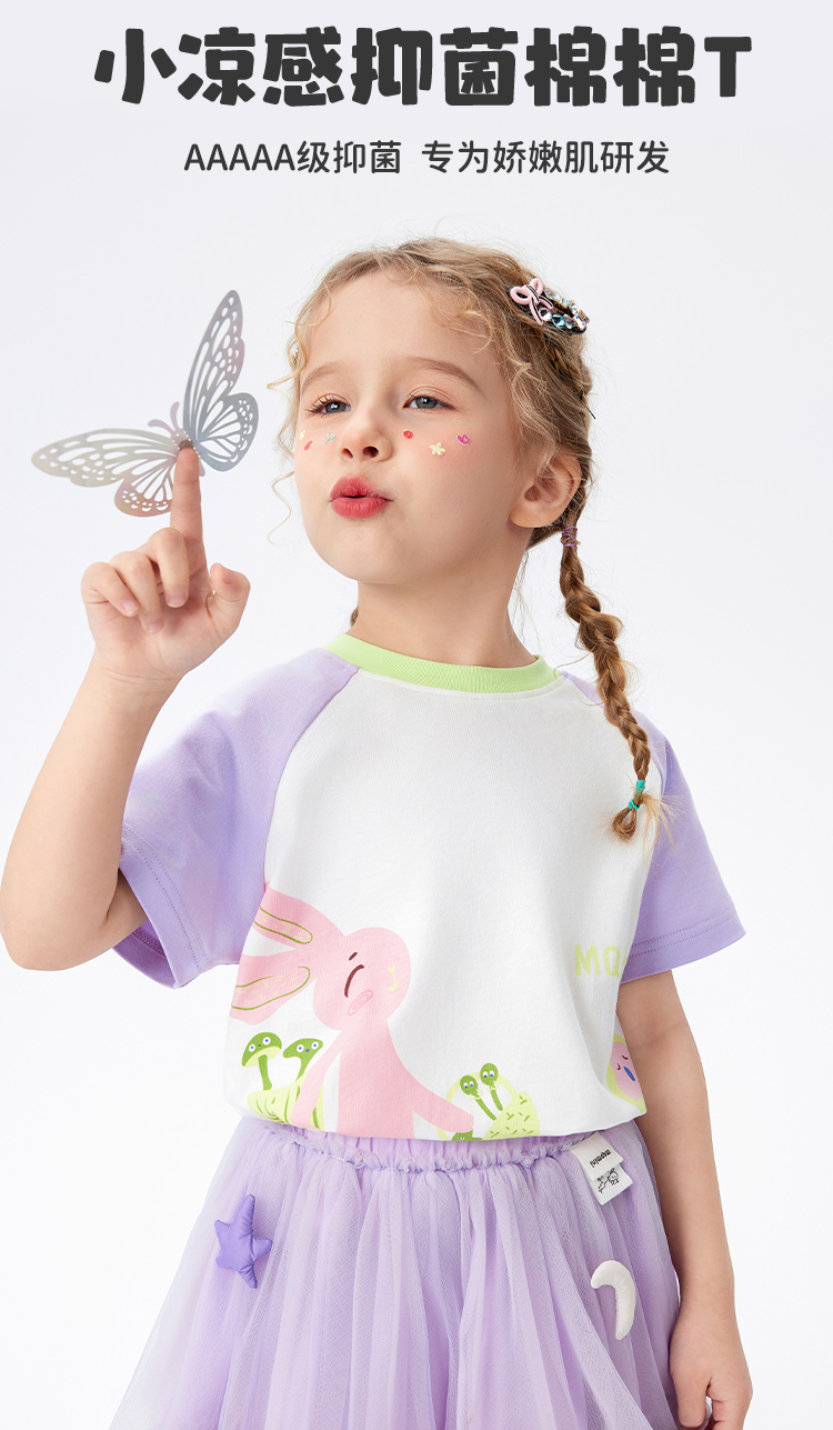 【凉感抑菌 】【90-140】【MQDmini】女童夏季短袖t恤儿童印花圆领上衣