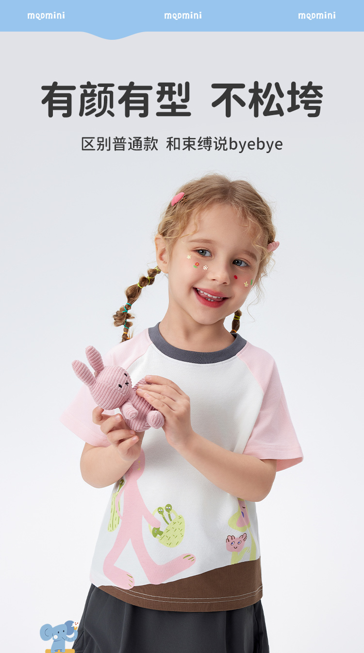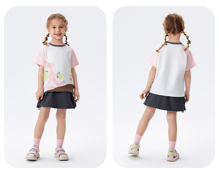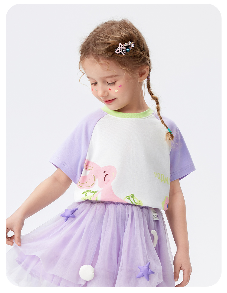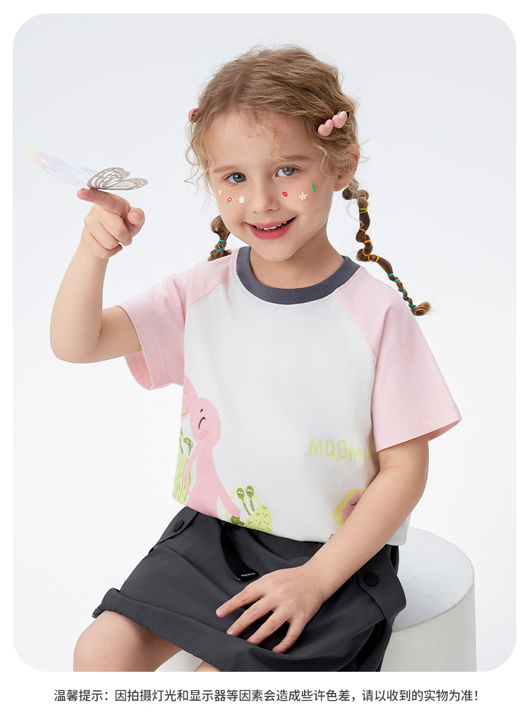 【凉感抑菌 】【90-140】【MQDmini】女童夏季短袖t恤儿童印花圆领上衣