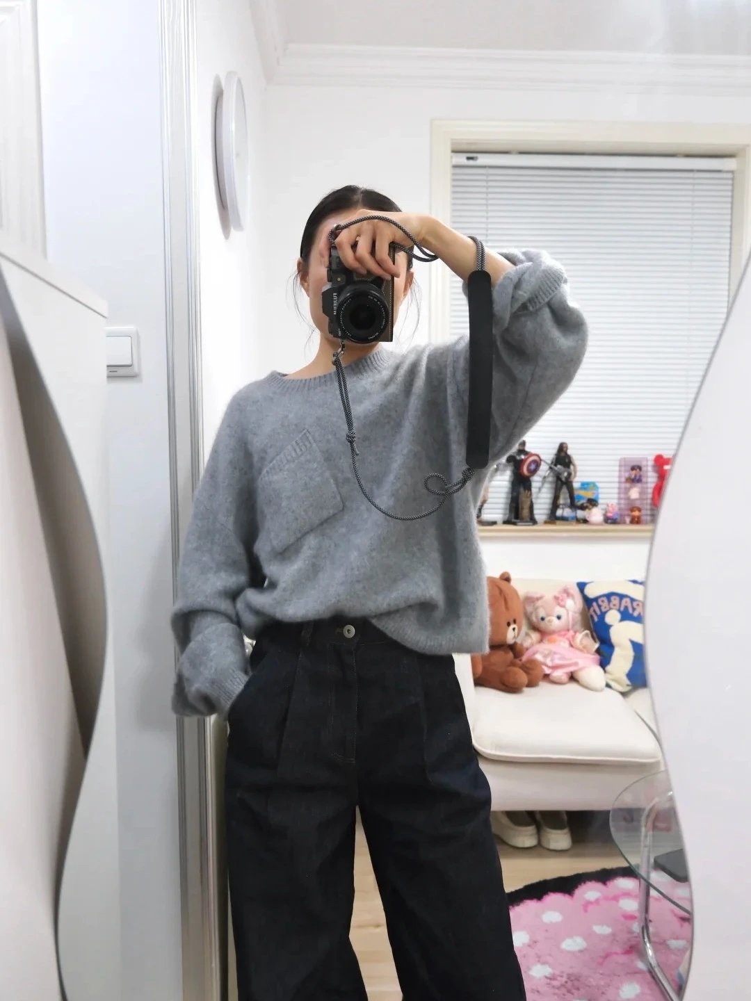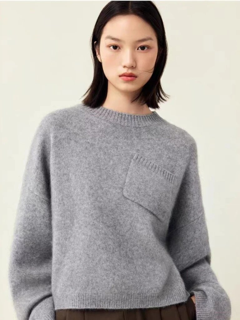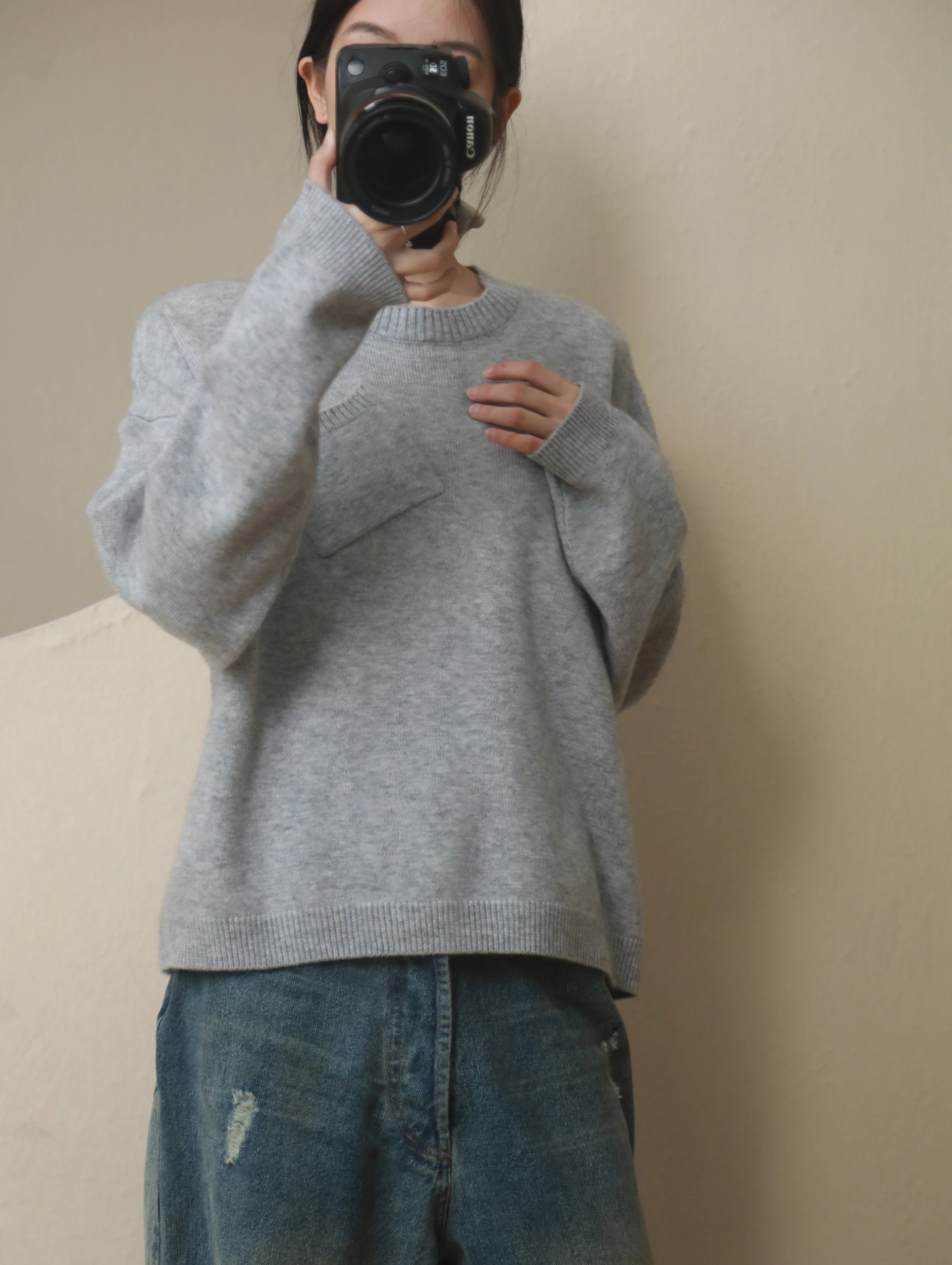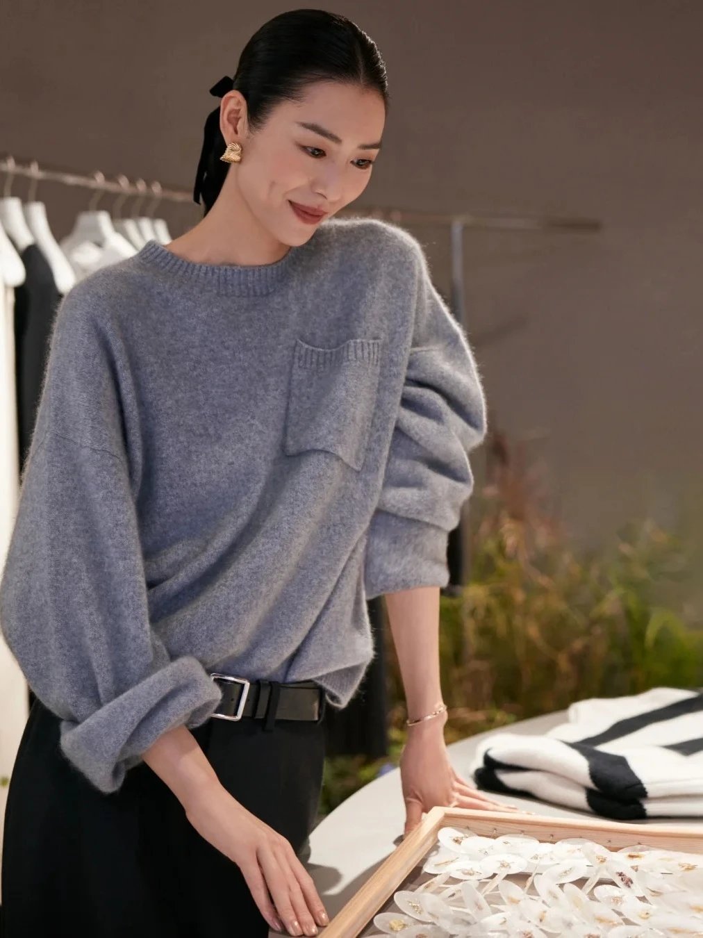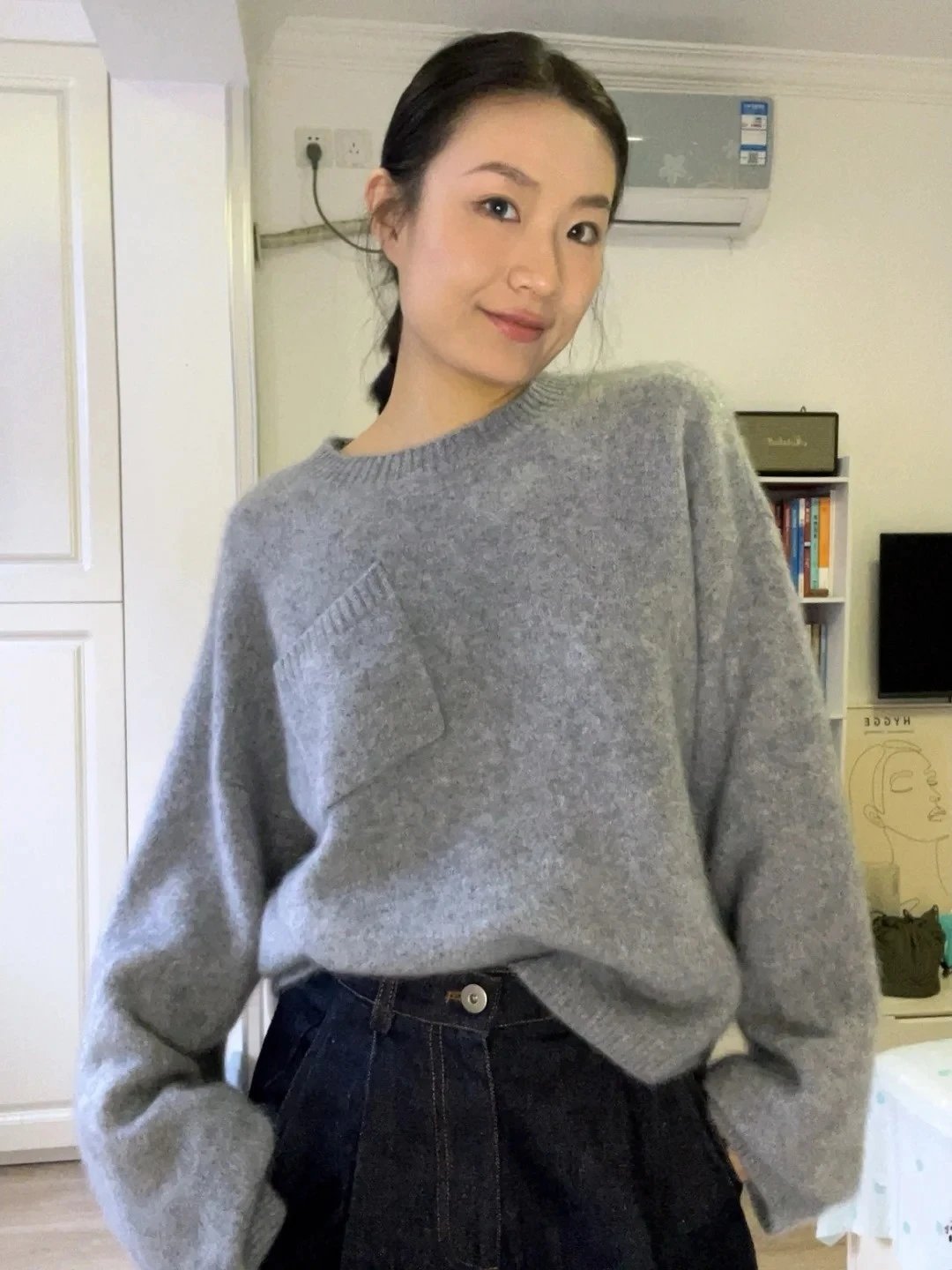 老米优品🎈 3-7天发!高端系列🐏 山羊绒+绵羊毛《口袋设计圆领羊毛针织套头衫》是一份自由自在的洒脱~ 慵懒风毛衣。
