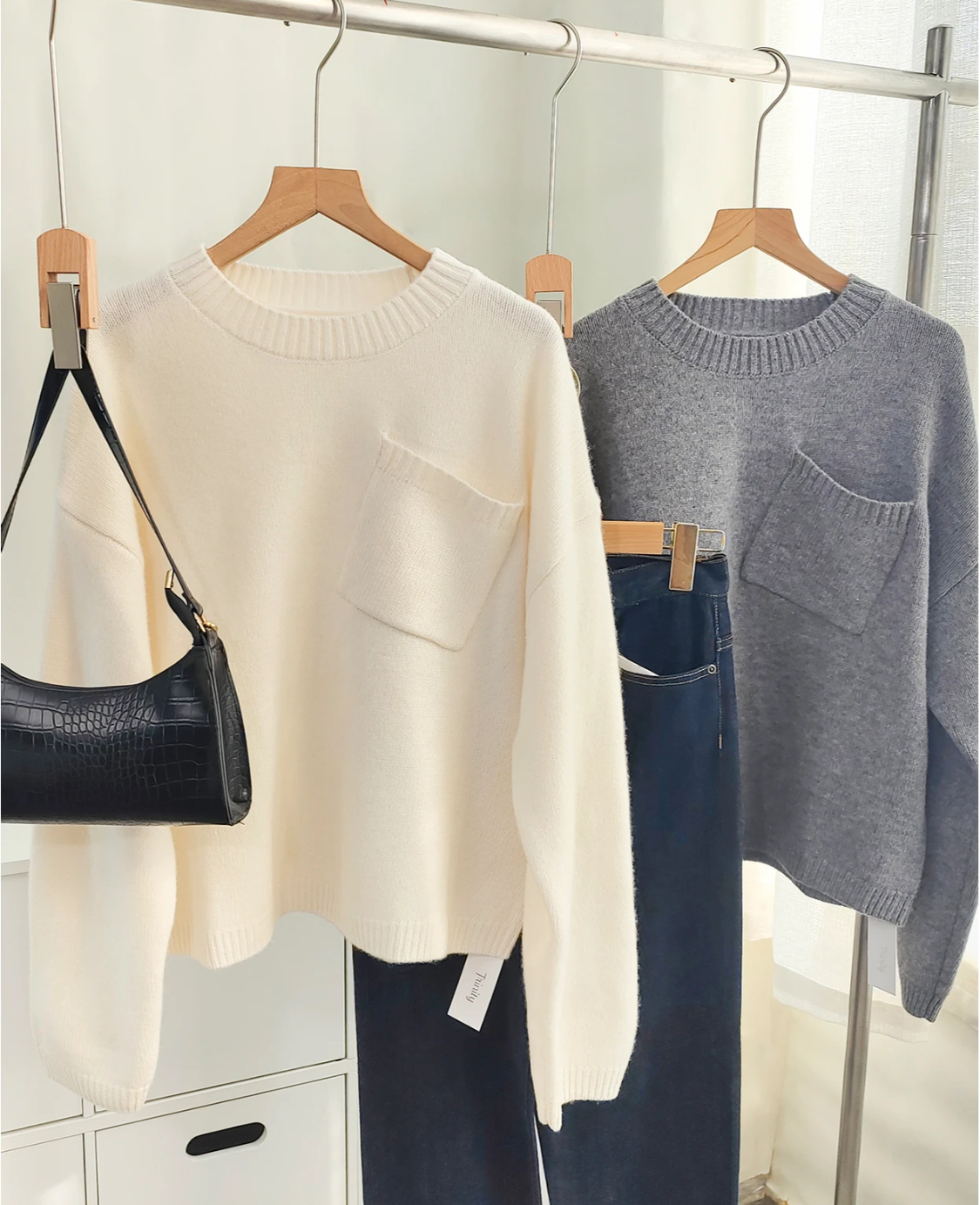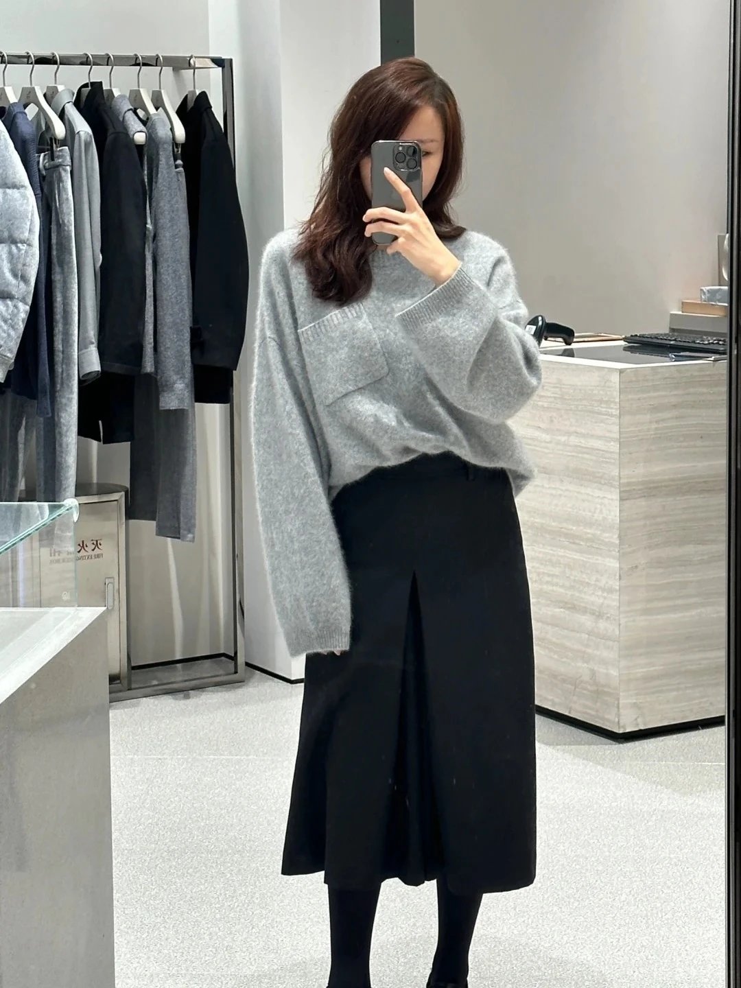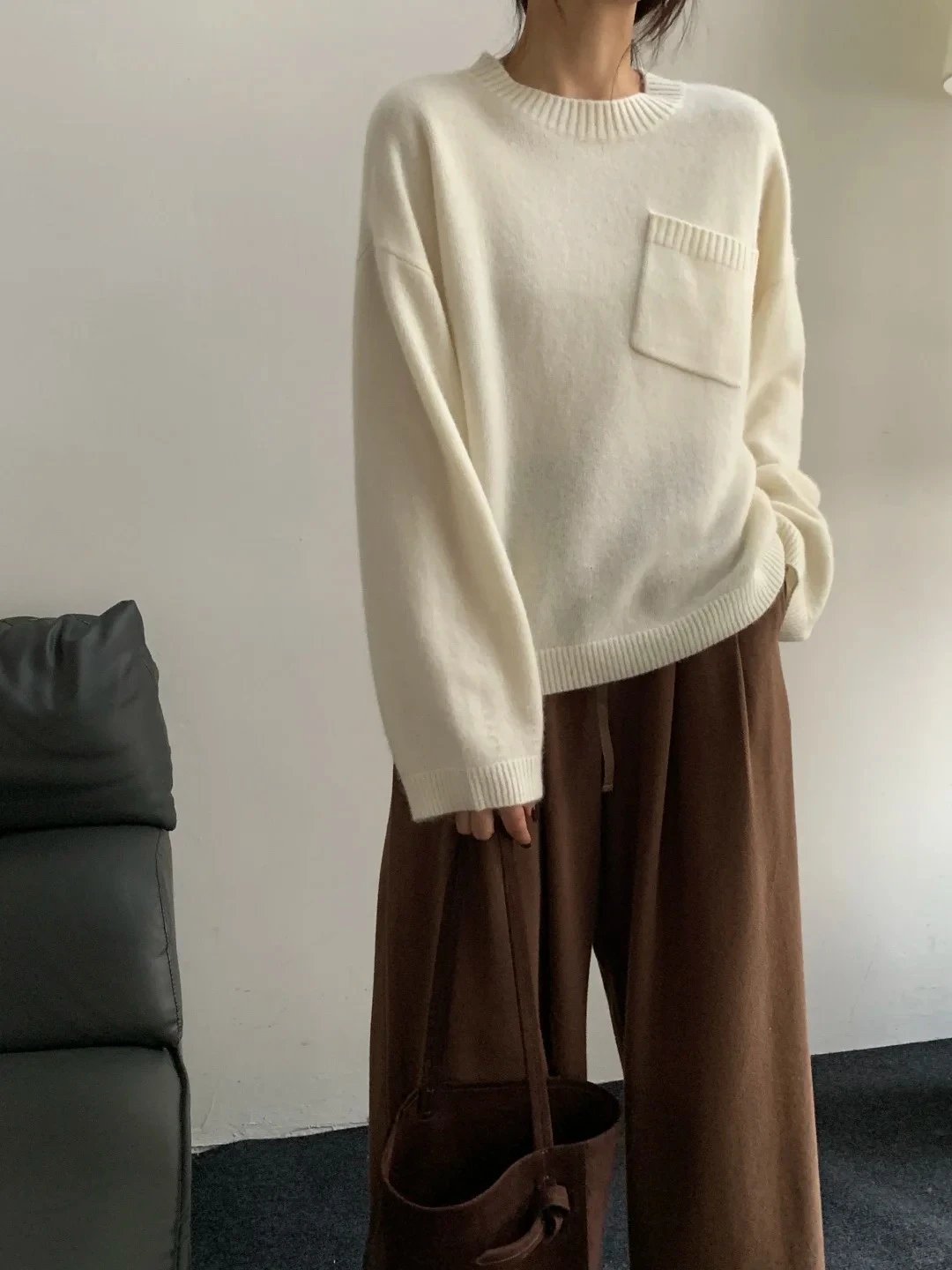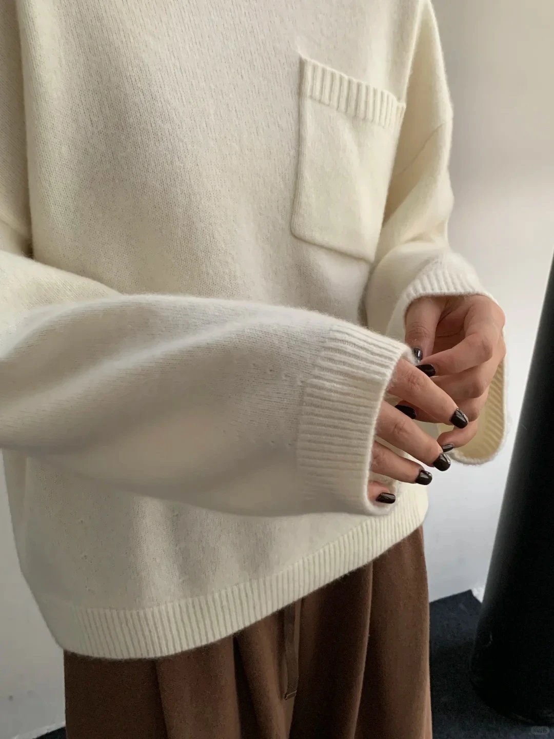 老米优品🎈 3-7天发!高端系列🐏 山羊绒+绵羊毛《口袋设计圆领羊毛针织套头衫》是一份自由自在的洒脱~ 慵懒风毛衣。