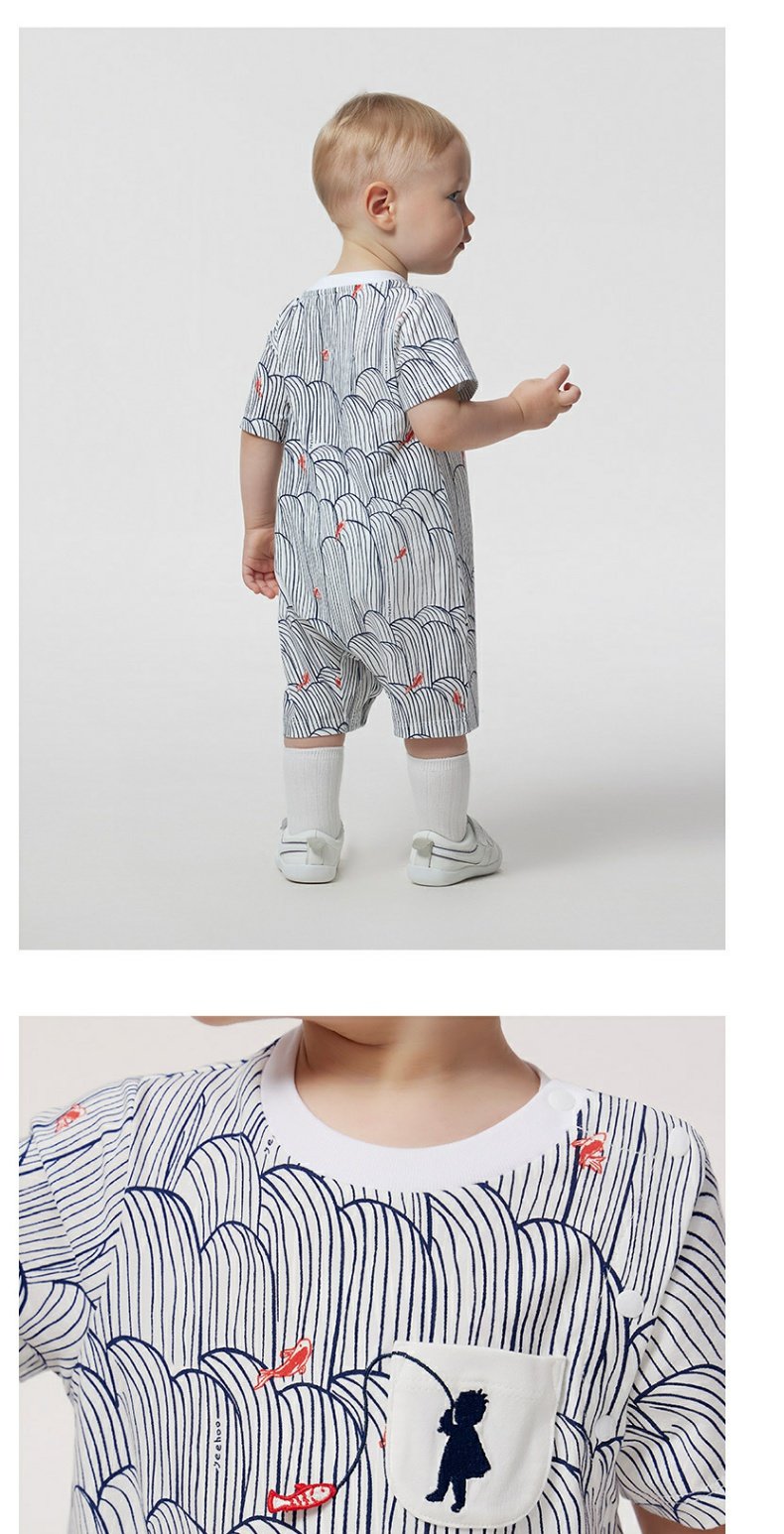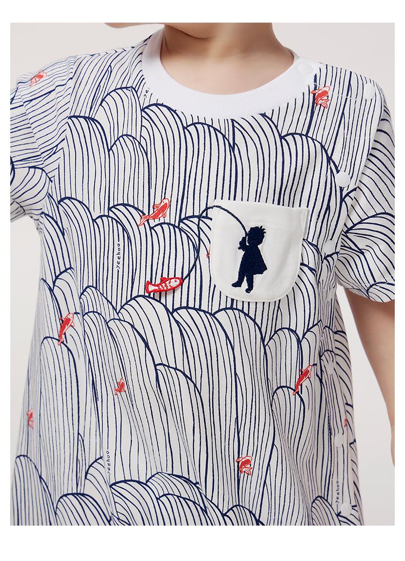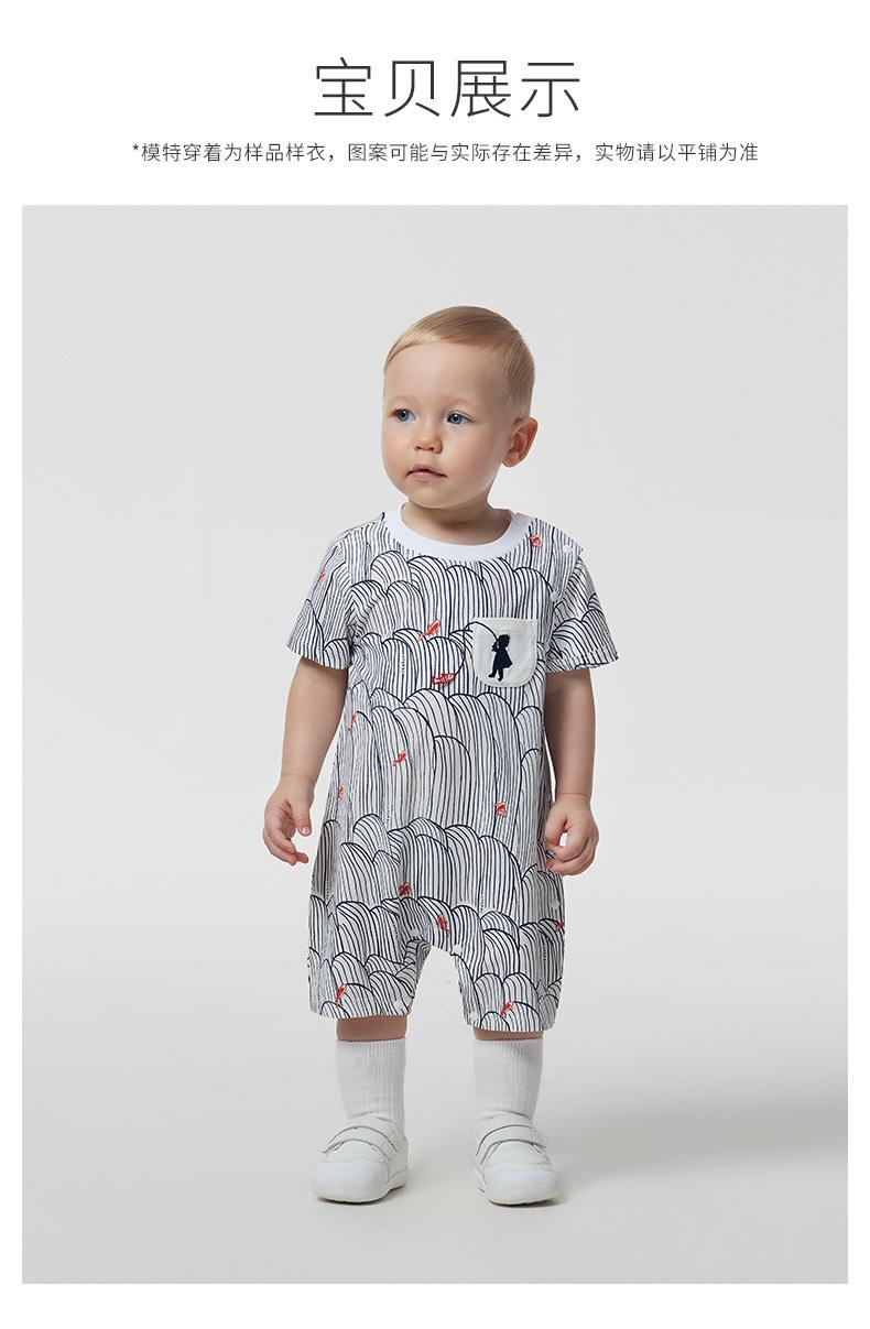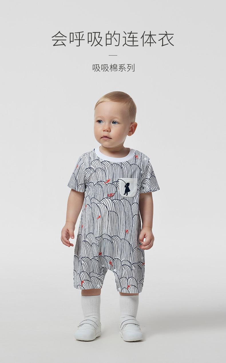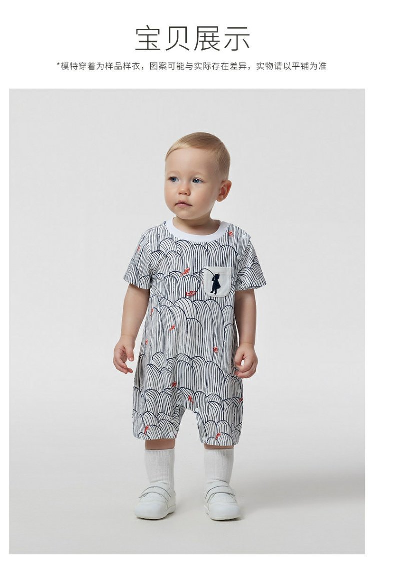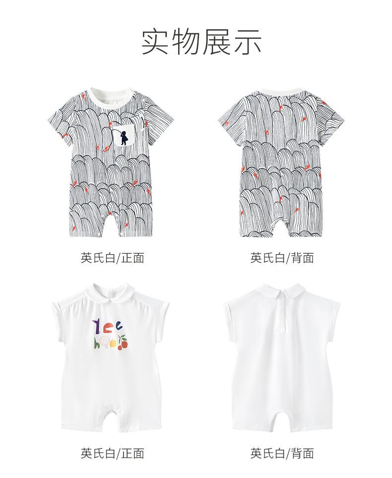 英氏童装男宝宝爬服2023夏季新款婴儿短袖哈衣连体衣YRHBJ2P333A