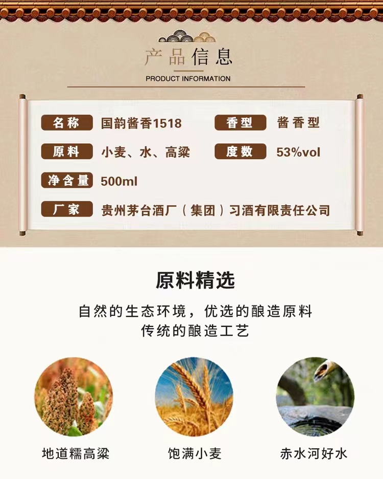 习酒国韵1518 财富数字系列 53度酱香型白酒 500ml 节日送礼 单瓶 500ml
