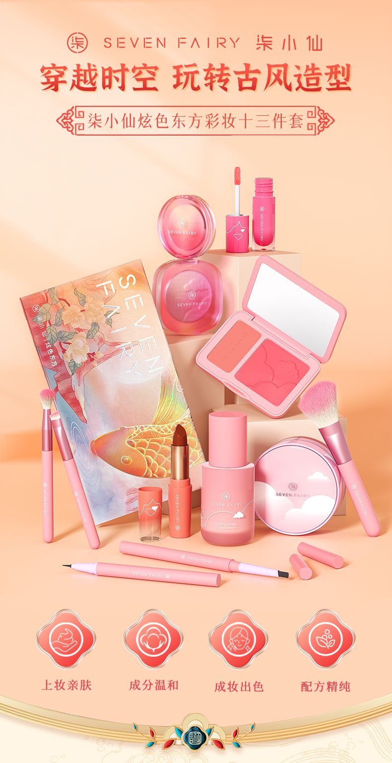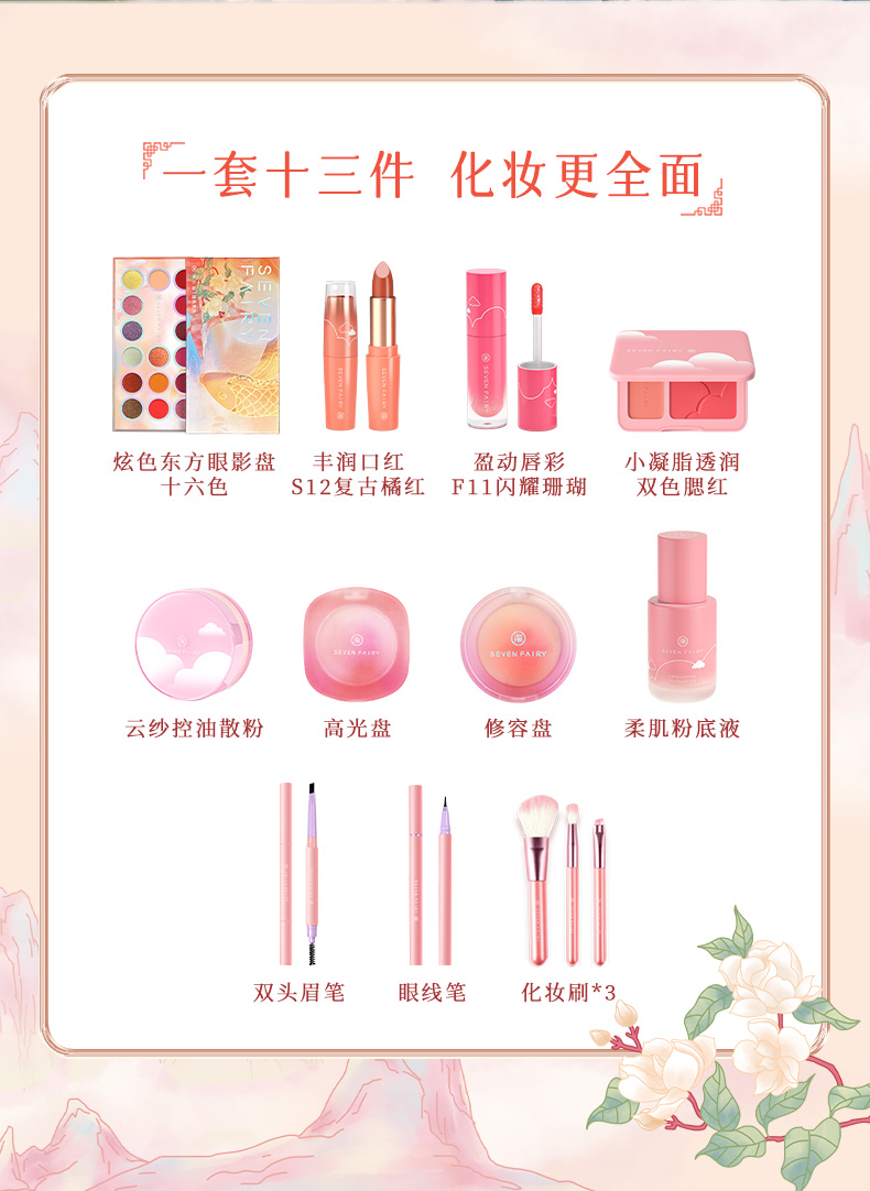 柒小仙 耀美彩妆13件套 5岁以上(炫色东方) 汉服初学者化妆品套装眼影演出舞台妆专用彩妆套装少女入门
