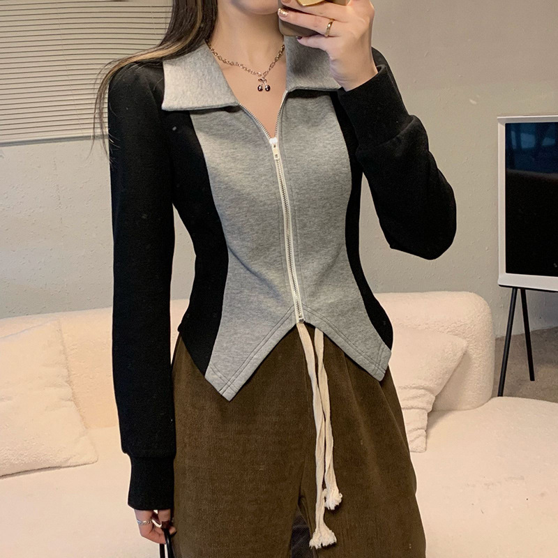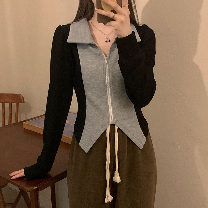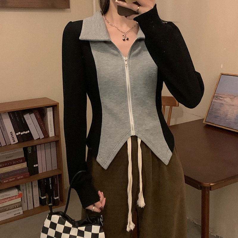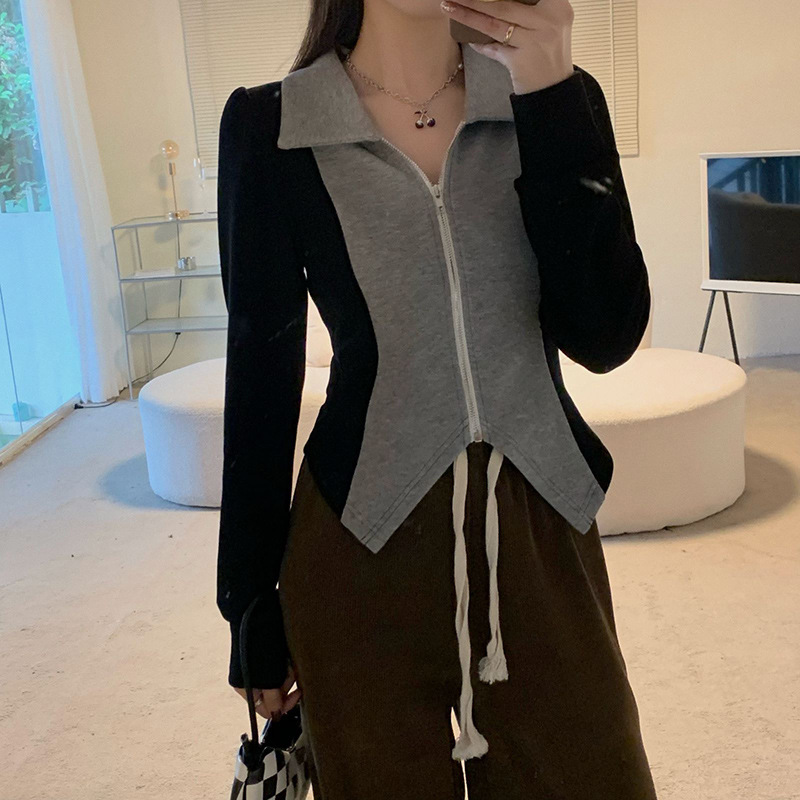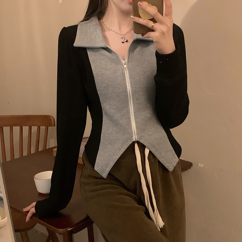 春秋新款【polo领打底衫】大码女装内搭T恤 胖mm显瘦 撞色长袖短款上衣