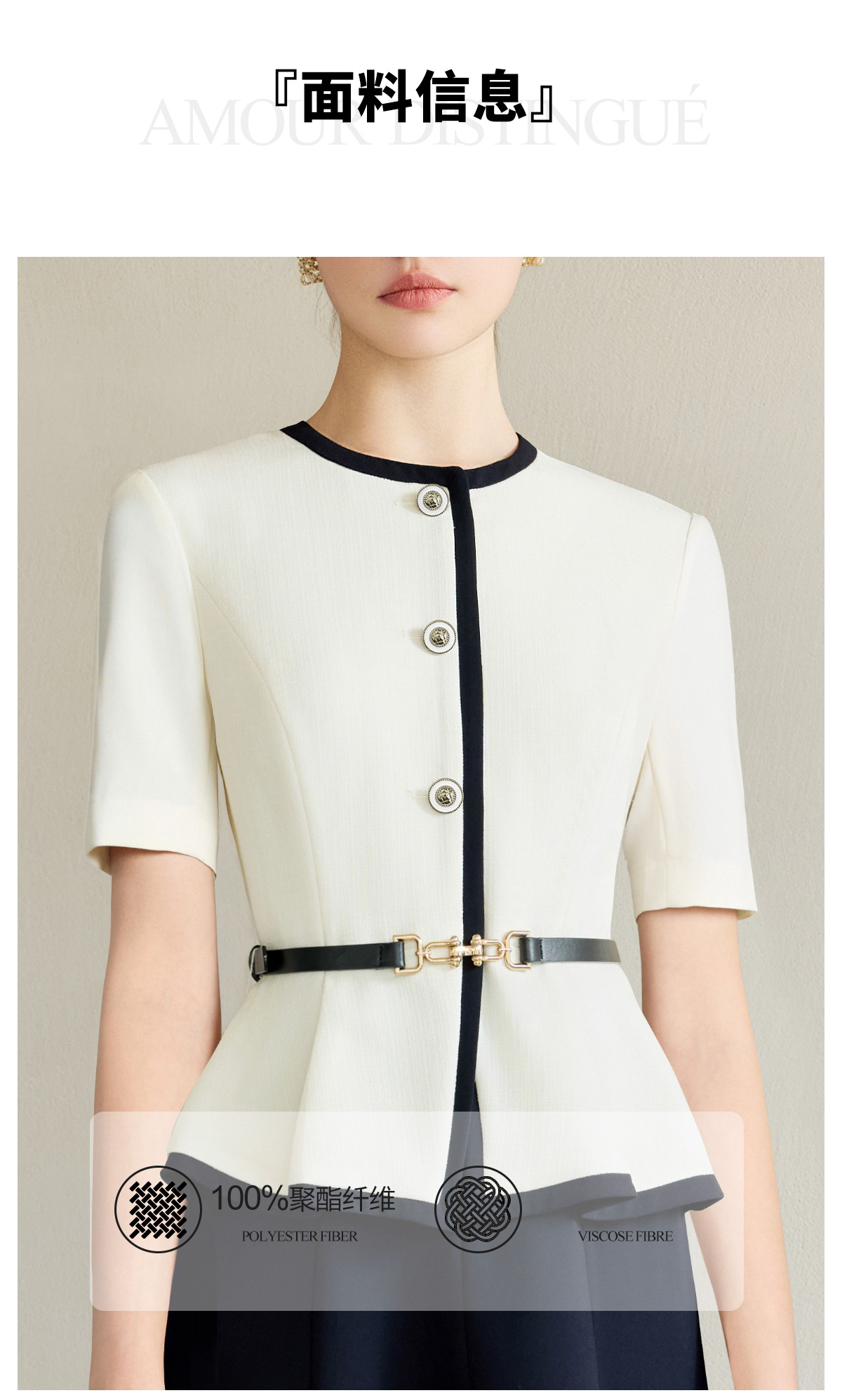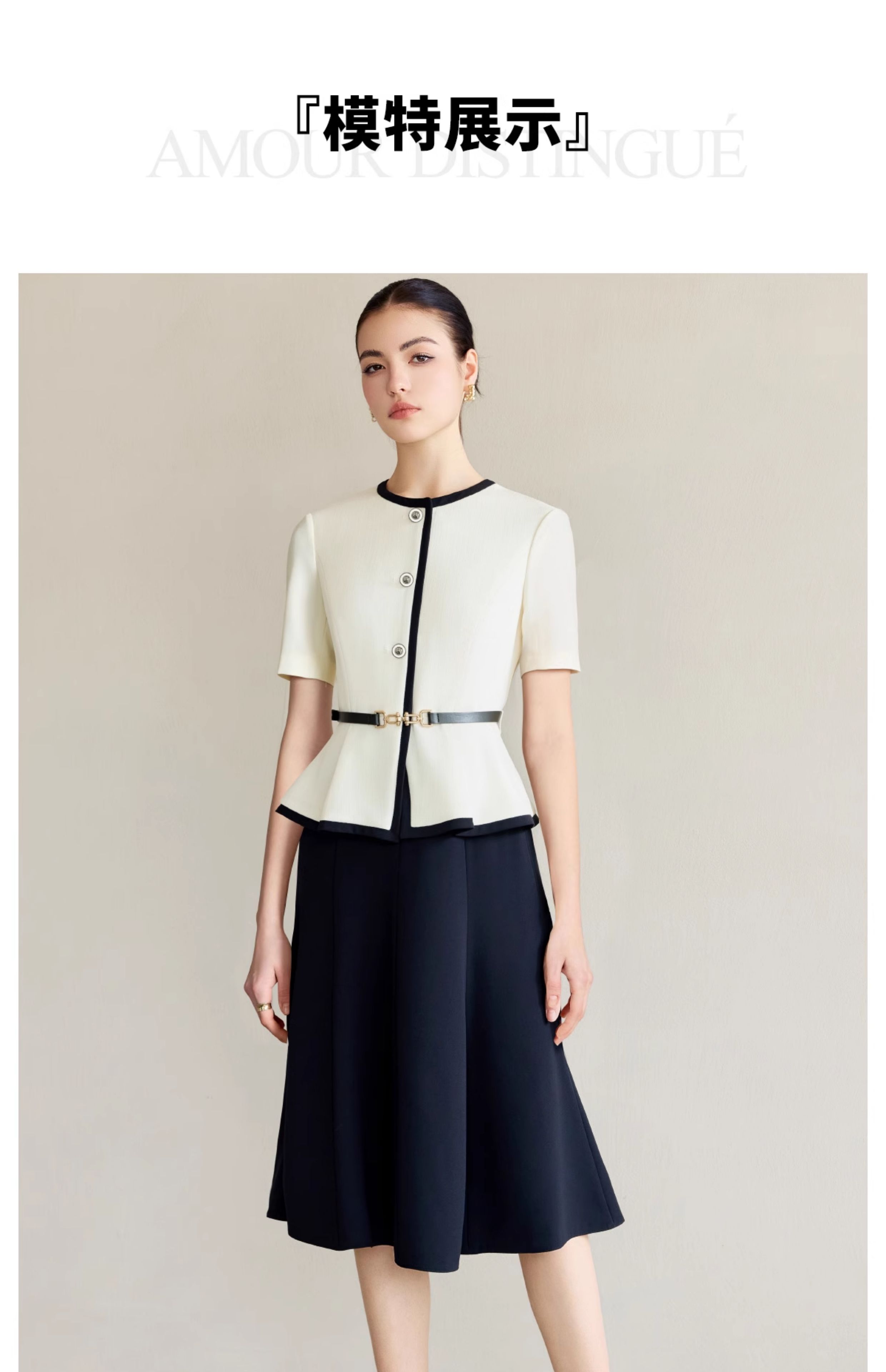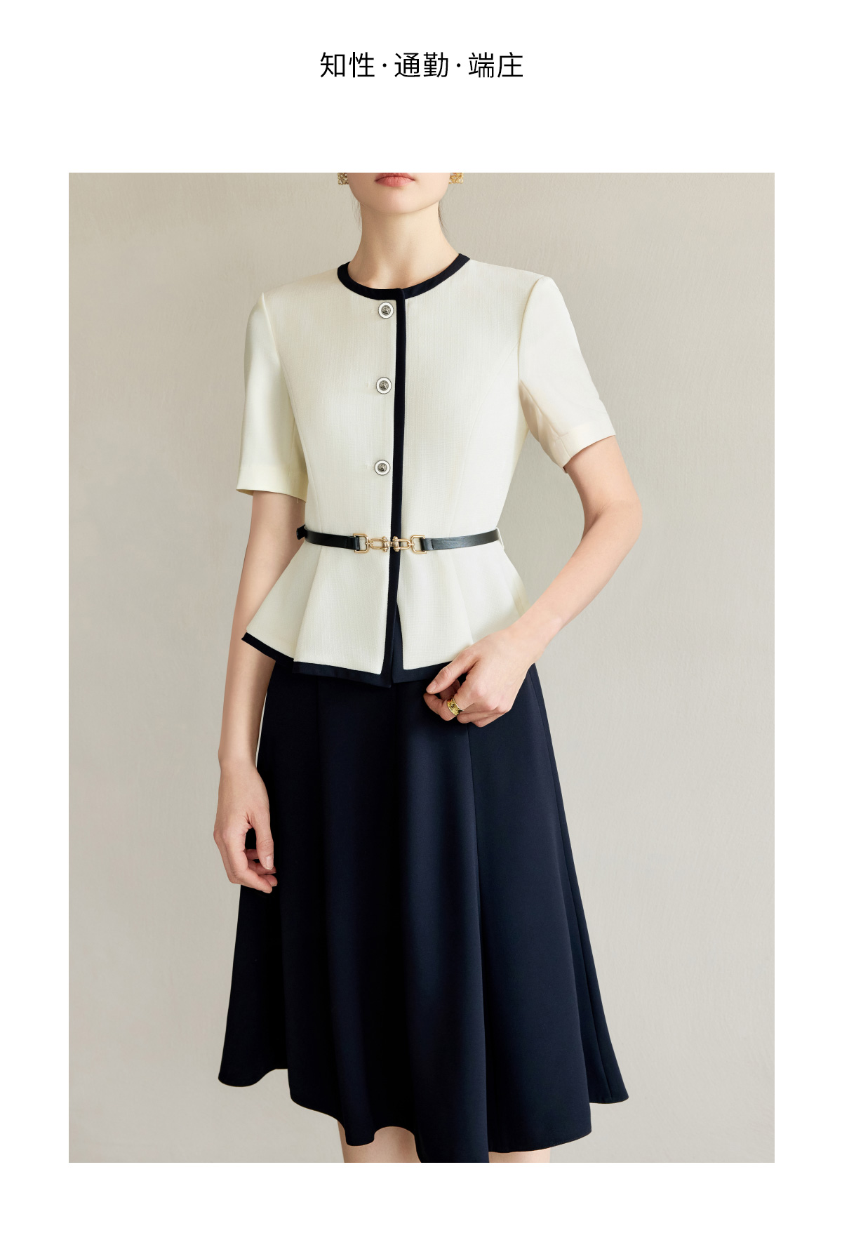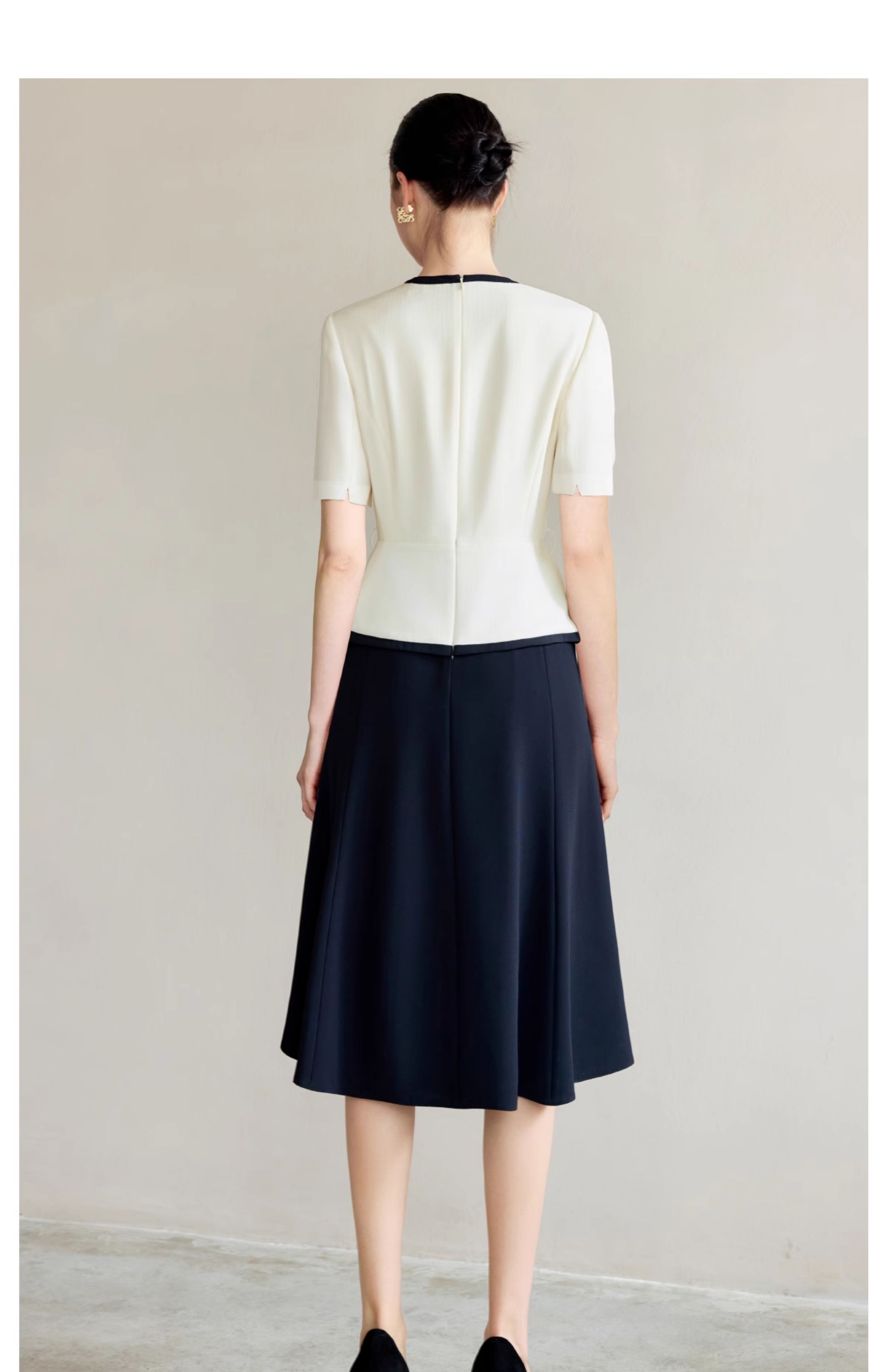IWY/黑白拼接夏季短袖西装连衣裙女高端设计感拼接假两件职业套裙Q1368