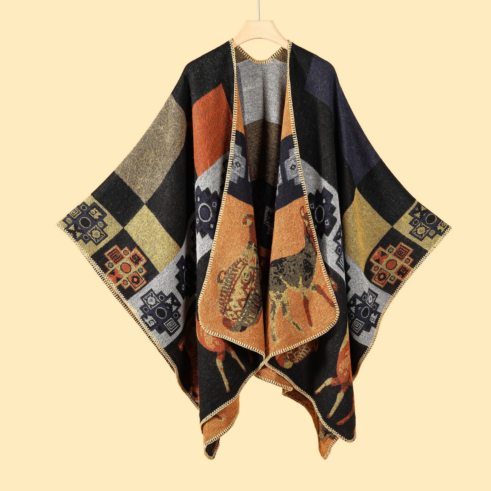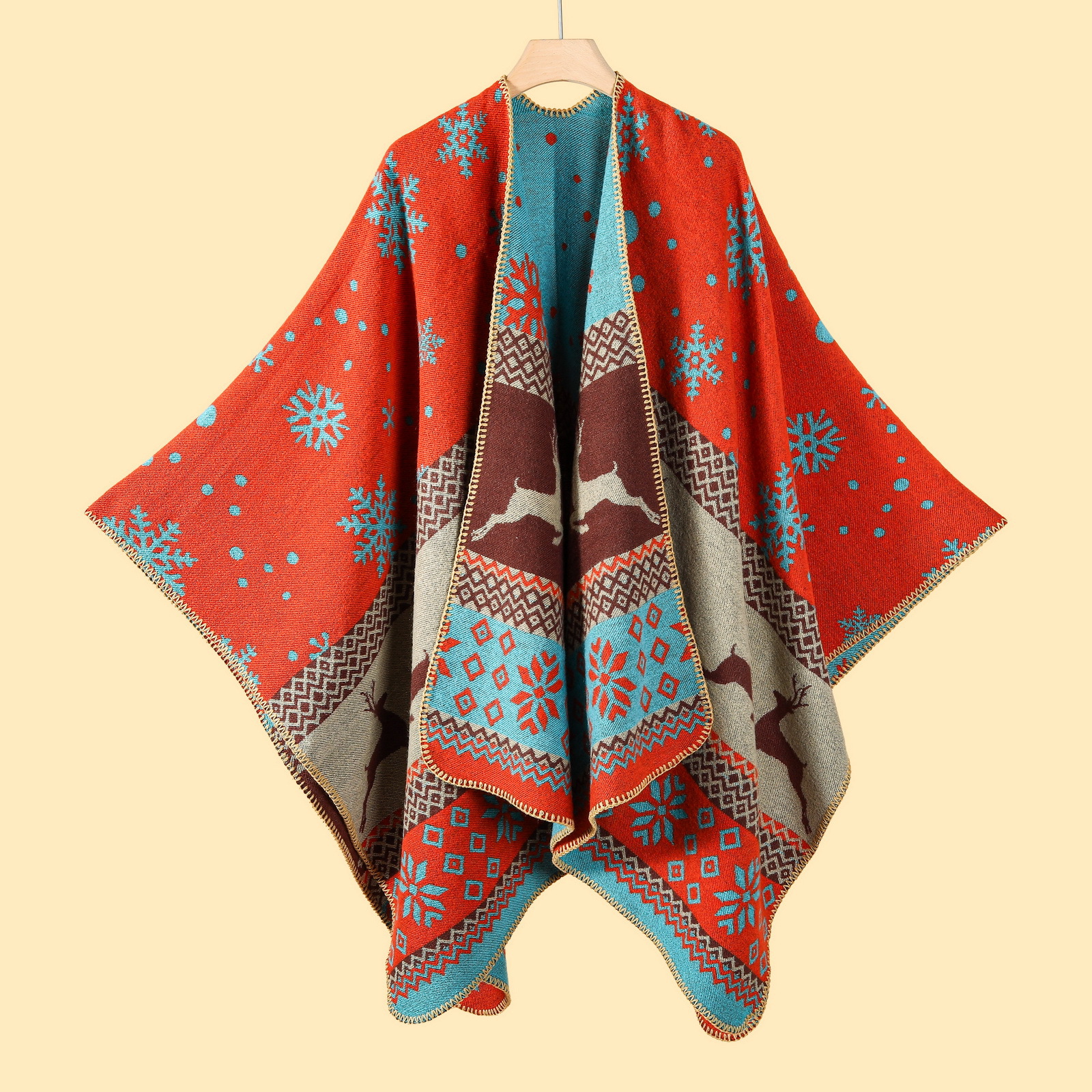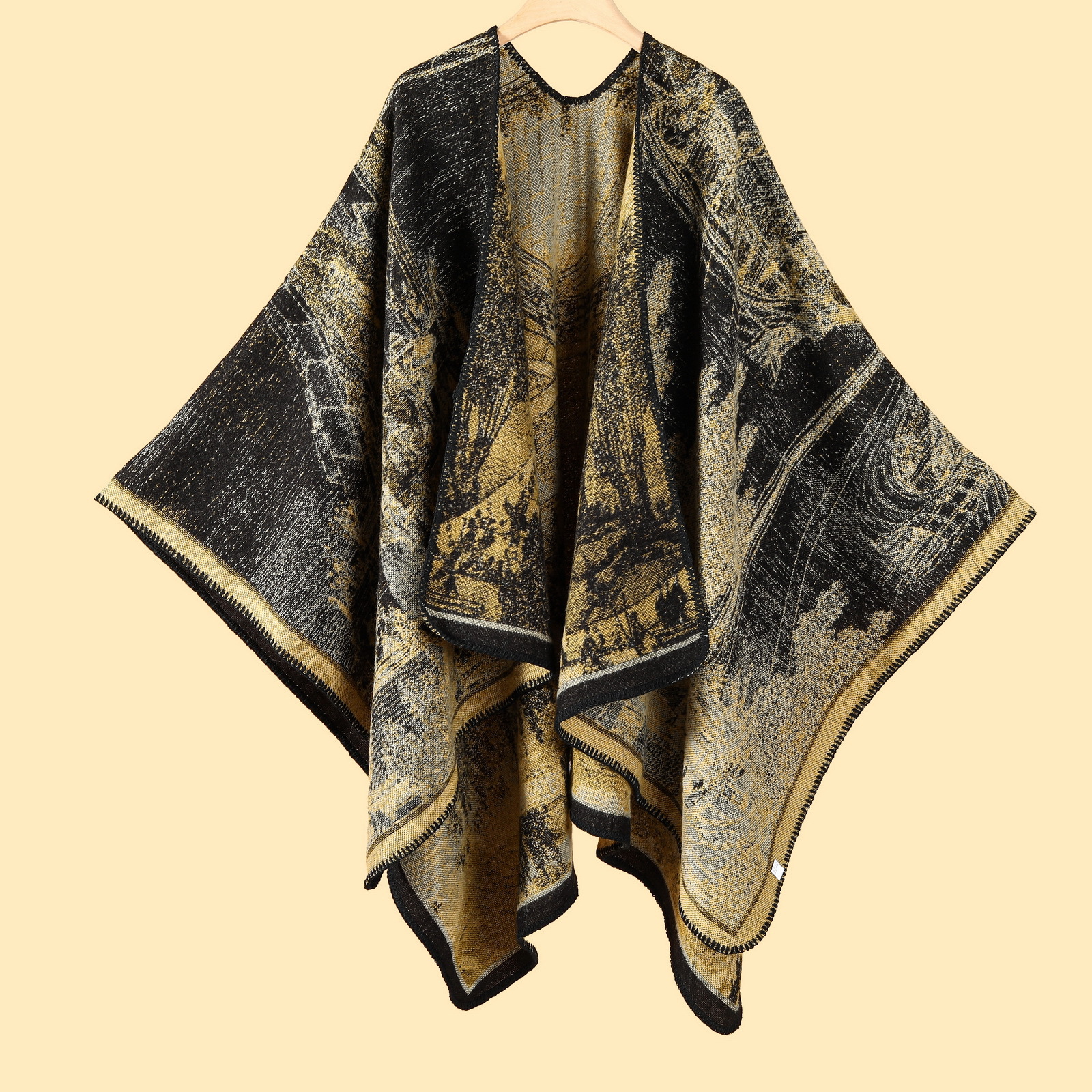 【江南水乡文艺旅游披肩】秋冬季 仿羊绒针织围巾 开叉油画披风斗篷外搭 送家人朋友