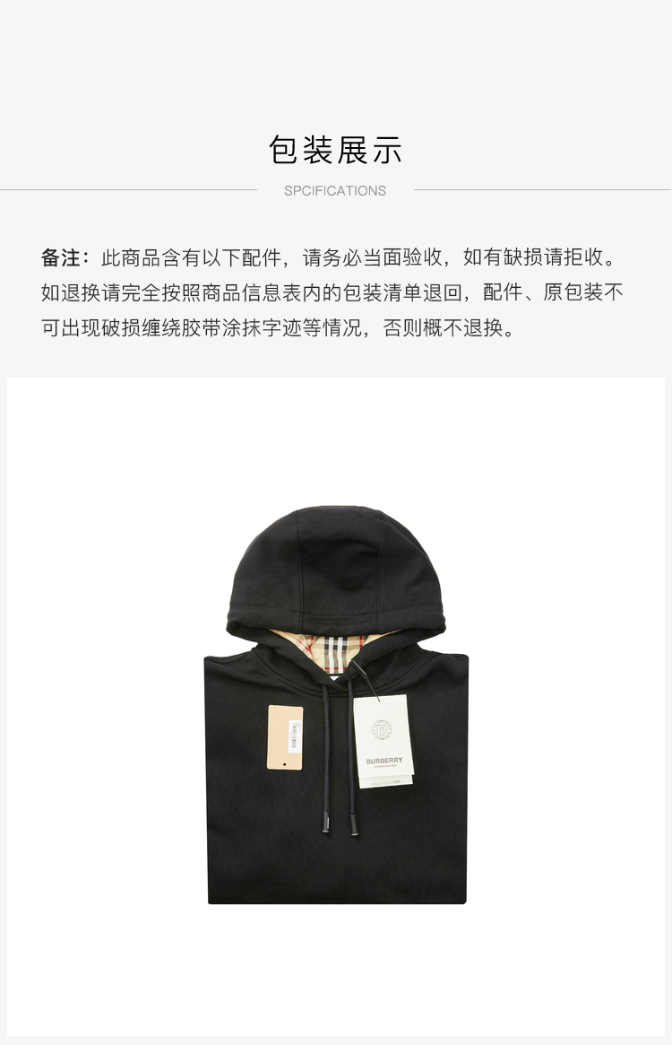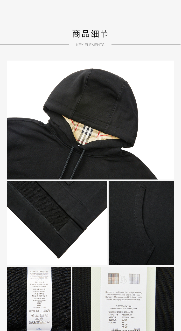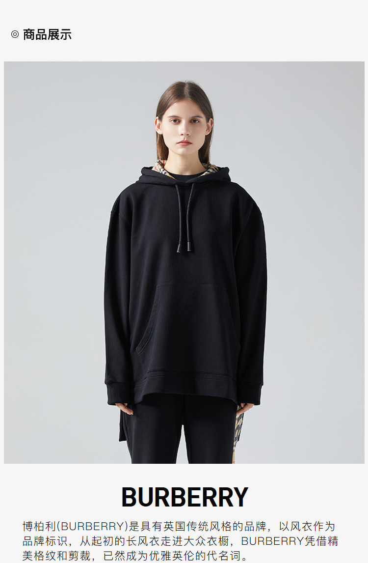 BURBERRY 巴宝莉 女士棉质加长衣摆宽松连帽套头卫衣 8035859