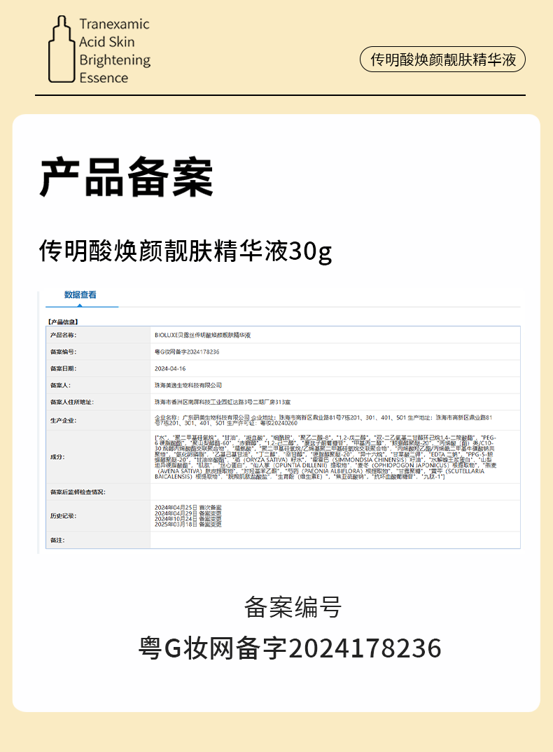 贝露丝全新升级5%浓度传明酸焕颜靓肤精华液氨甲环酸