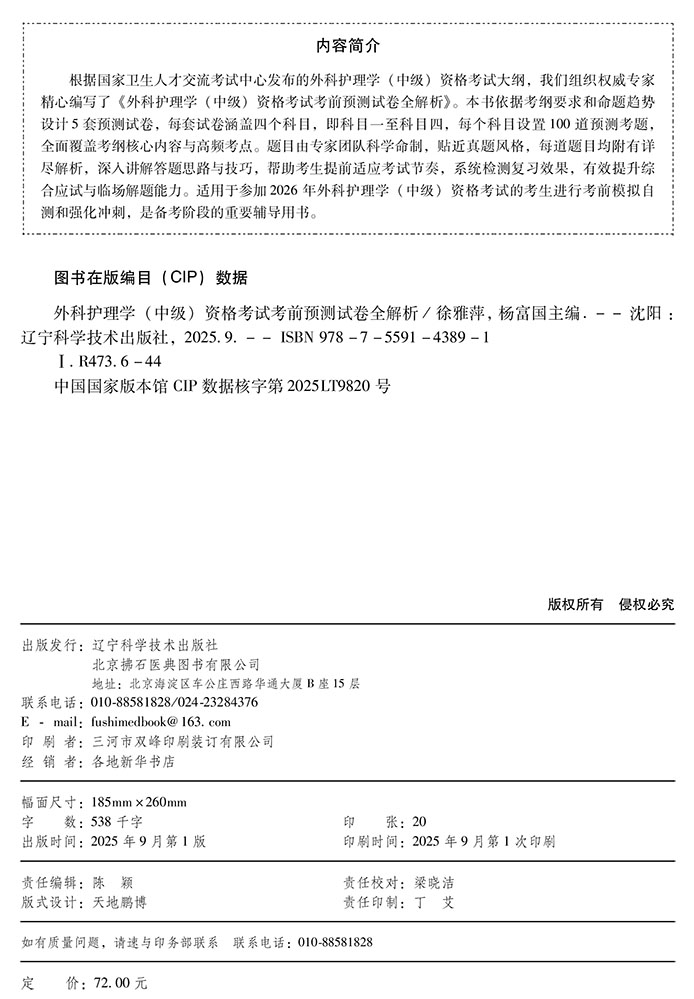 2026外科护理学(中级)资格考试考前预测试卷全解析 全国初中级卫生专业技术资格考试辅导丛书 徐雅萍 杨富国 辽宁科学技术出版社