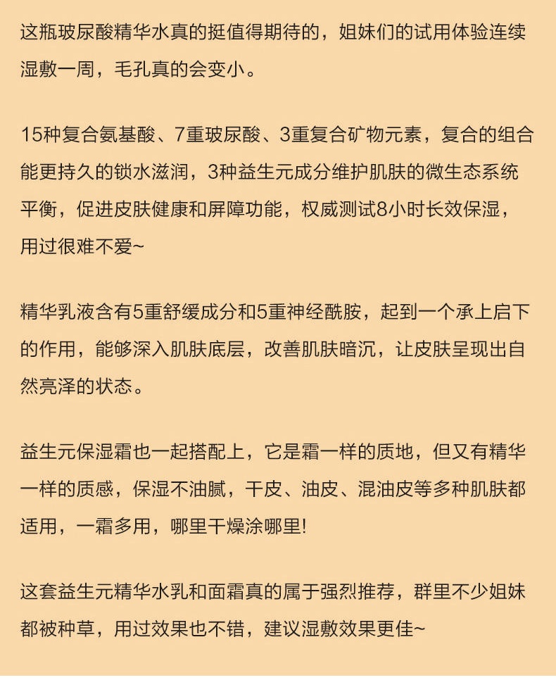 【玻尿酸精华水/乳、洋甘菊保湿面霜】水/乳拍2减10元,面霜拍3发4,持久锁水自然,修复皮肤屏障,敏感肌可用,干皮、油皮、混油皮都可用