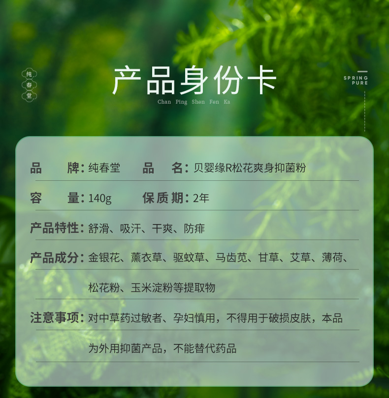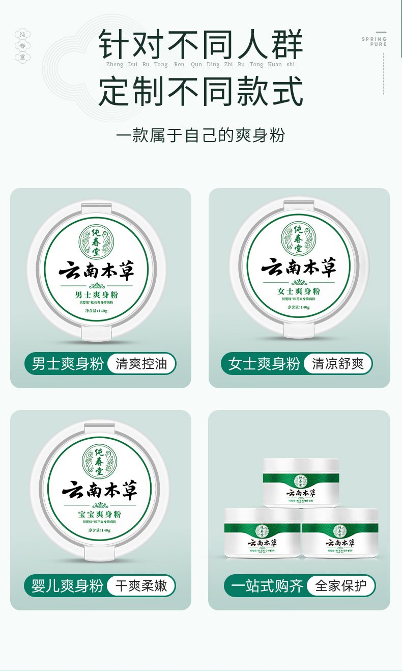 【男女婴儿爽身粉】纯春堂云南本草痱子粉爽肤非止汗止痒清爽不含滑石粉