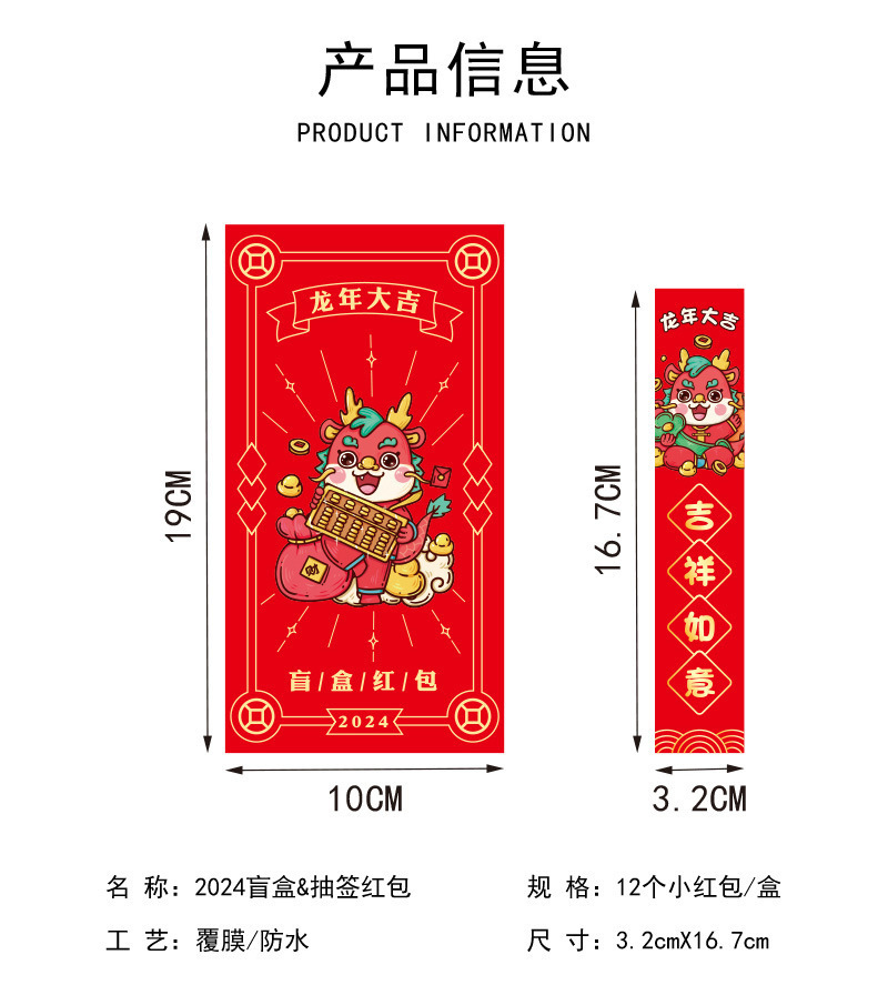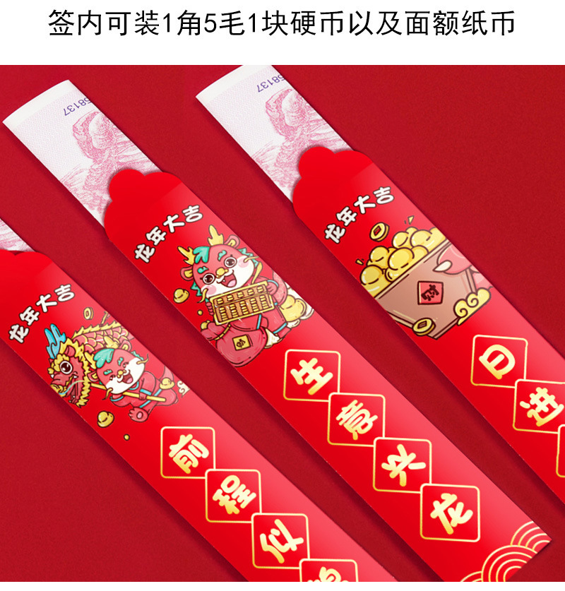 新年好物!买一送一【好玩又有趣!一见倾心】2024龙年抽签红包,新年12支盒装创意幸运签抽签盲盒压岁钱利是封,玩转各大场景