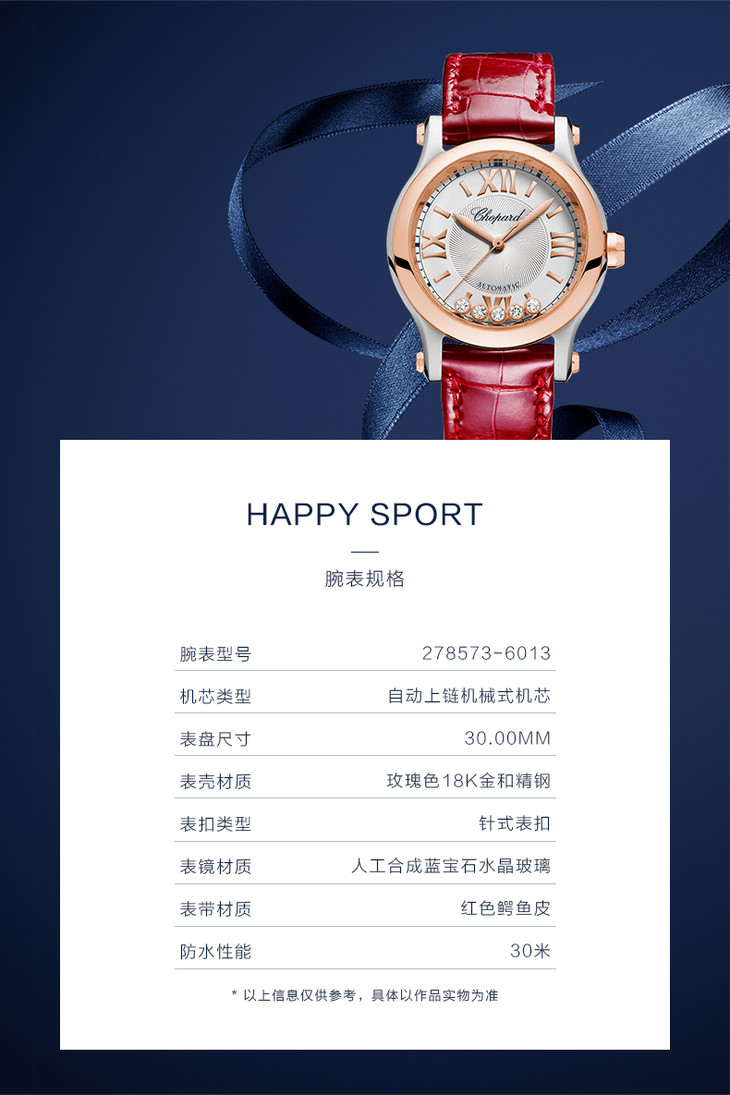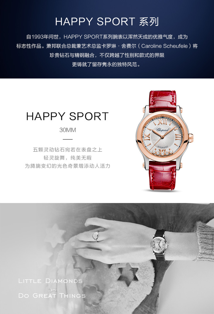萧邦 Chopard HAPPY SPORT系列女表 自动上链机械女表 红色表带 278573-6013