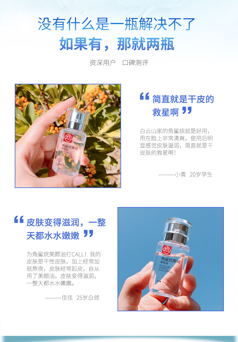 【恢复肌肤弹性!淡化细纹】白云山角鲨烷美颜油抗皱护肤油精华油液,养肤油美容油修护淡纹紧致,柔滑光润,娇颜无瑕。细腻呵护,赋予肌肤迷人魅力