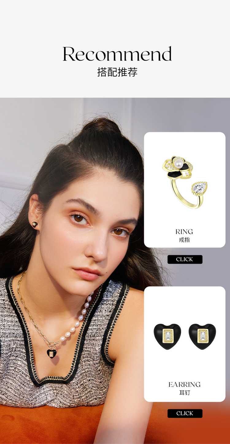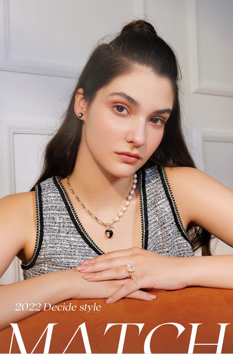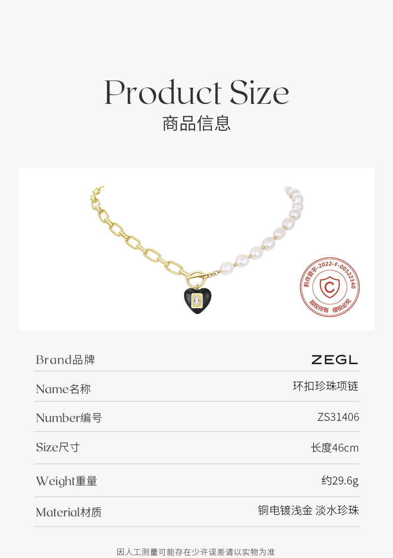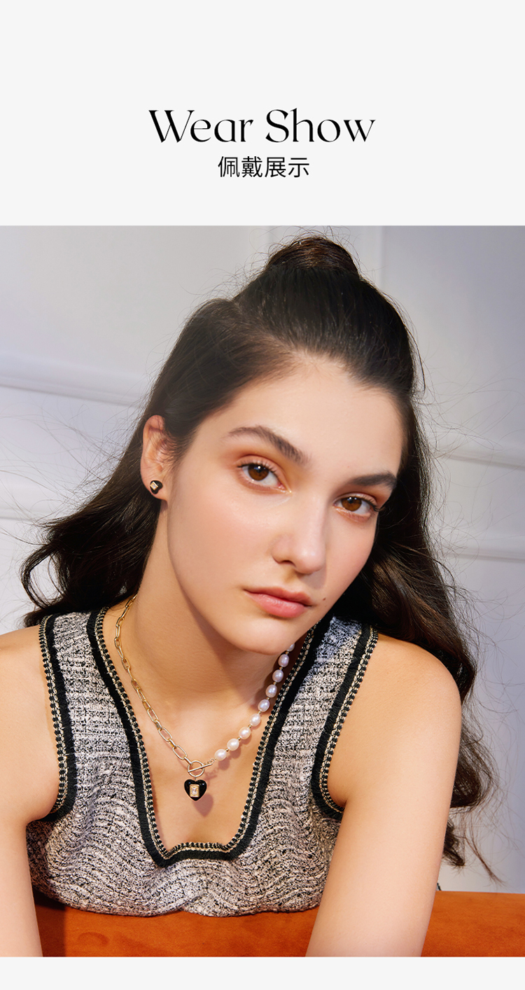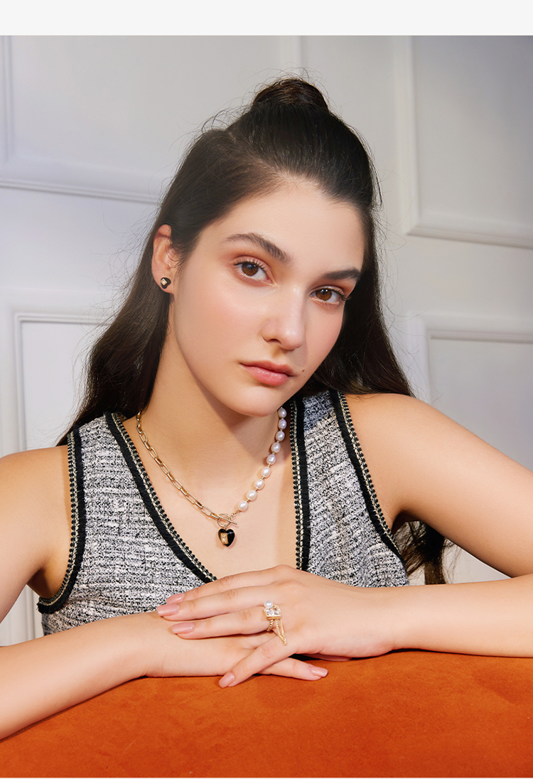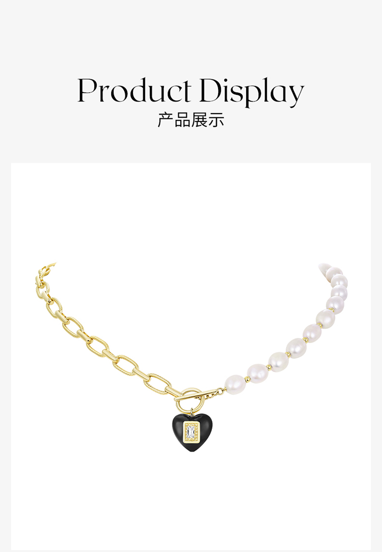 ZEGL设计师山茶花系列淡水珍珠项链女轻奢小众OT扣黑色爱心锁骨链