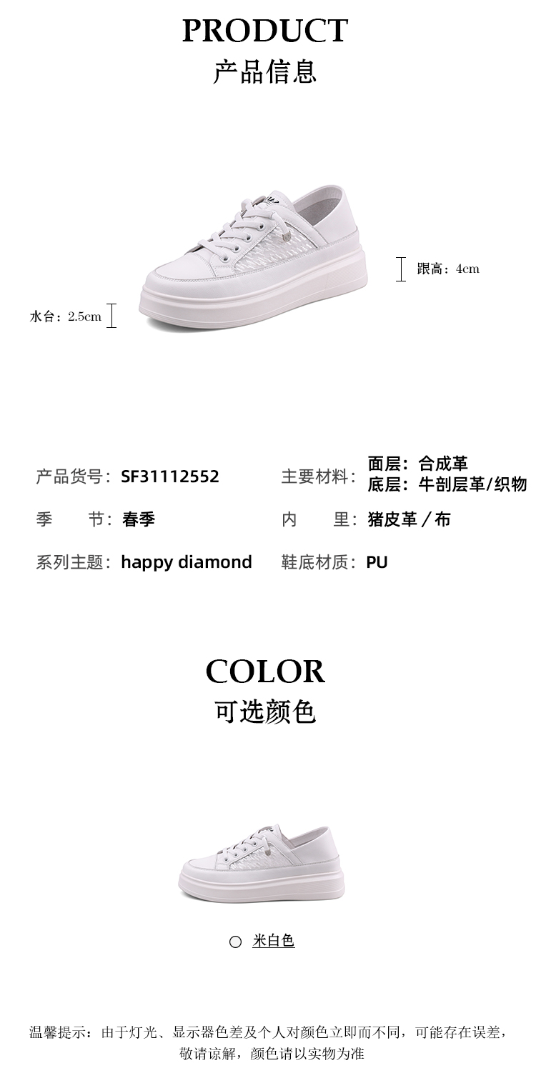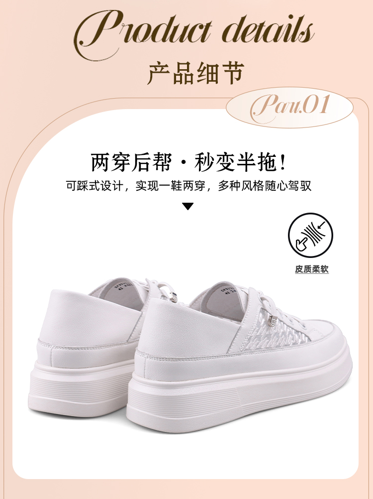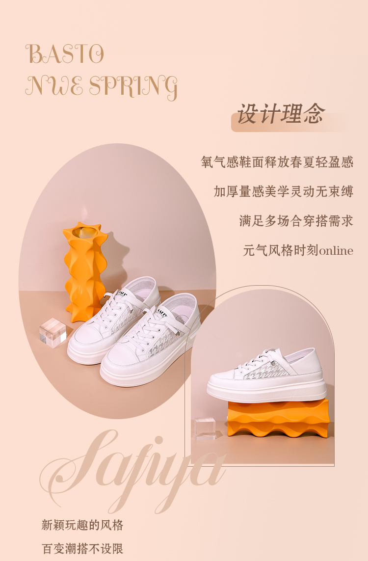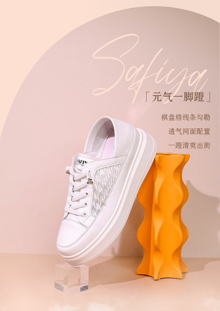 Safiya/索菲娅 2023新品春夏两穿网面透气薄款厚底松糕板鞋 SF31112552