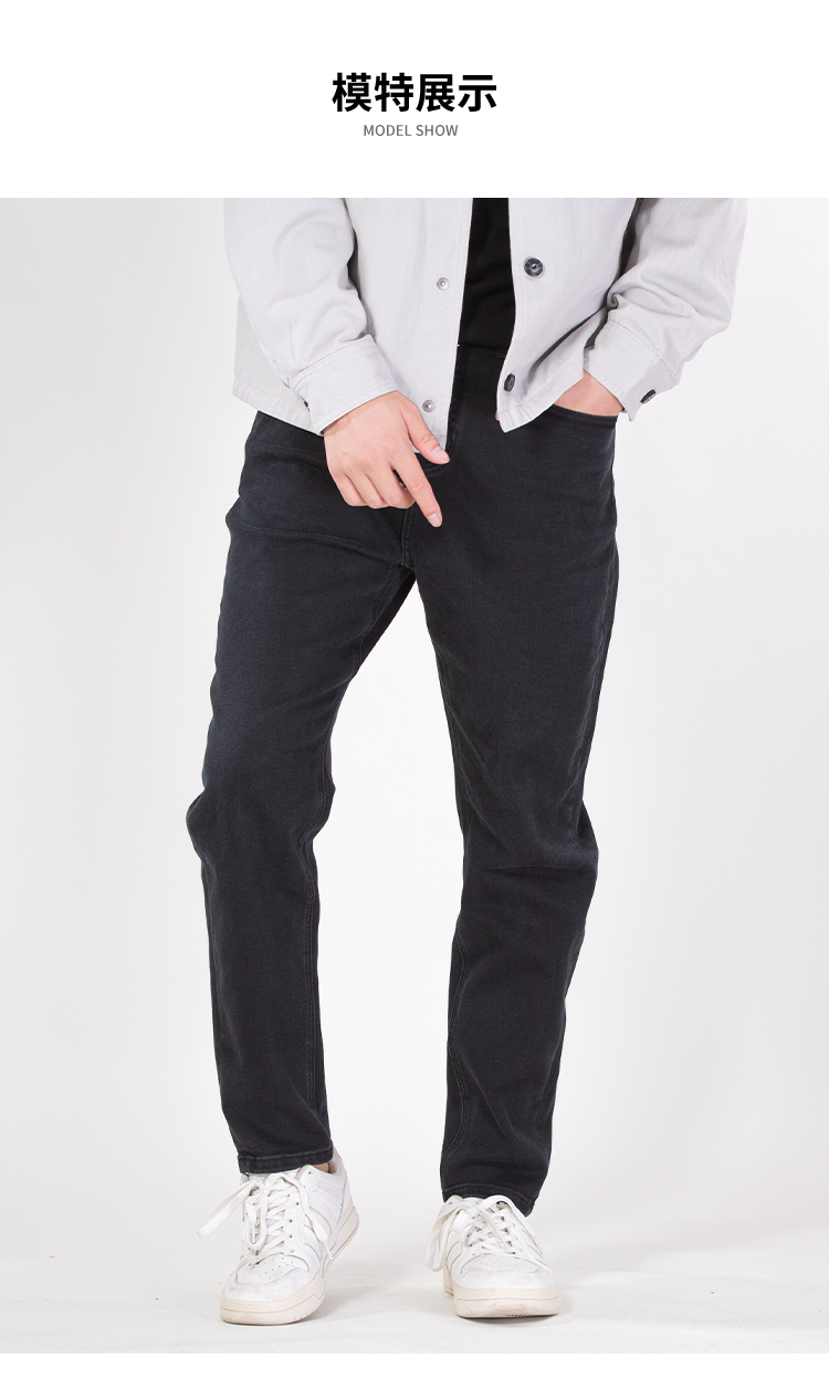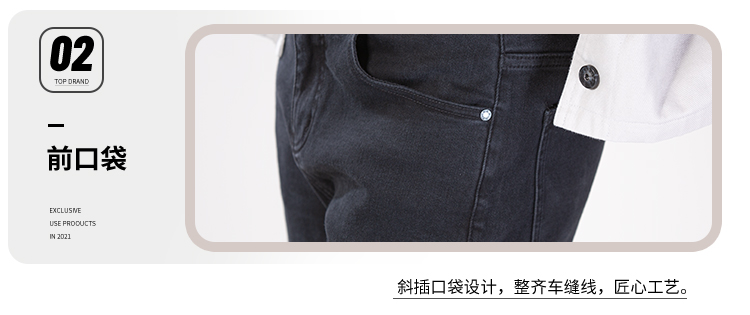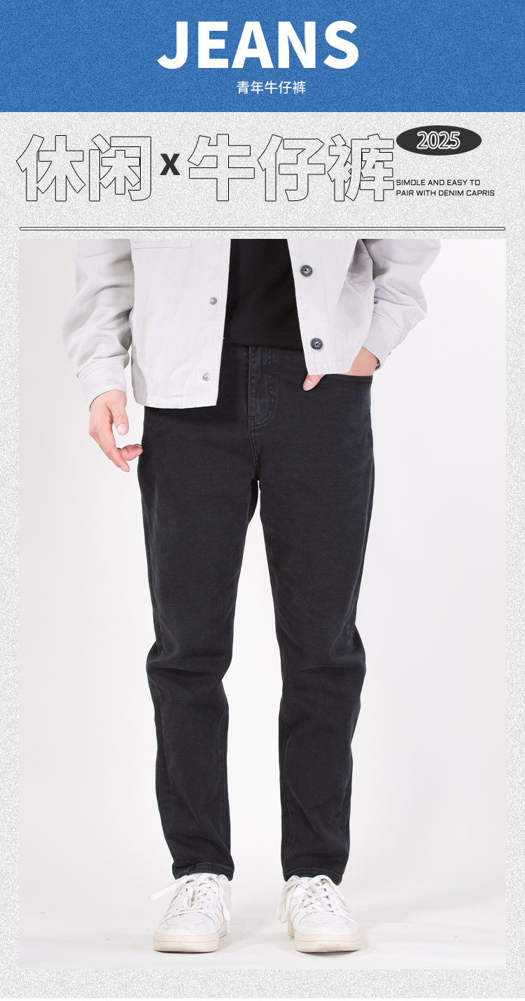 DRONKOO 2025 正常腰表袋侧唛后右袋刺绣线高弹中厚牛仔长裤