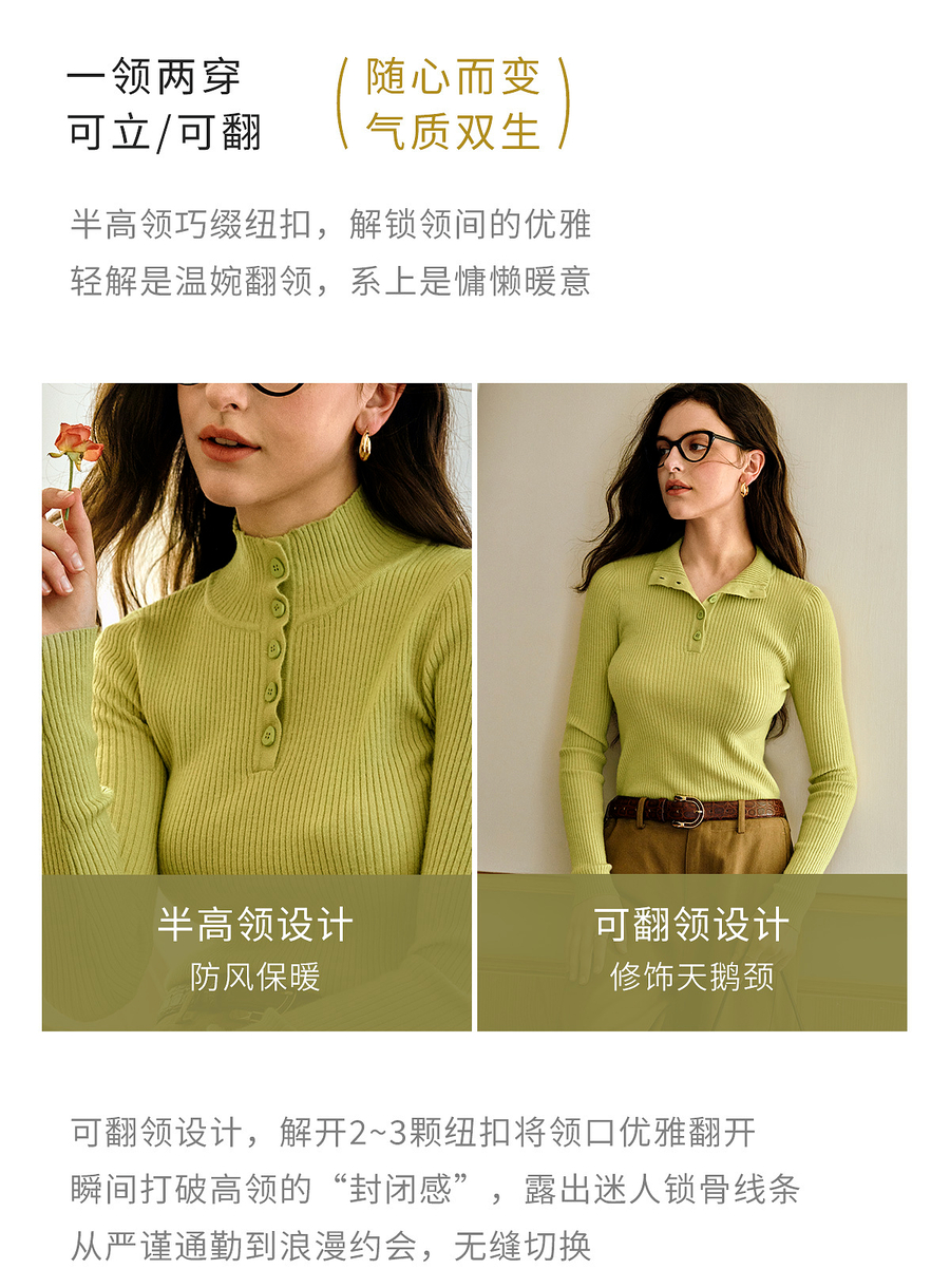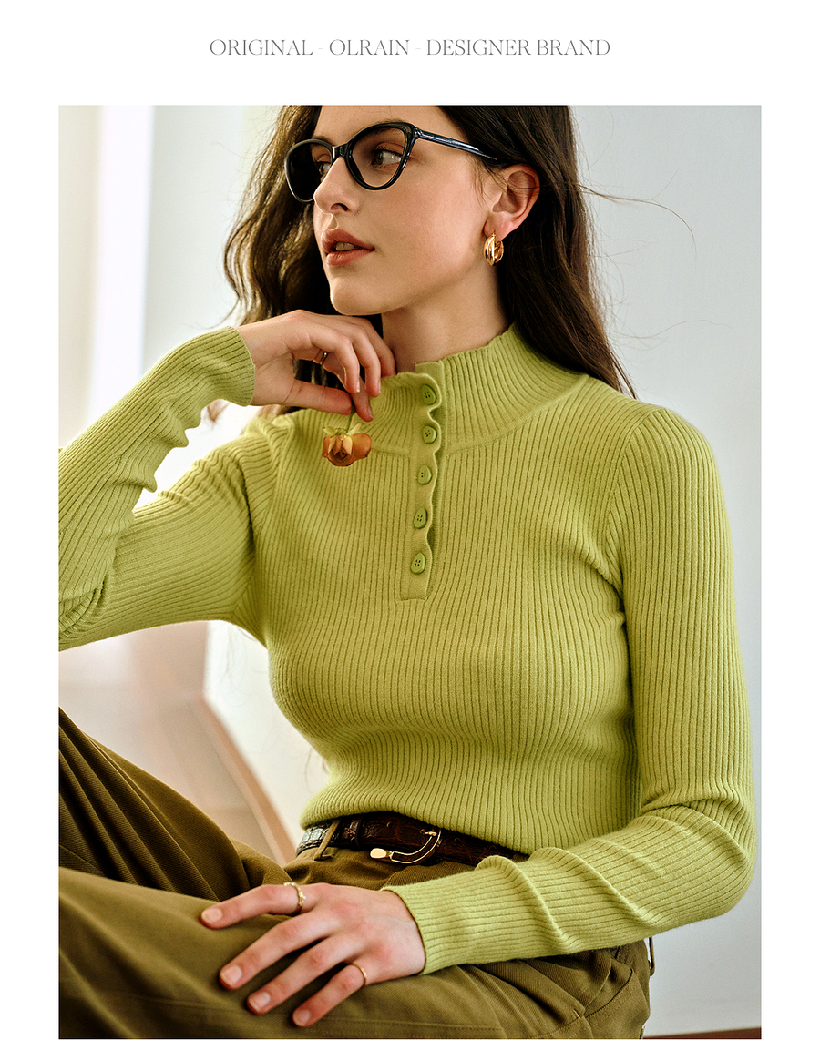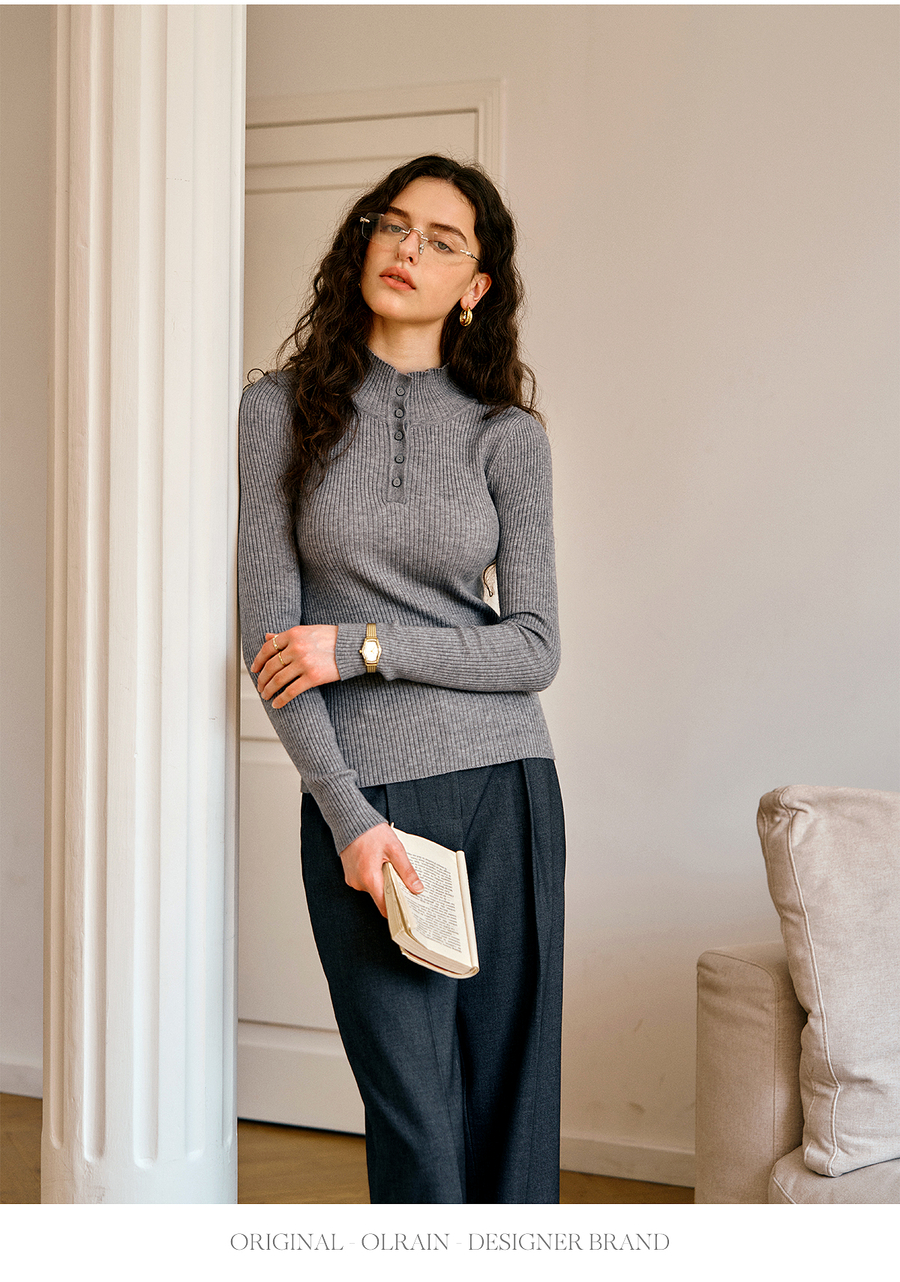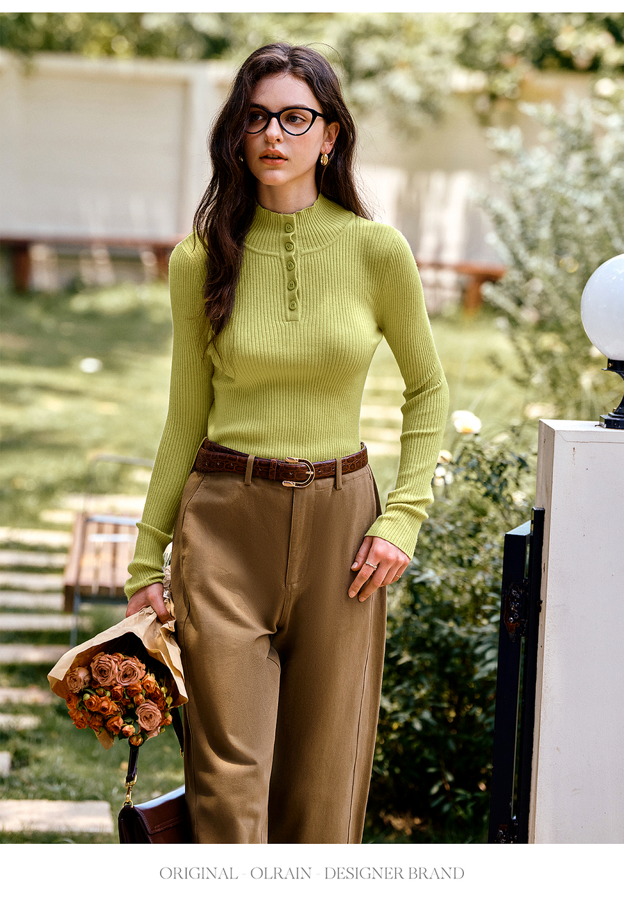 OLrain欧芮儿简约半高领针织衫女秋季2025新款内搭打底衫羊毛上衣