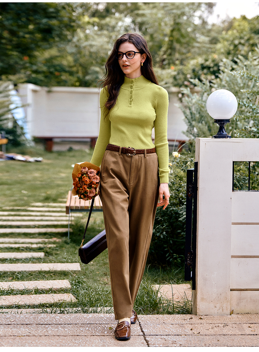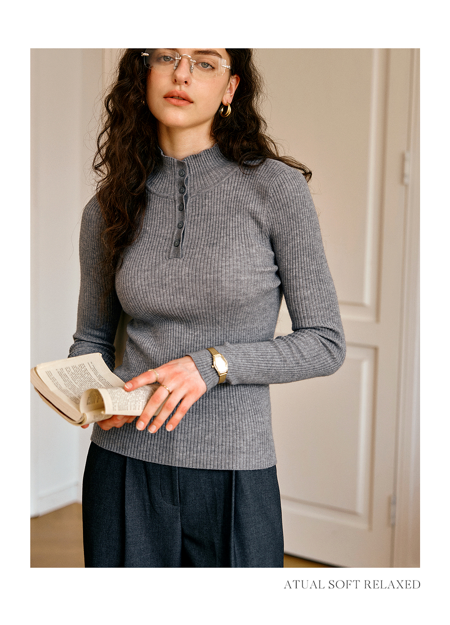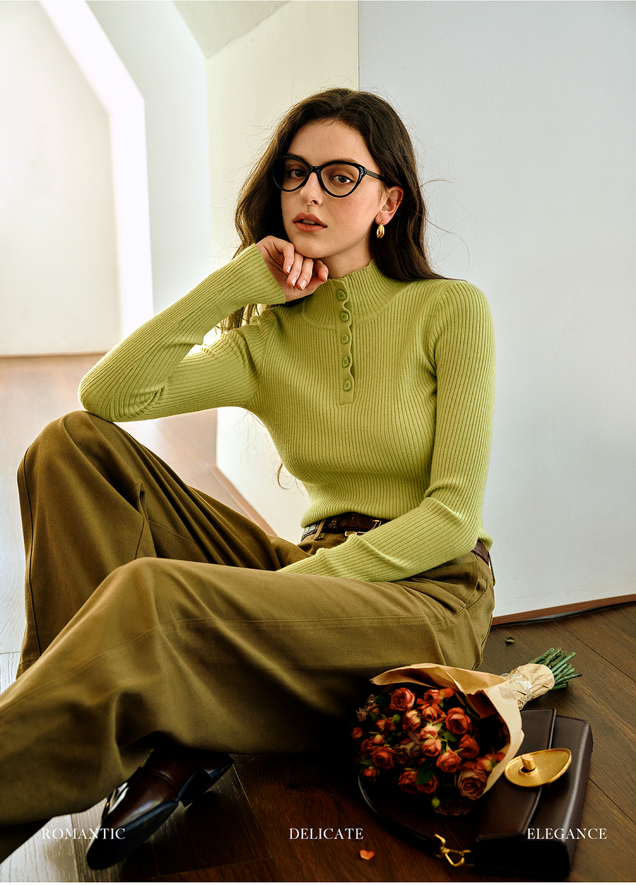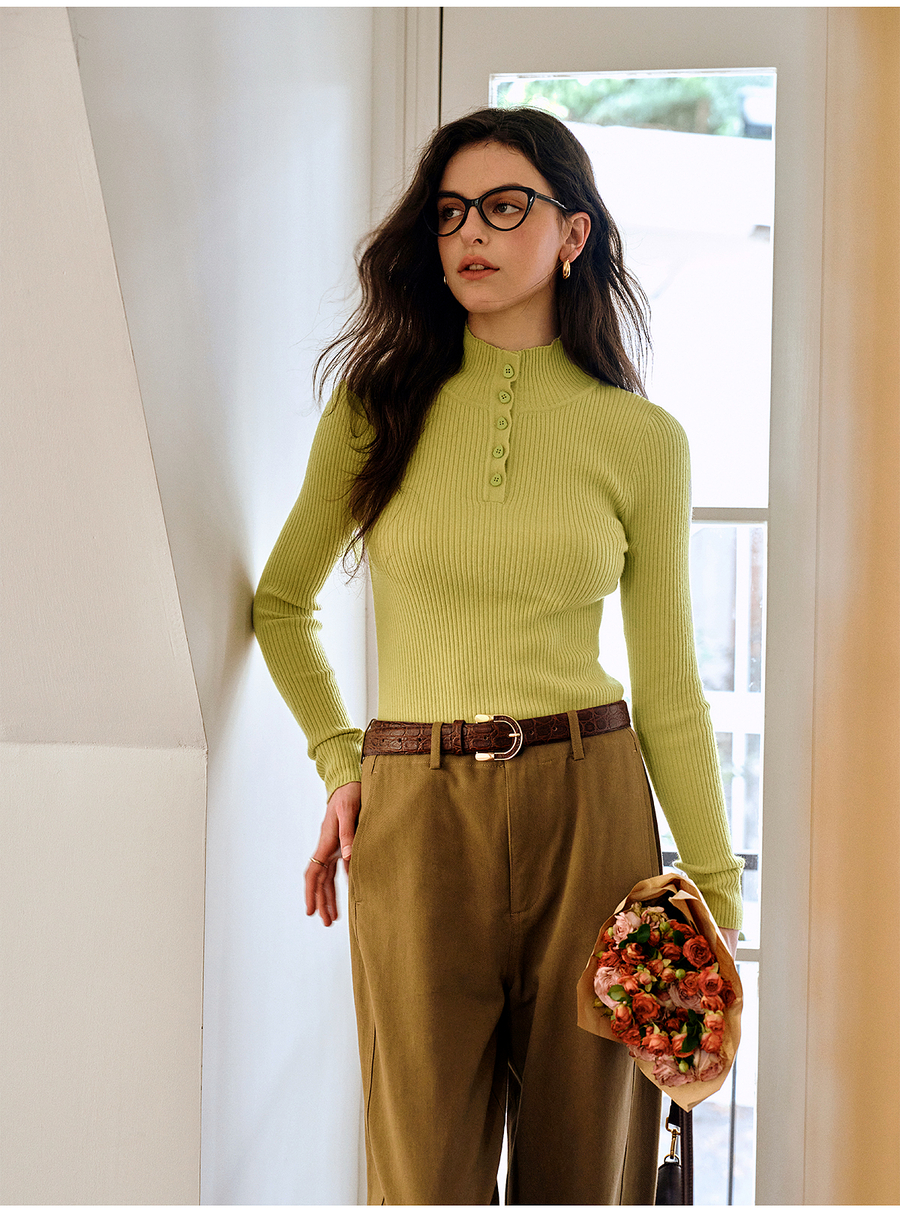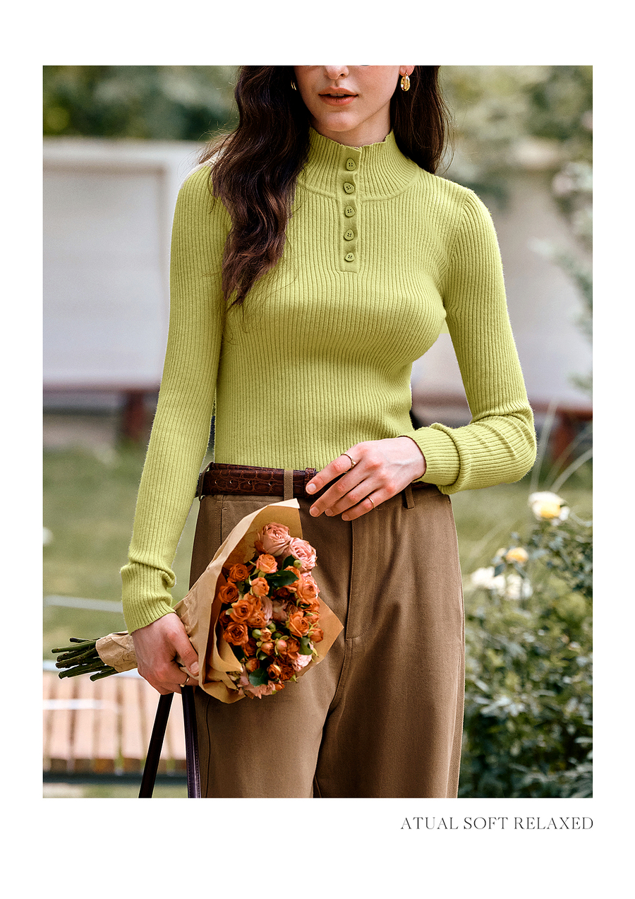 OLrain欧芮儿简约半高领针织衫女秋季2025新款内搭打底衫羊毛上衣