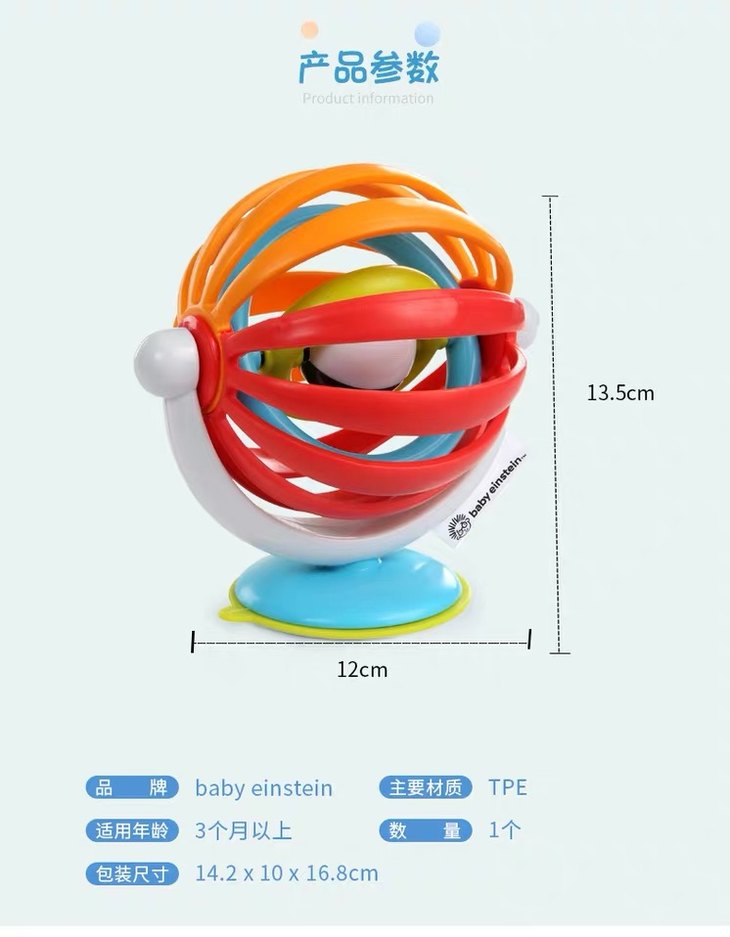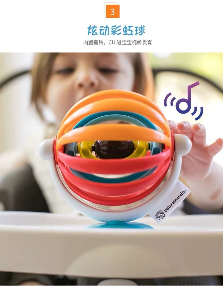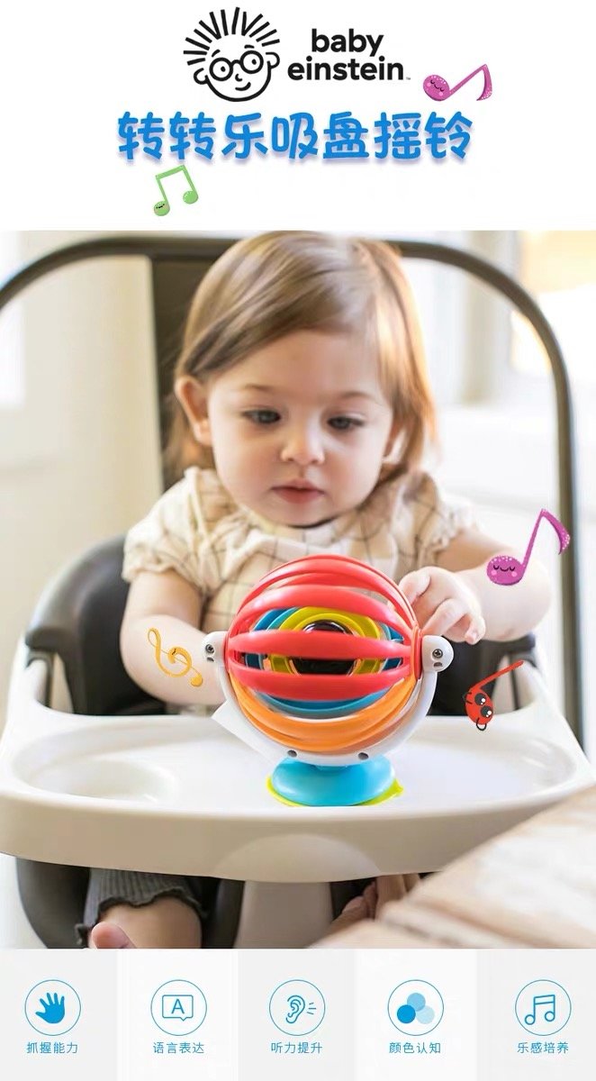 美国Baby Einstein吸盘摇铃婴儿抓握玩具儿童音乐摇铃感官训练