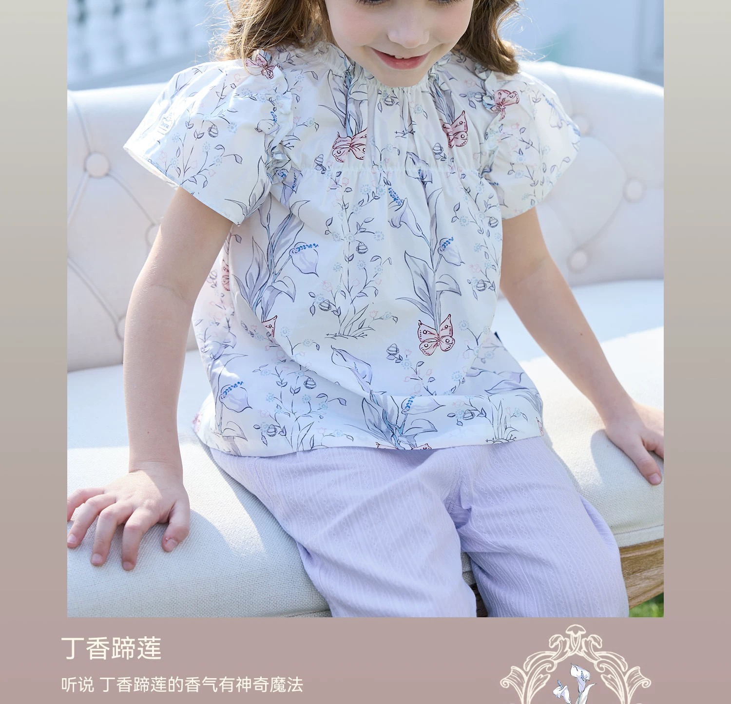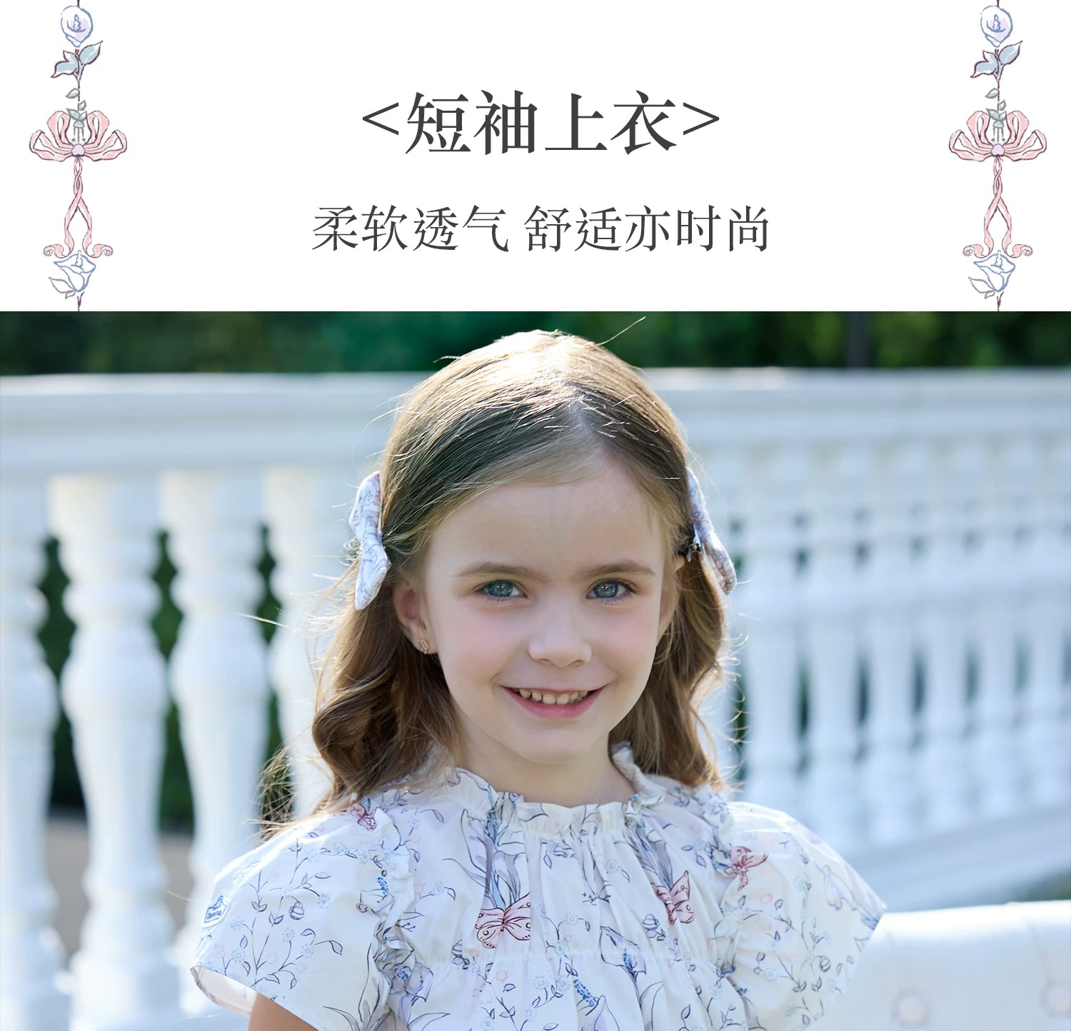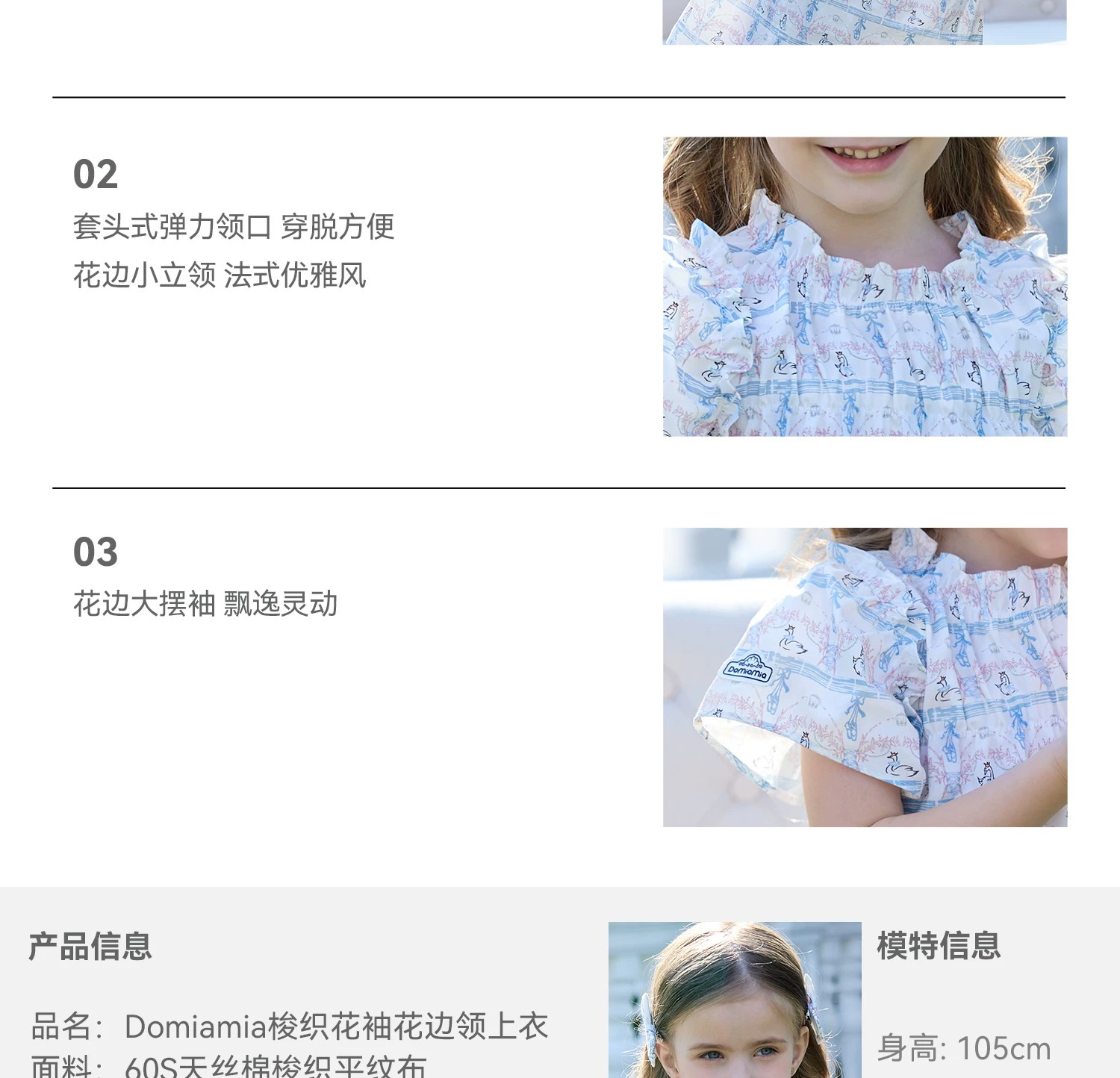 Domiamia 女宝宝梭织花袖花边领上衣短袖 夏装外出短T 薄款透气百搭