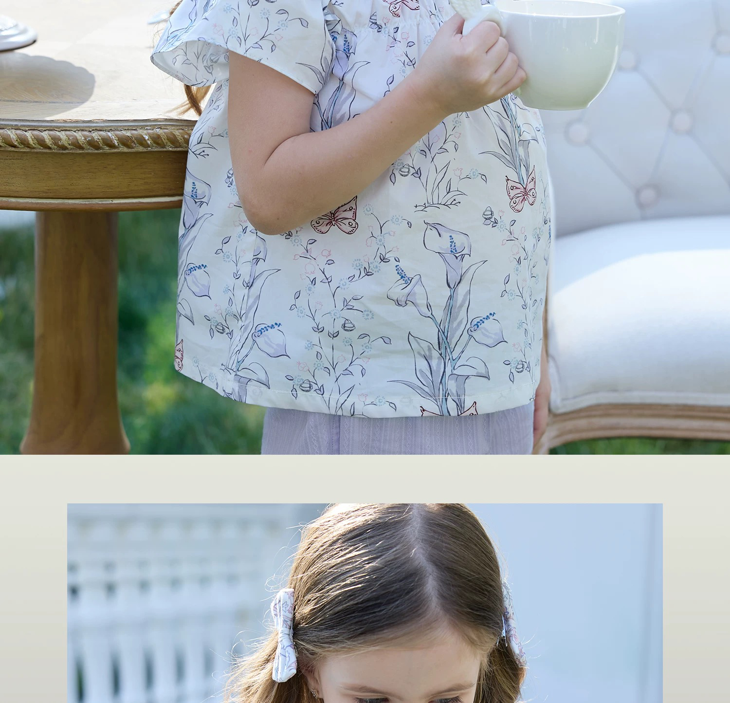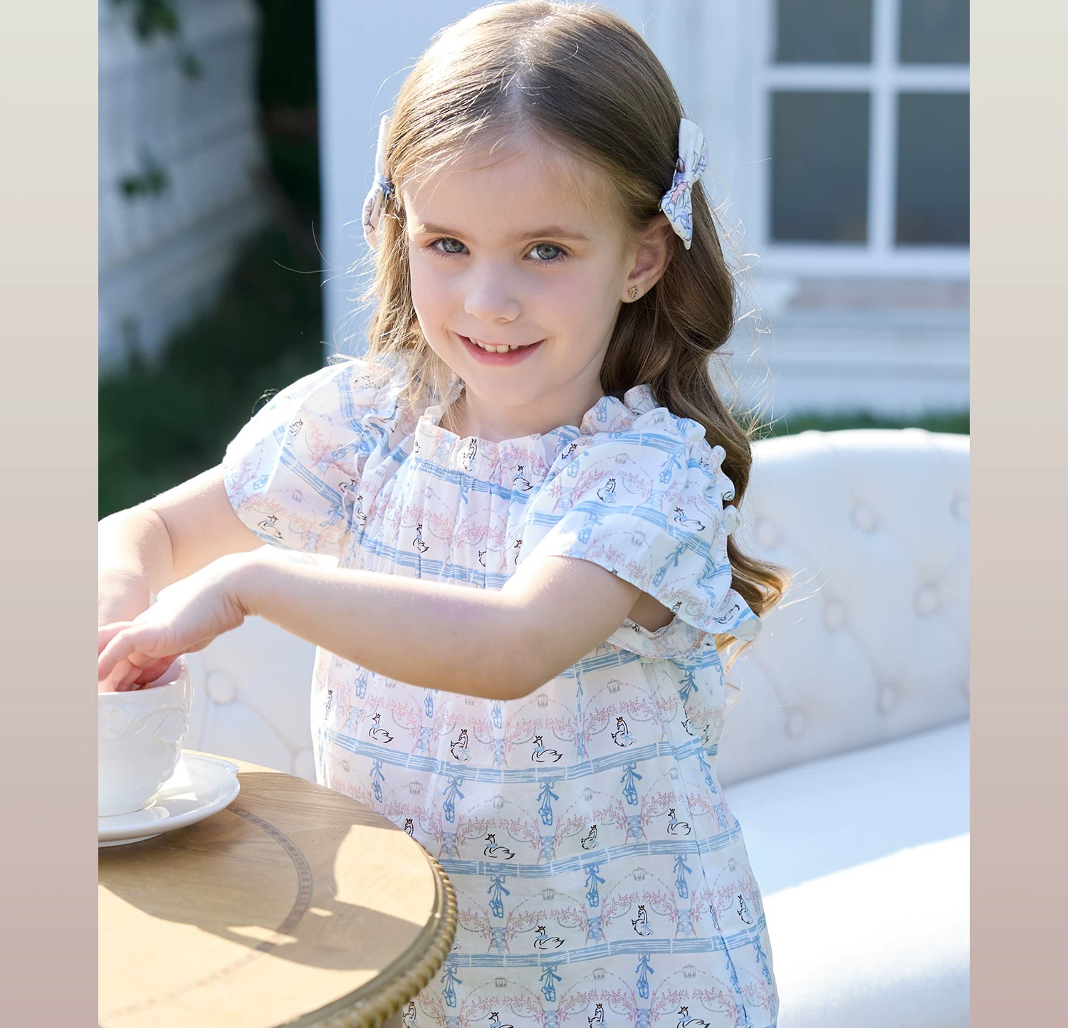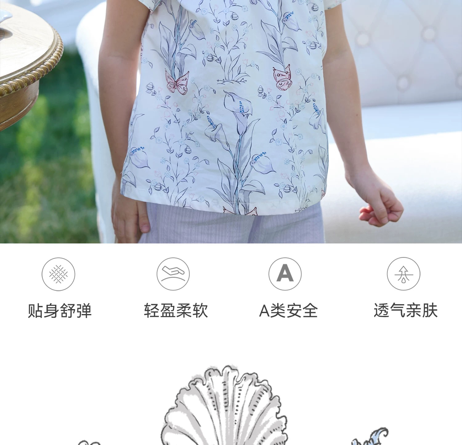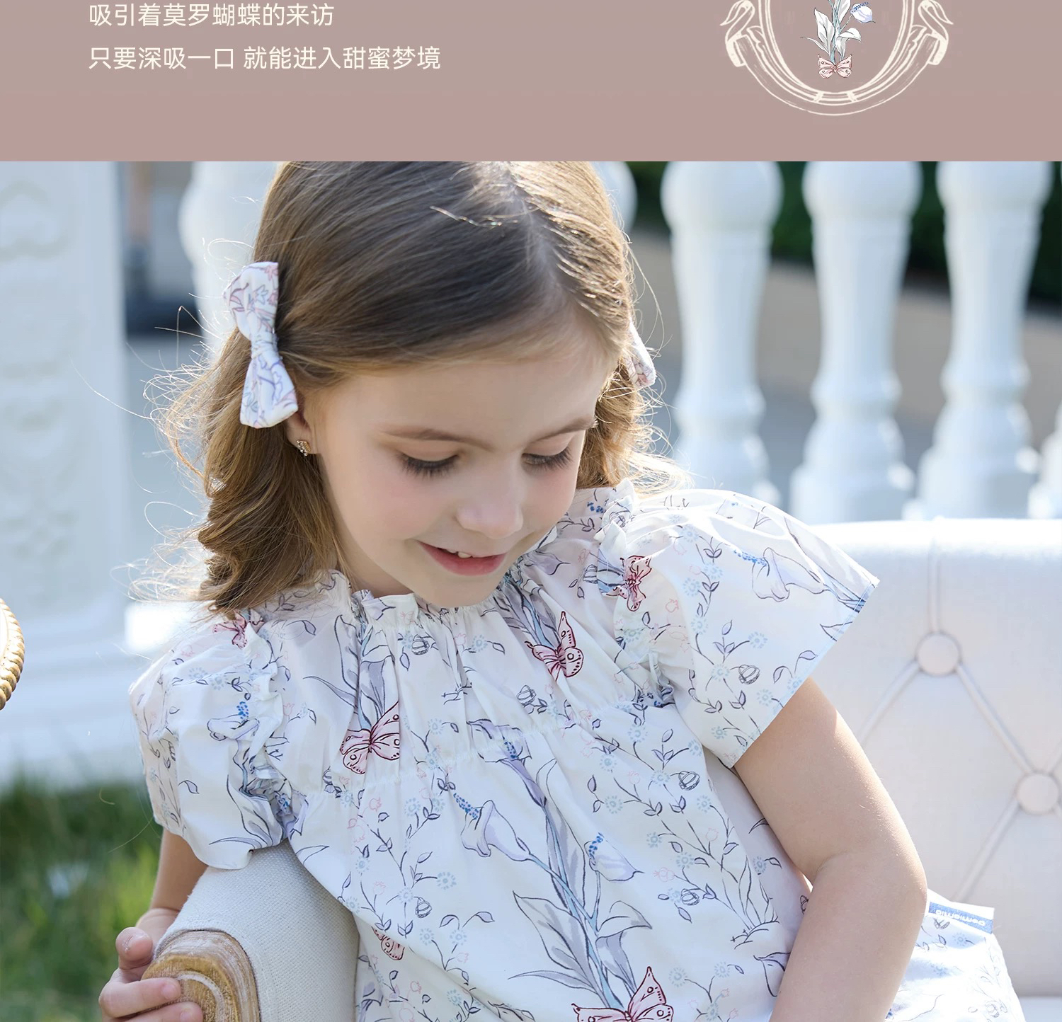 Domiamia 女宝宝梭织花袖花边领上衣短袖 夏装外出短T 薄款透气百搭