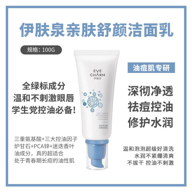 原价69元1支!伊肤泉清肤舒颜洁面乳100g 洗完不仅毛孔在大口呼吸 整个洗感挑不出毛病 完全不输那些贵价!! 关键是不会干巴紧绷! 整个皮肤状态水嫩嫩的~ 油痘肌 / 敏感党闭眼入!
