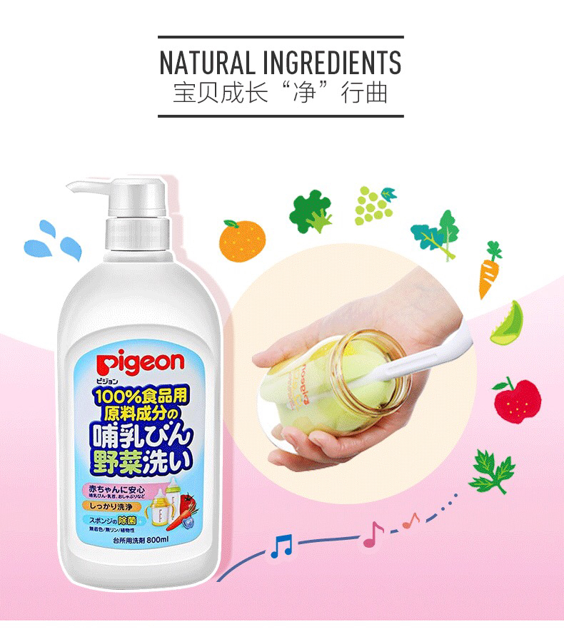 Pigeon贝亲婴儿奶嘴奶瓶清洗剂-果蔬杀菌清洗液 800ml-金卡会员6折