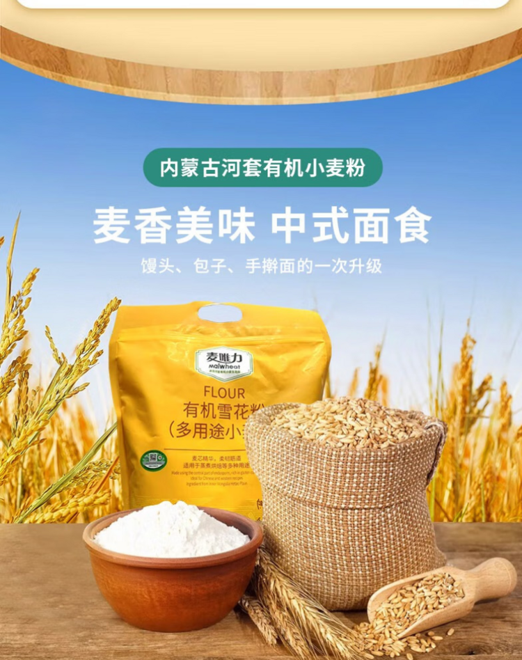 麦唯力 河套特产高筋有机雪花粉2kg*2