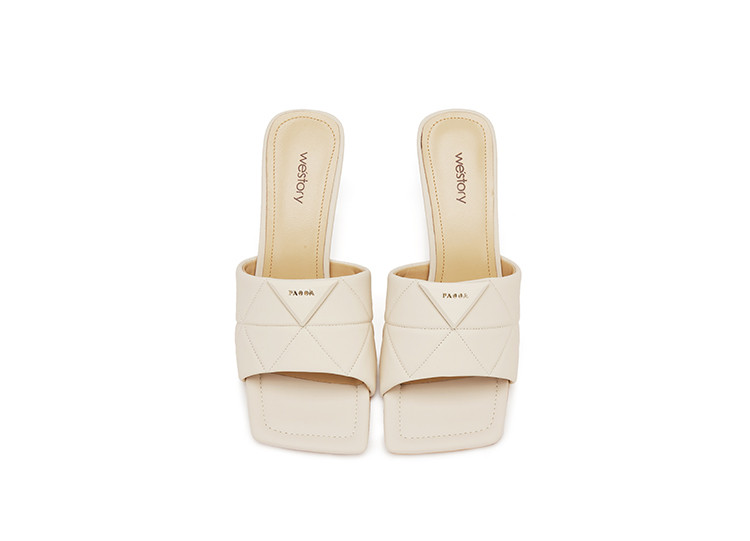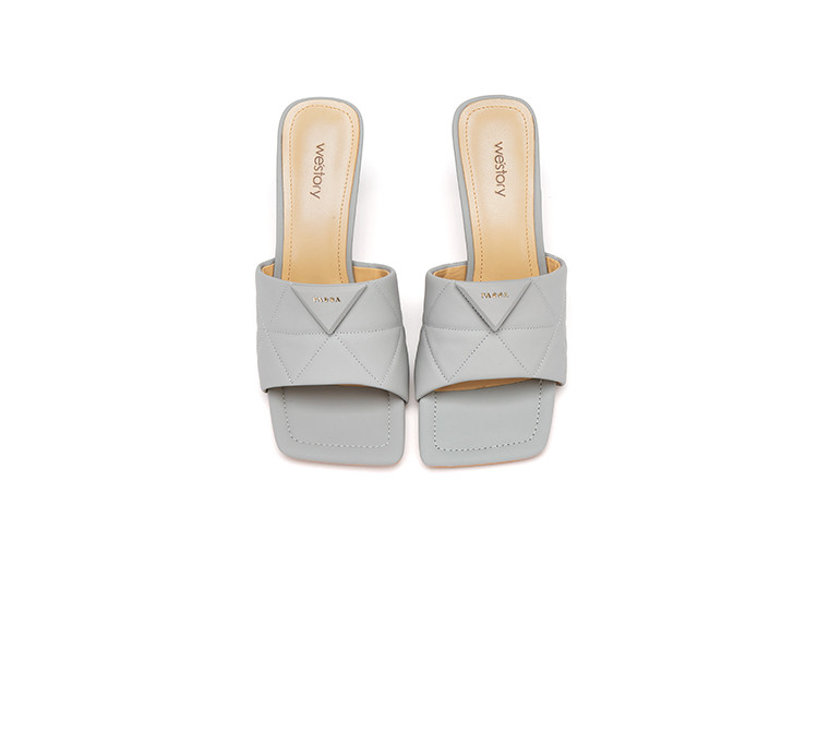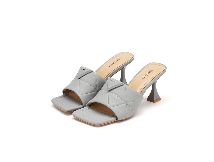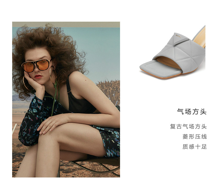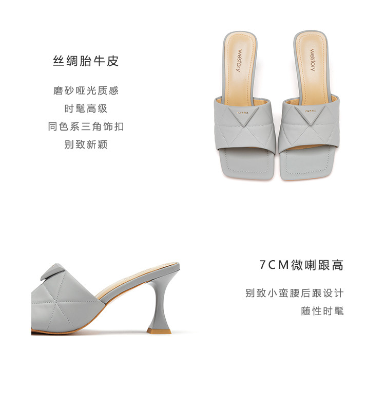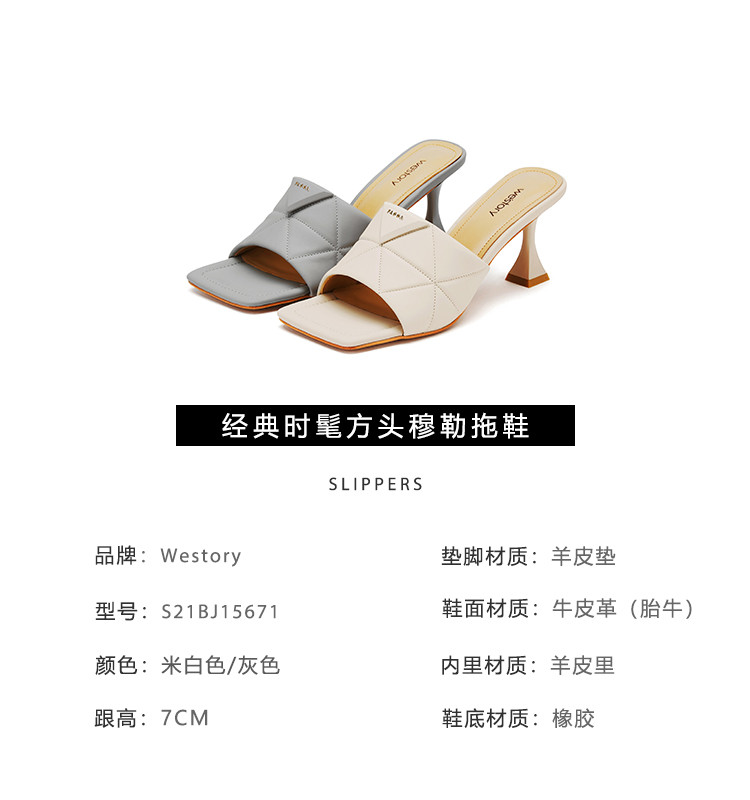 【2021夏季上新】时尚方头菱格纹酒杯跟可外穿穆勒拖鞋凉鞋女夏S21BJ15671