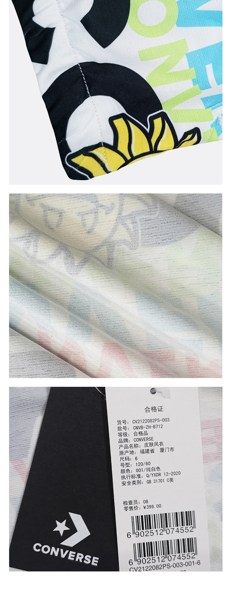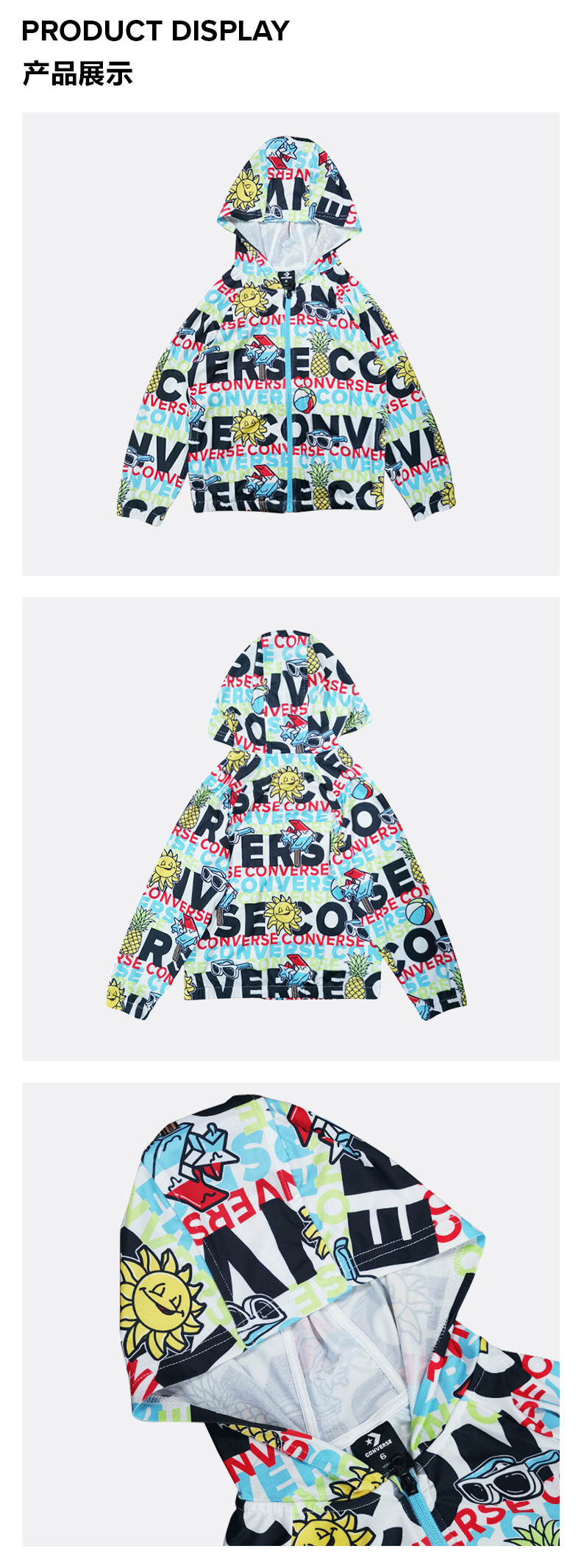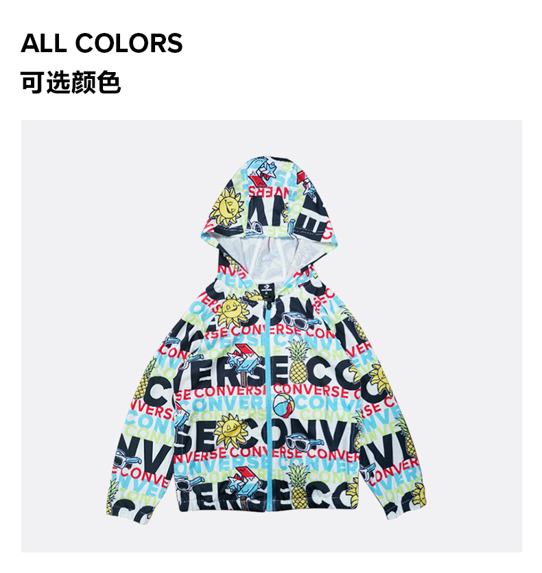 Converse匡威童装夏男女儿童拉链连帽开衫薄外套防晒衣CVGS/PS