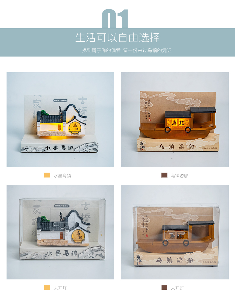 【乌镇官方】景区文化创意冰箱贴游船建筑立体可亮伴手礼冰箱贴