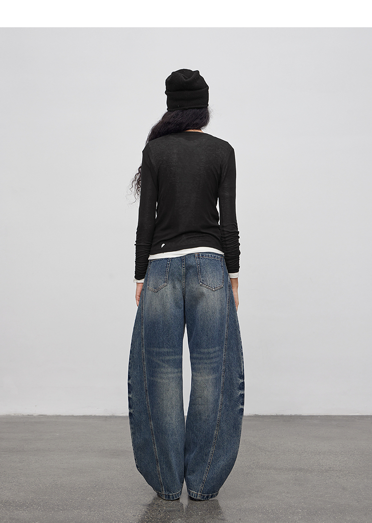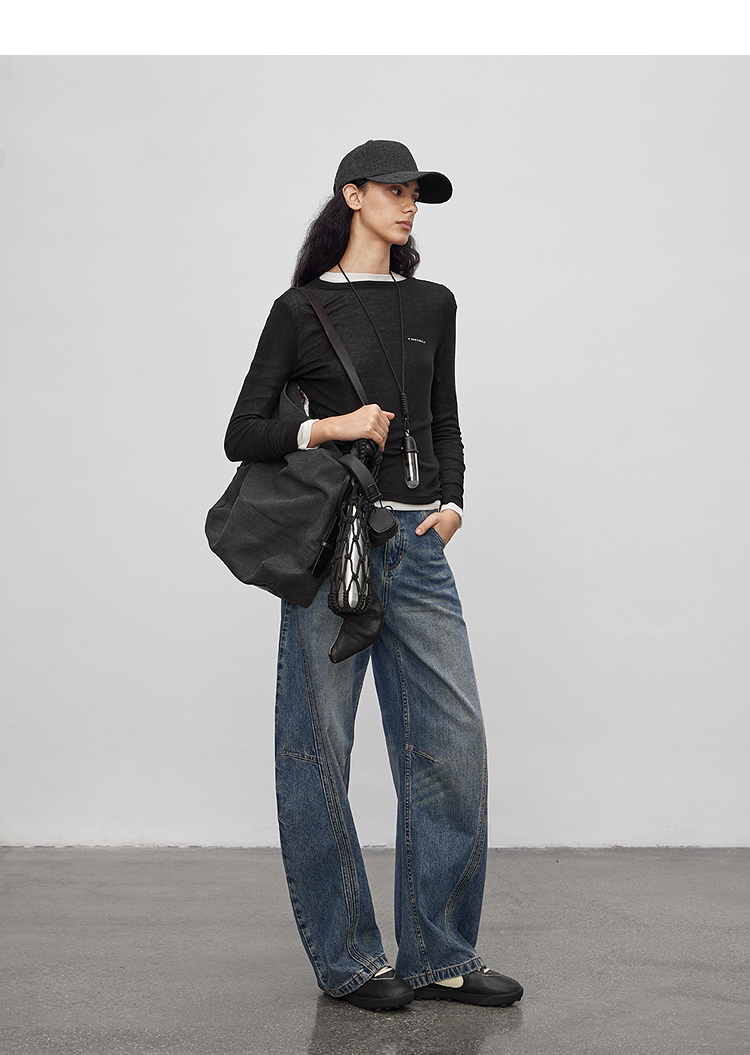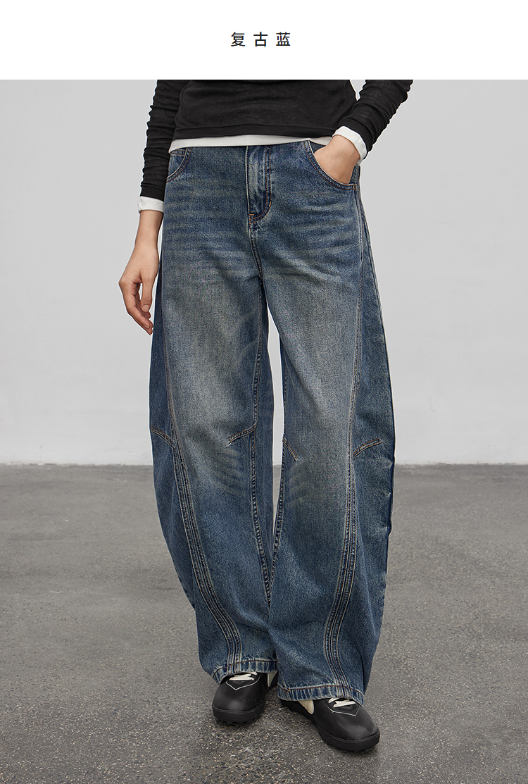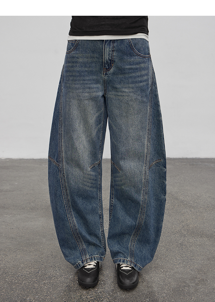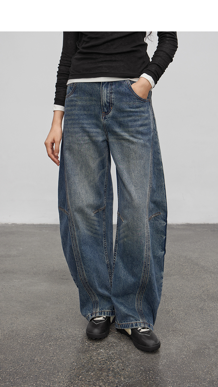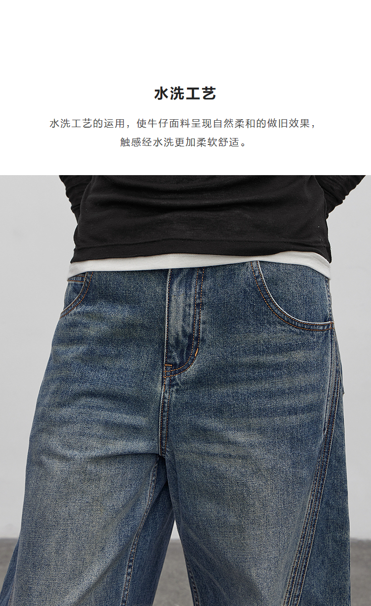 半圆/Q5113823/水洗工艺弯刀休闲裤
