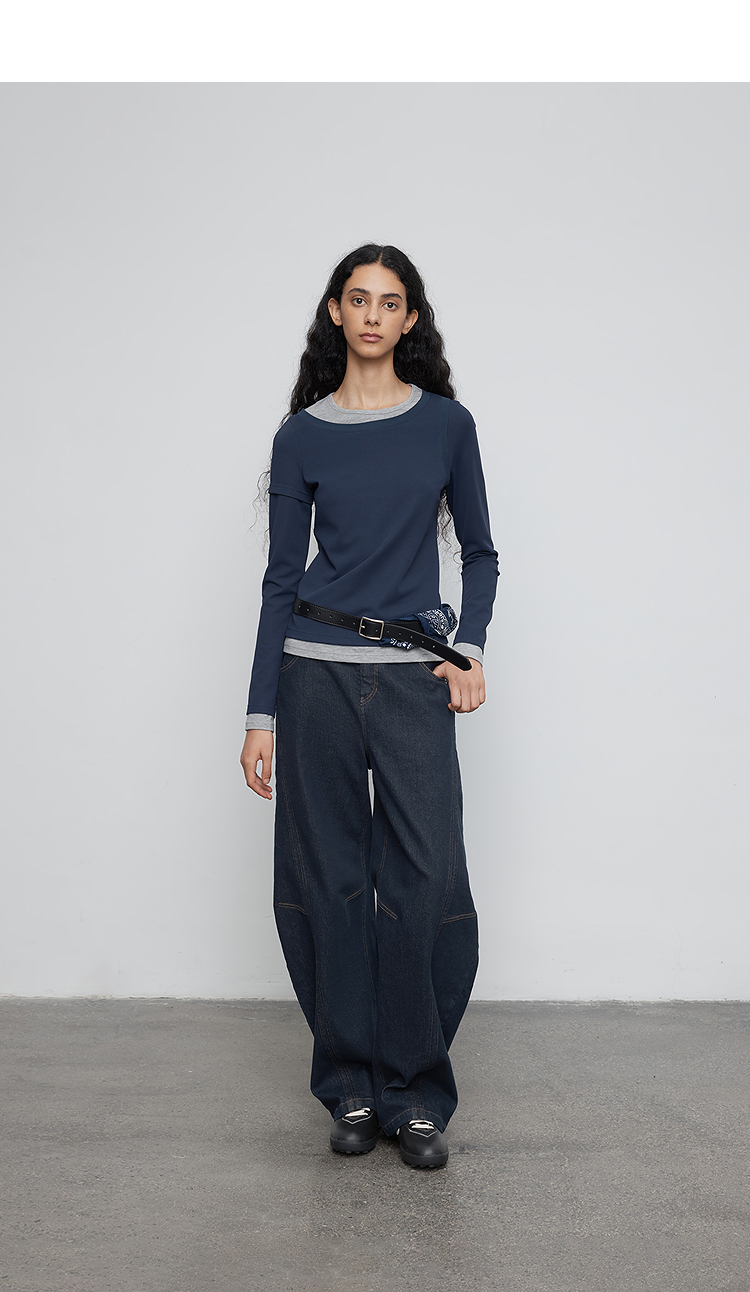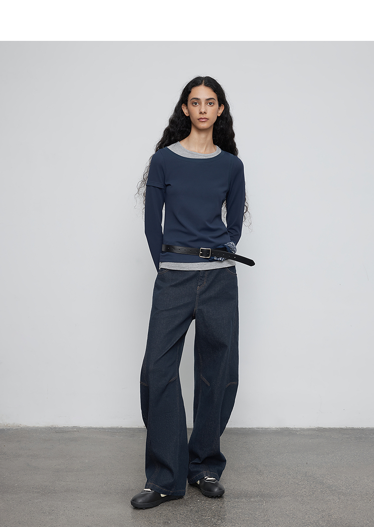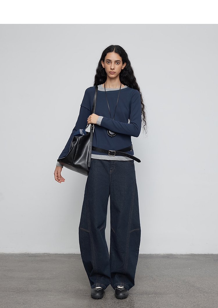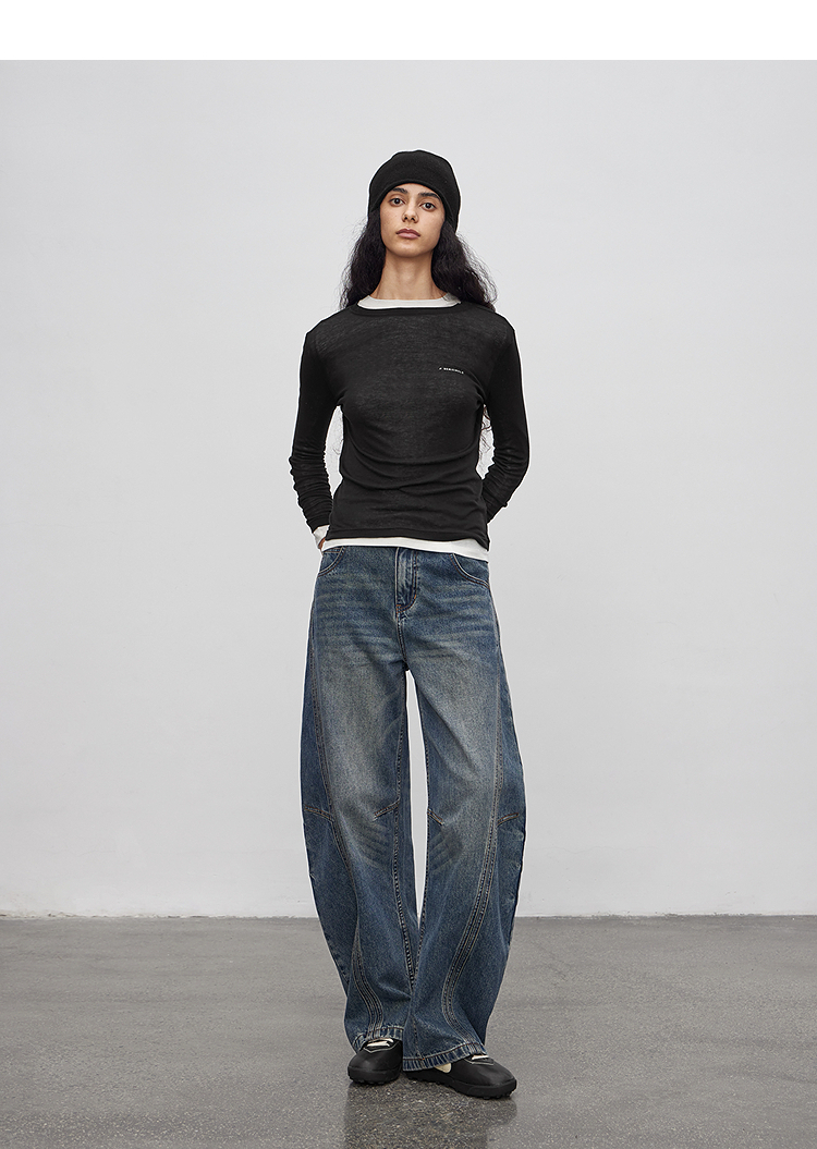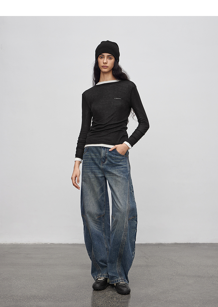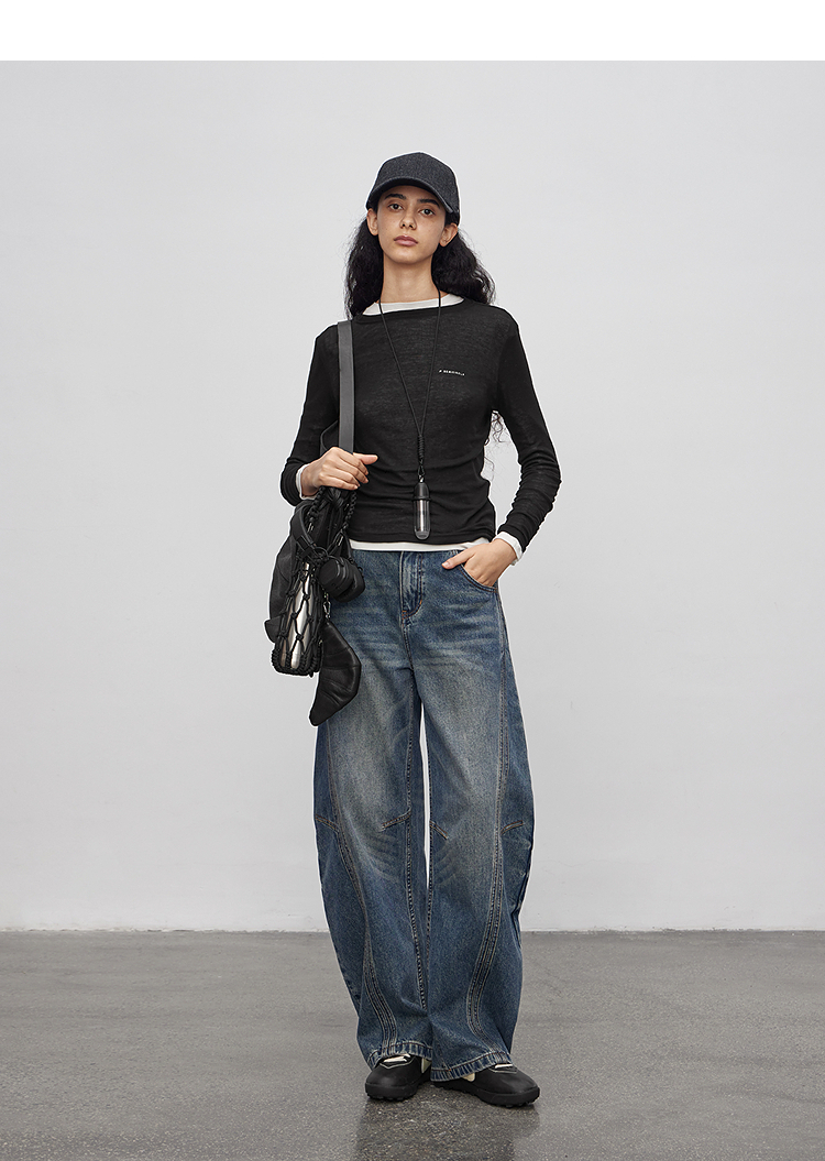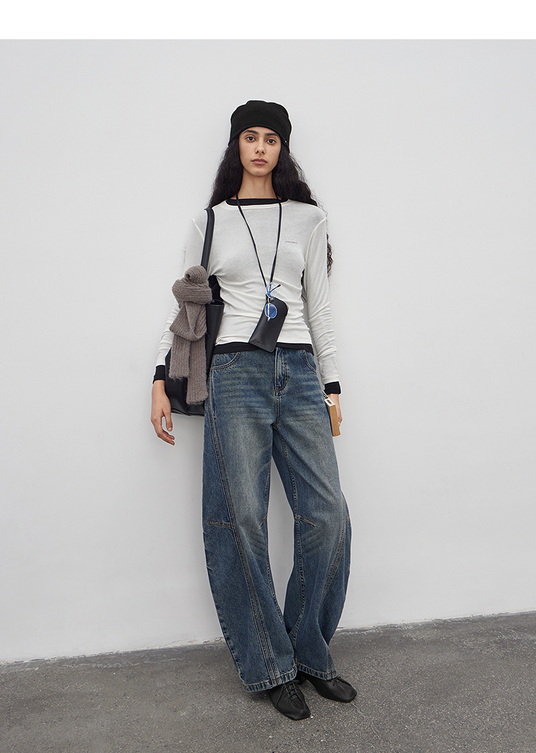 半圆/Q5113823/水洗工艺弯刀休闲裤