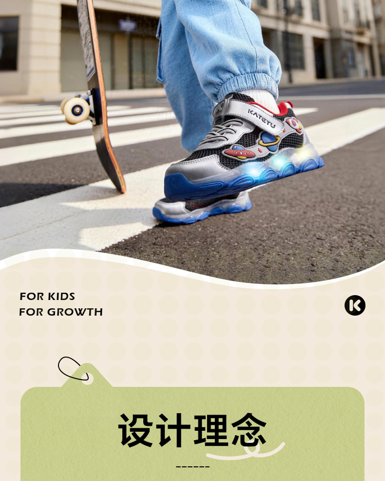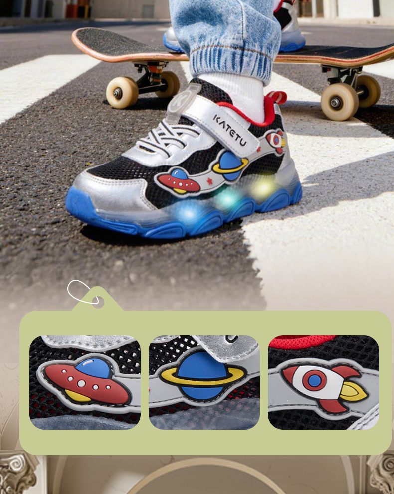 卡特兔儿童运动鞋男童2026年春季宝宝灯鞋老爹鞋防滑透气跑步鞋