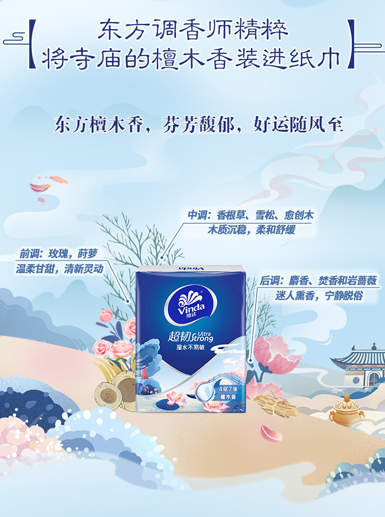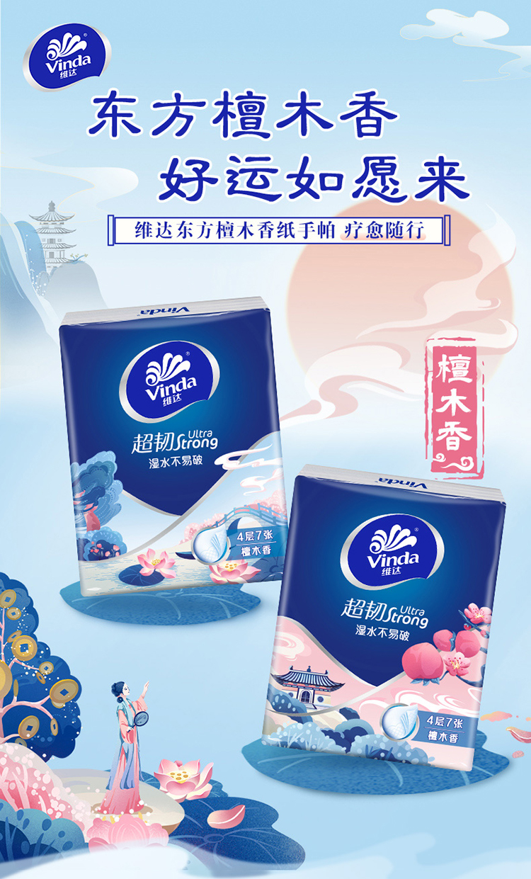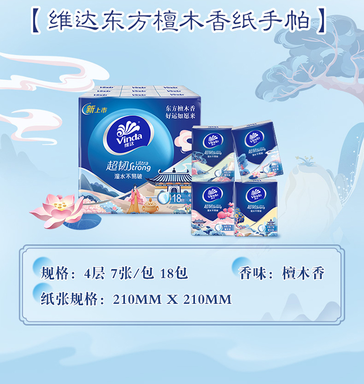 【官方包邮】维达超韧超迷你纸手帕4层7张18包装(檀木香味)