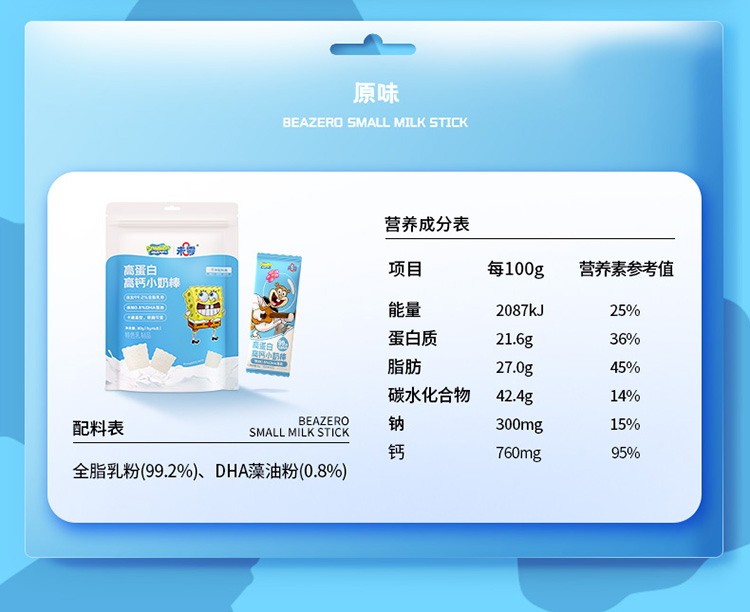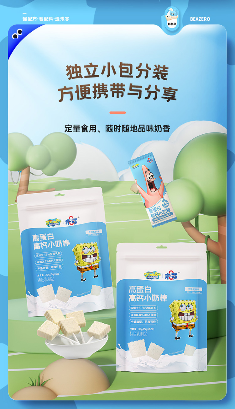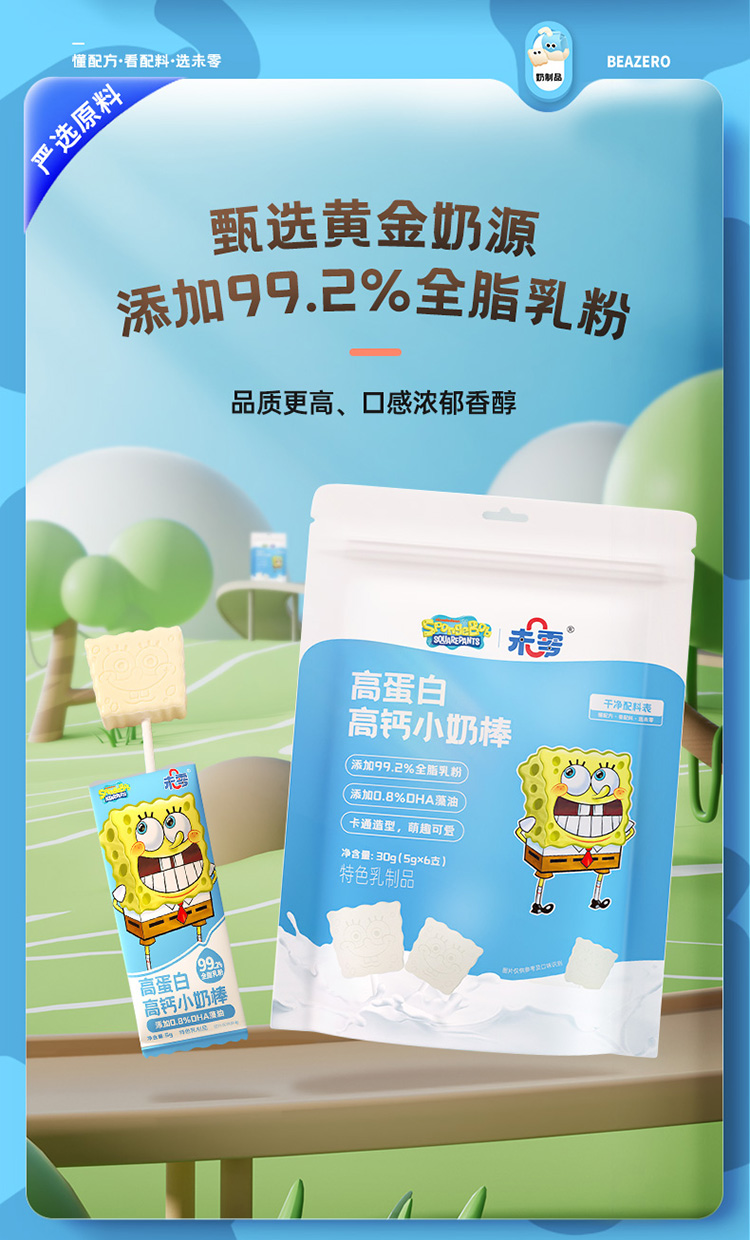 未零3袋高蛋白高钙小奶棒30g 添加DHA藻油 卡通造型