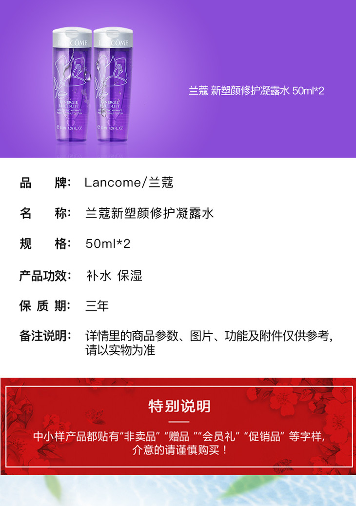 ·一般贸易· 【专柜版】兰蔻塑颜紧致凝露水 50ml*2 小样
