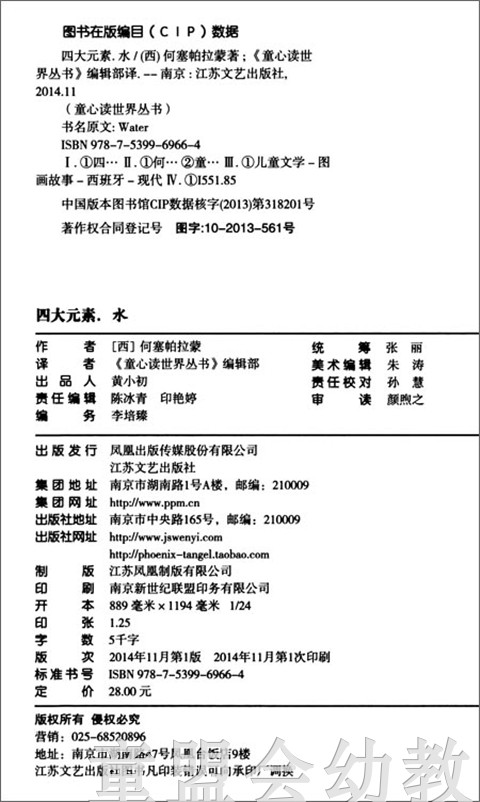 四大元素:水 何塞帕拉蒙 3-4-5-6儿童读物 江苏文艺出版社 正版