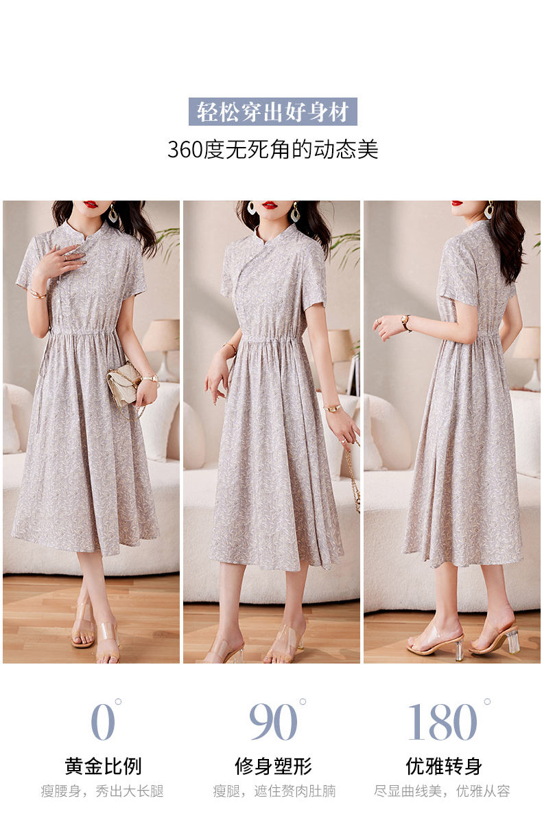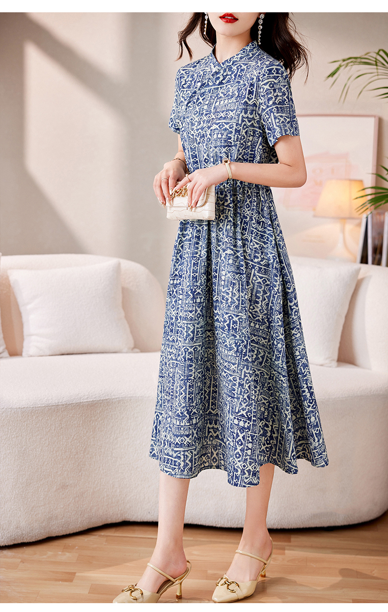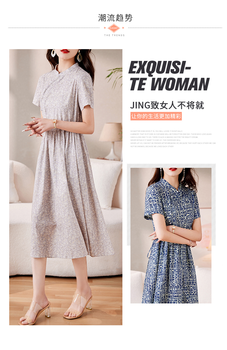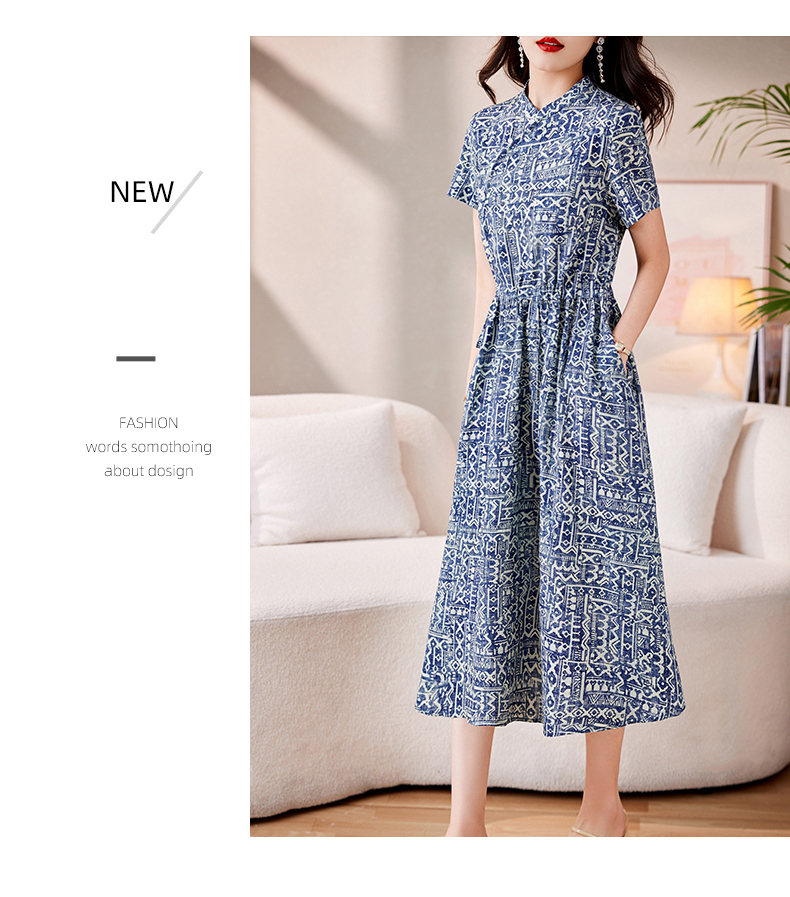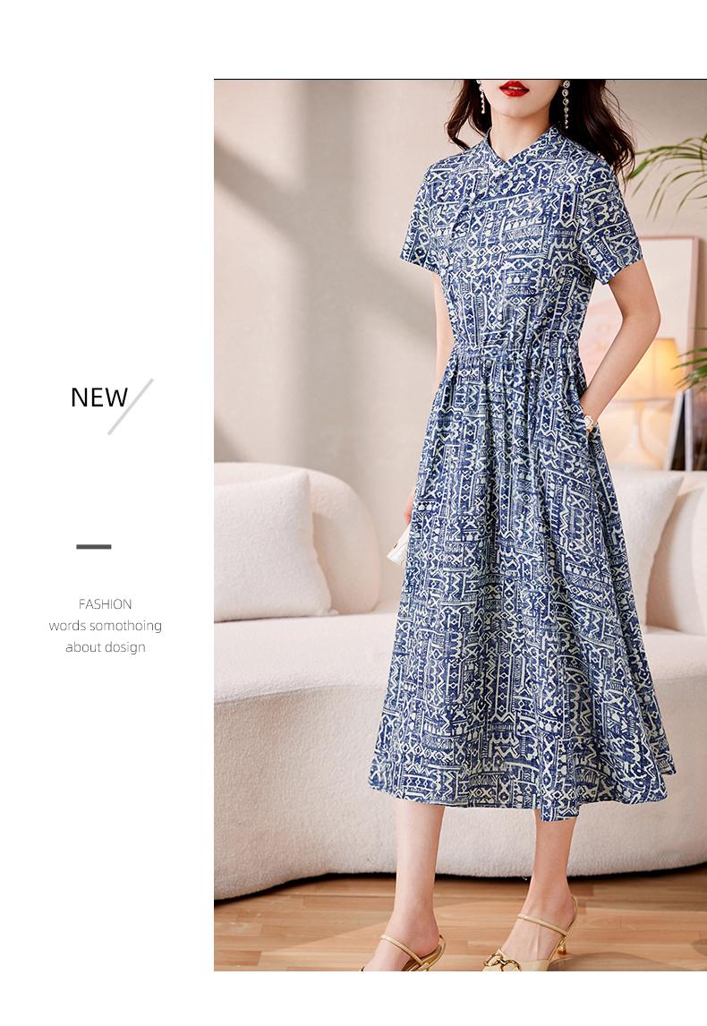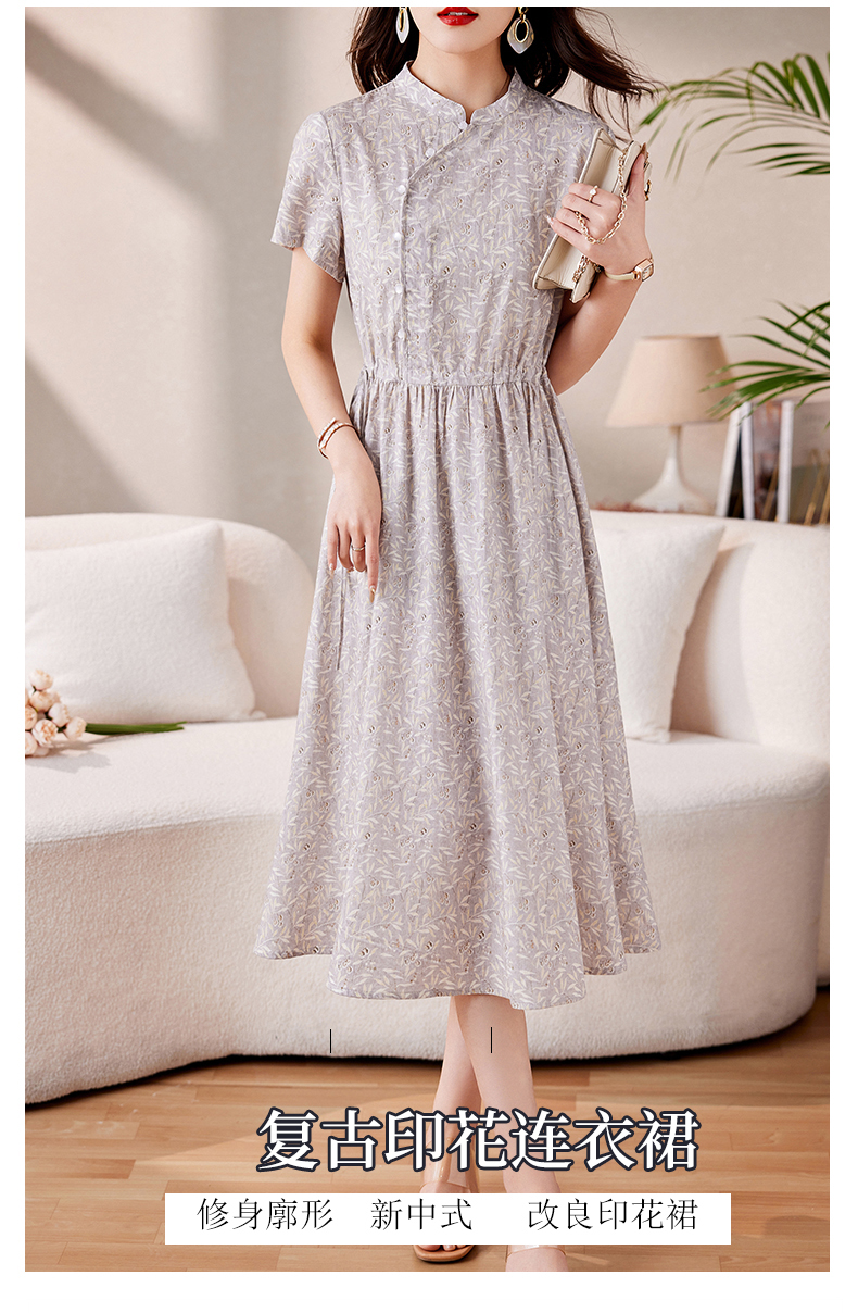 时髦洋气,印花复古减龄时尚连衣裙女新款夏季短袖中长款裙子HR-MEIQIN1716