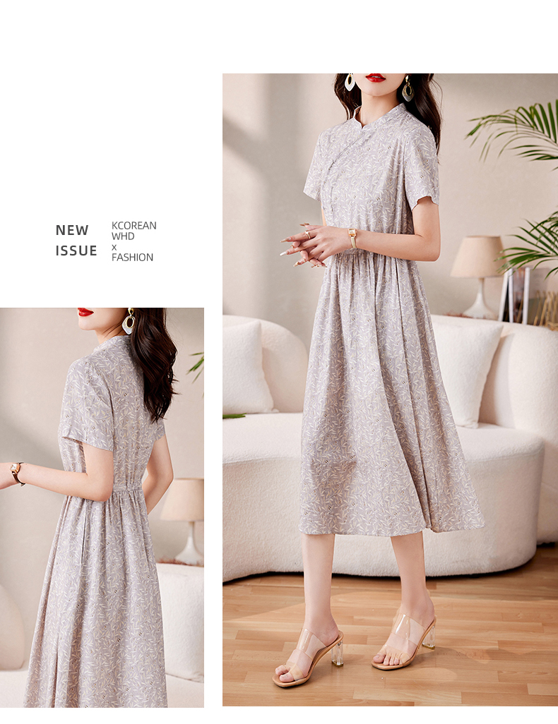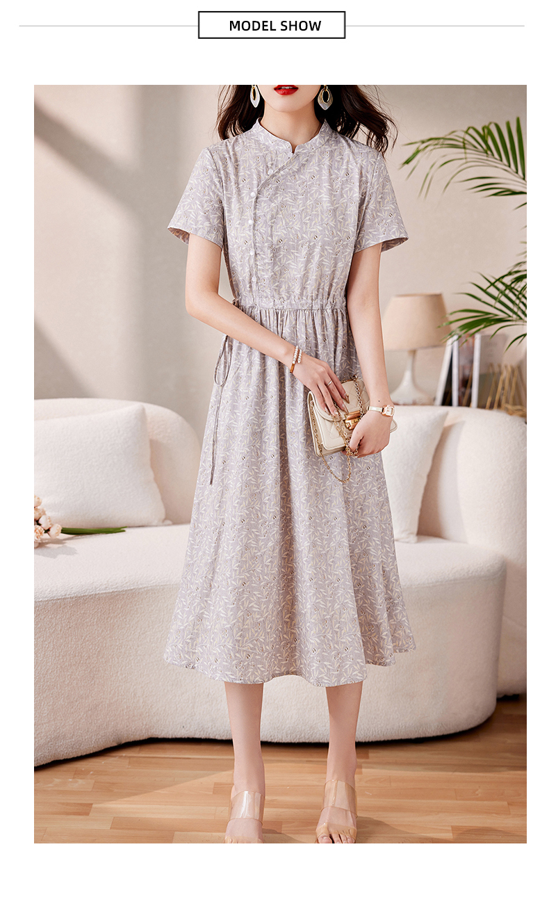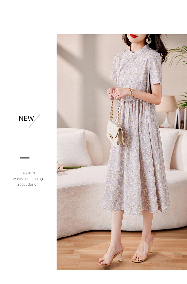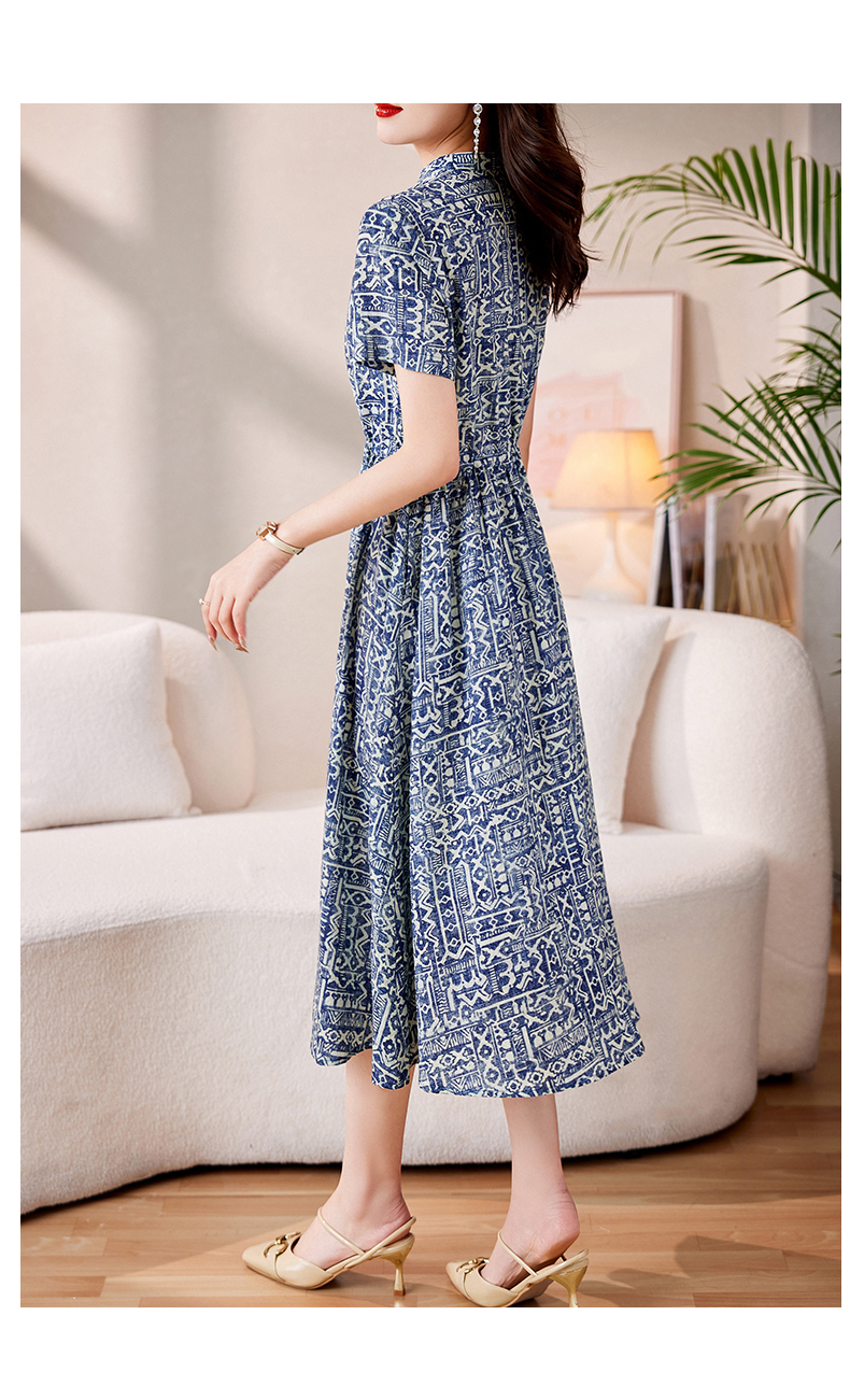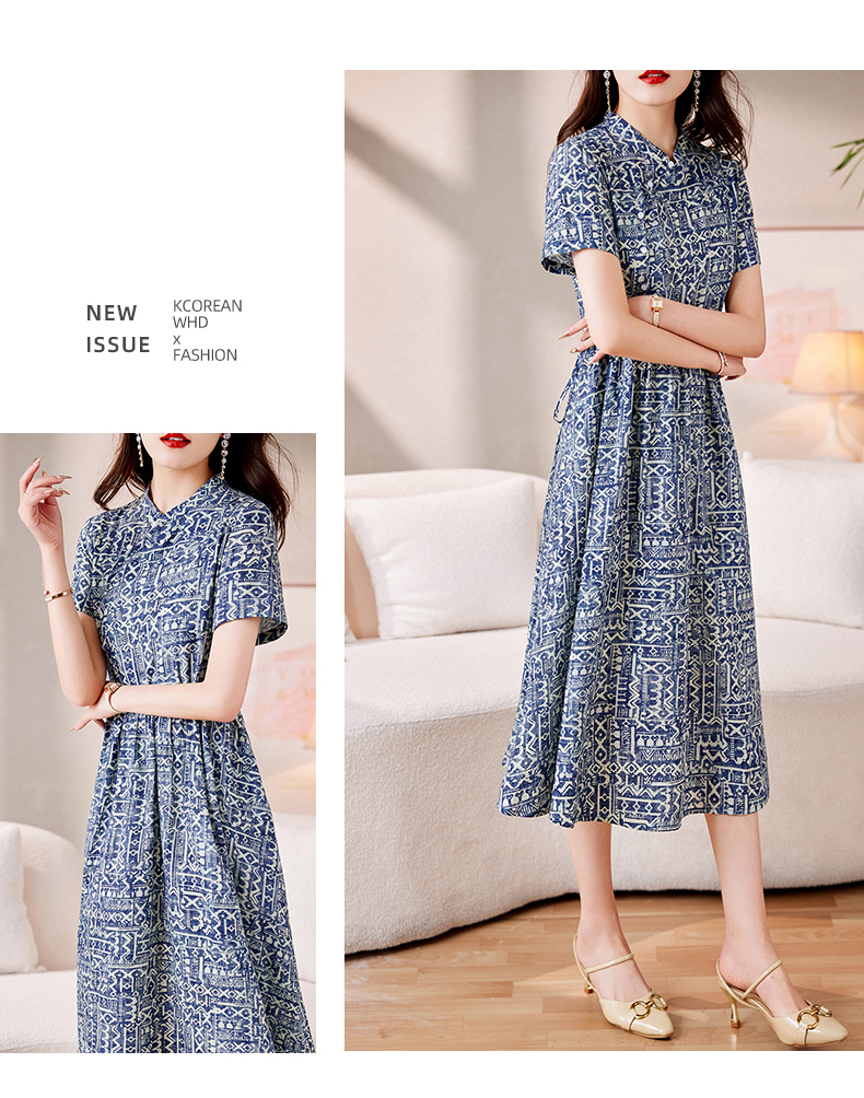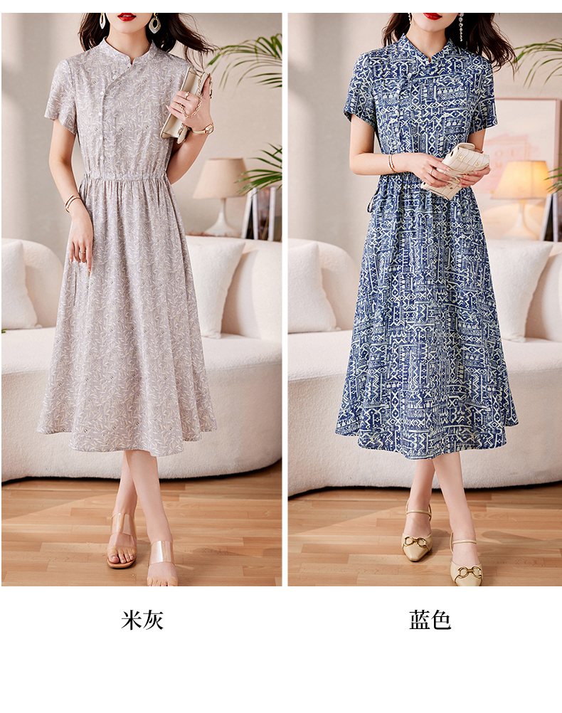 时髦洋气,印花复古减龄时尚连衣裙女新款夏季短袖中长款裙子HR-MEIQIN1716