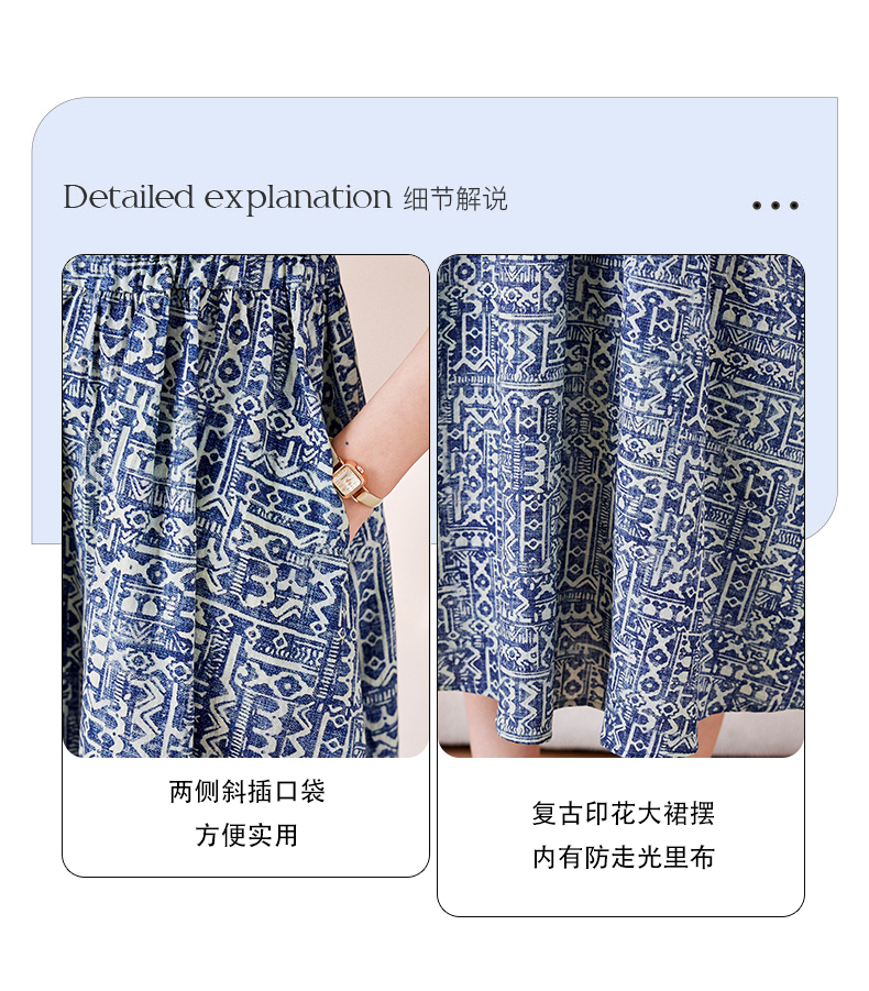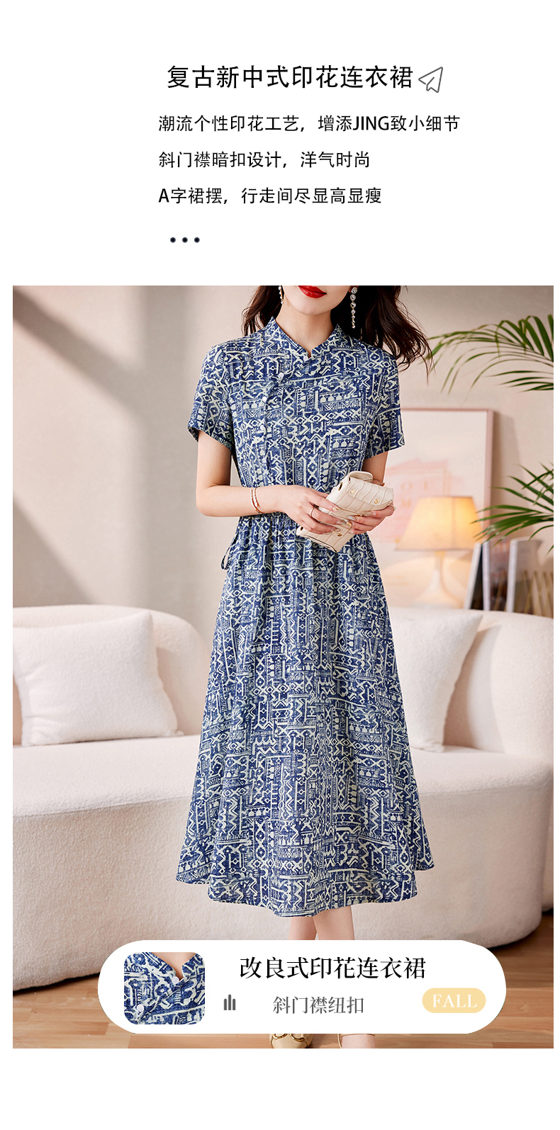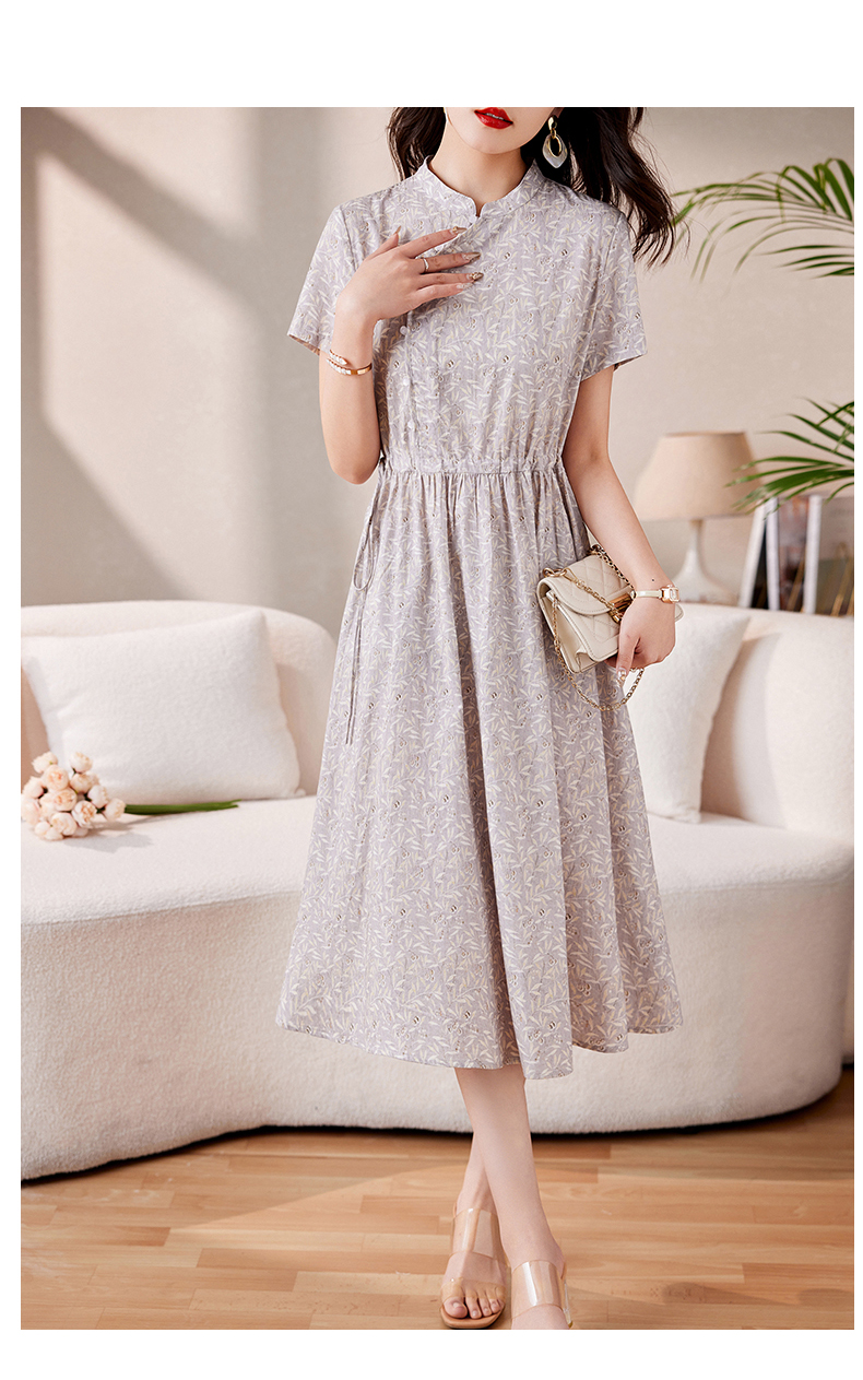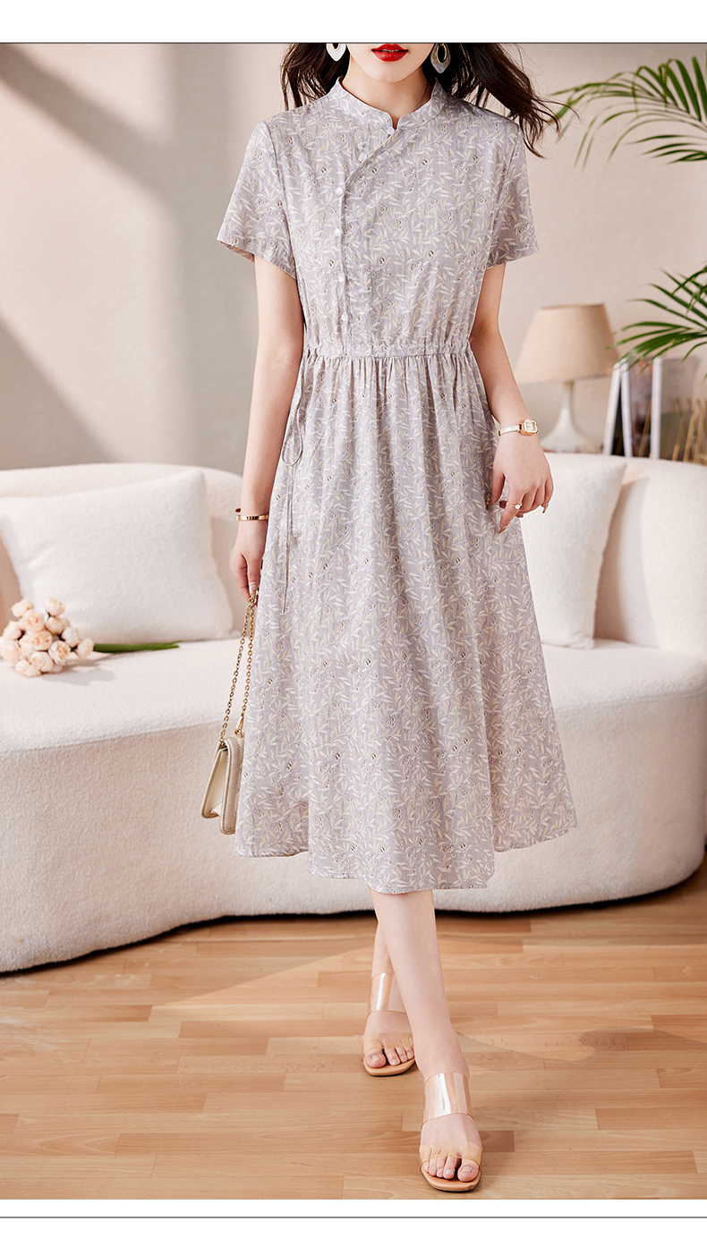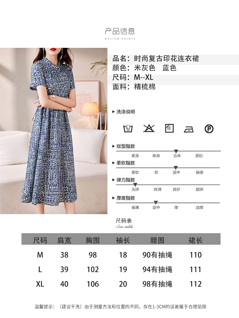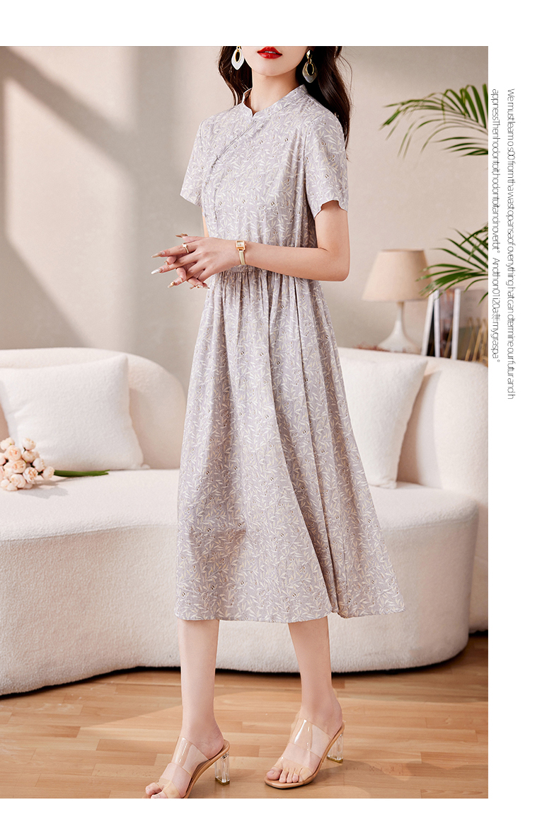 时髦洋气,印花复古减龄时尚连衣裙女新款夏季短袖中长款裙子HR-MEIQIN1716