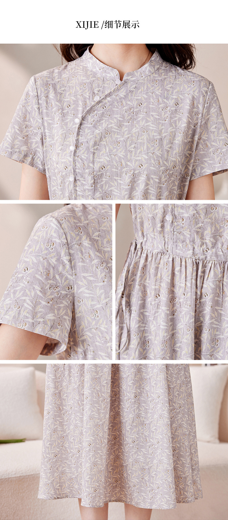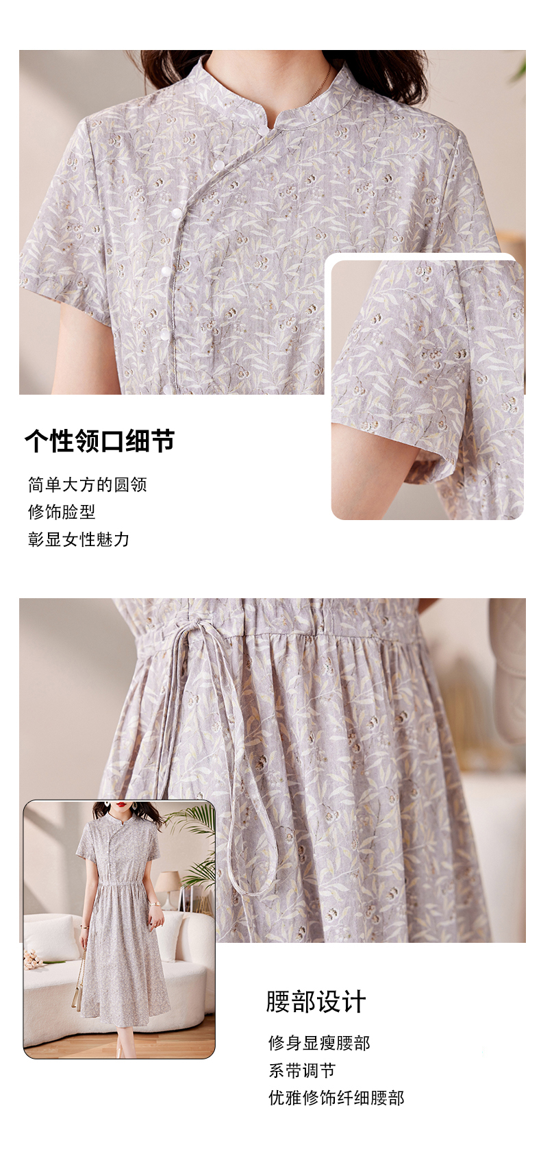 棉麻连衣裙夏天薄款大码女装甜美气质碎花棉绸长裙子HS-1818