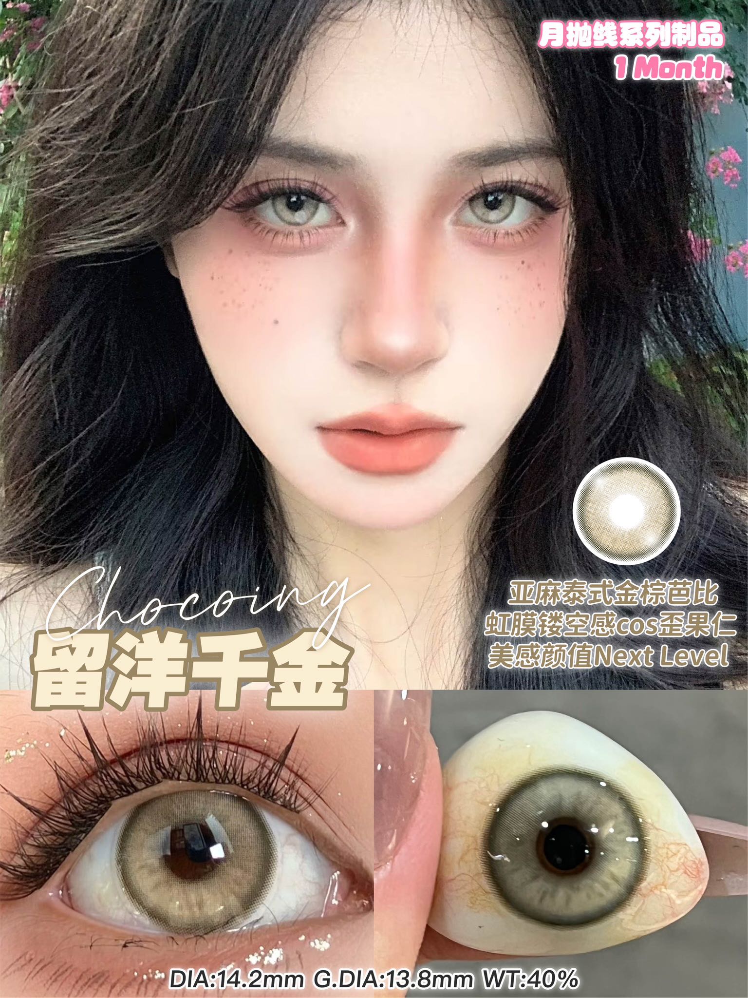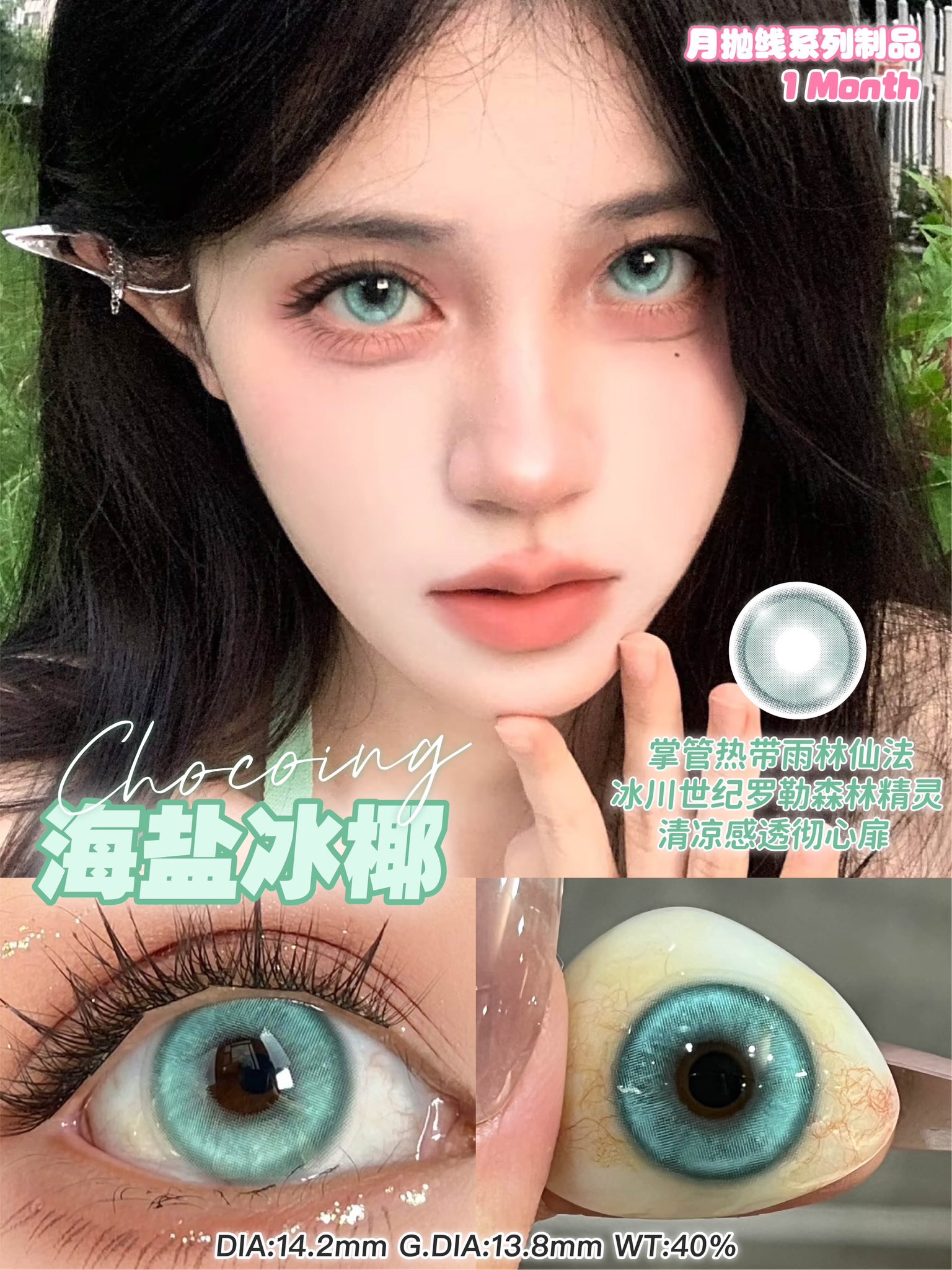 chocoing月抛 花园仙境紫/仙境蓝/海盐冰椰/碱性因子/留洋千金/血腥灵药 14.5mm 紫蓝绿金棕红