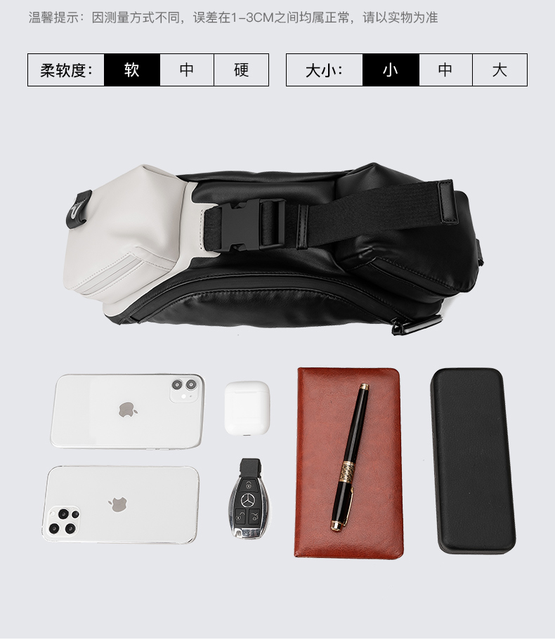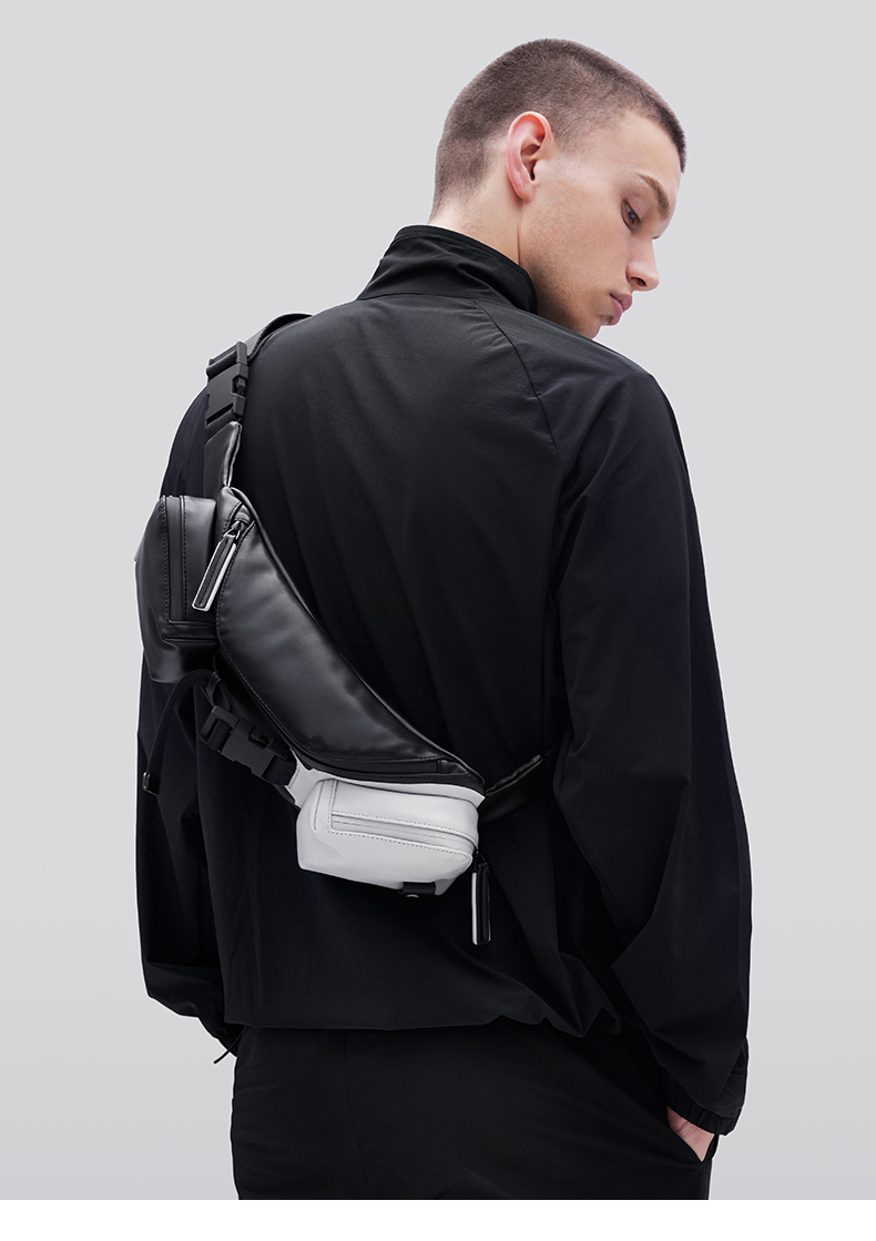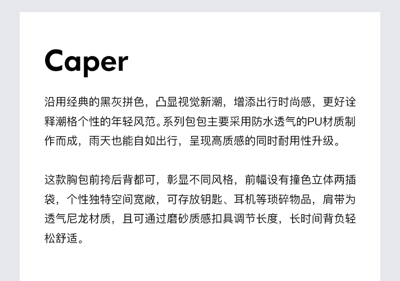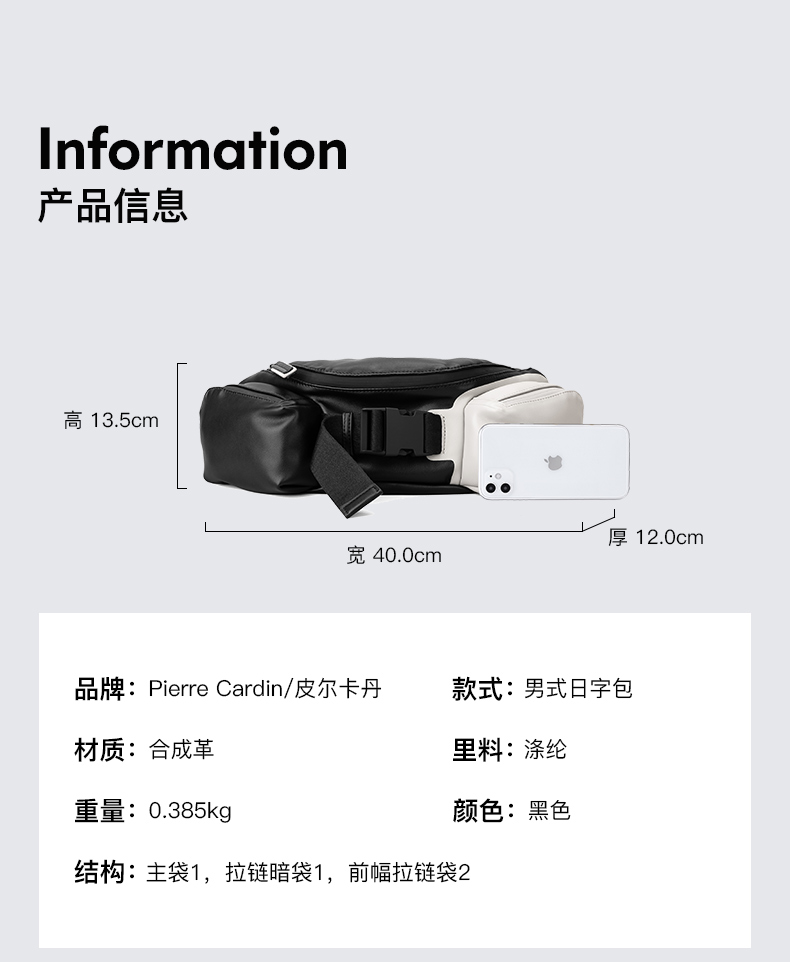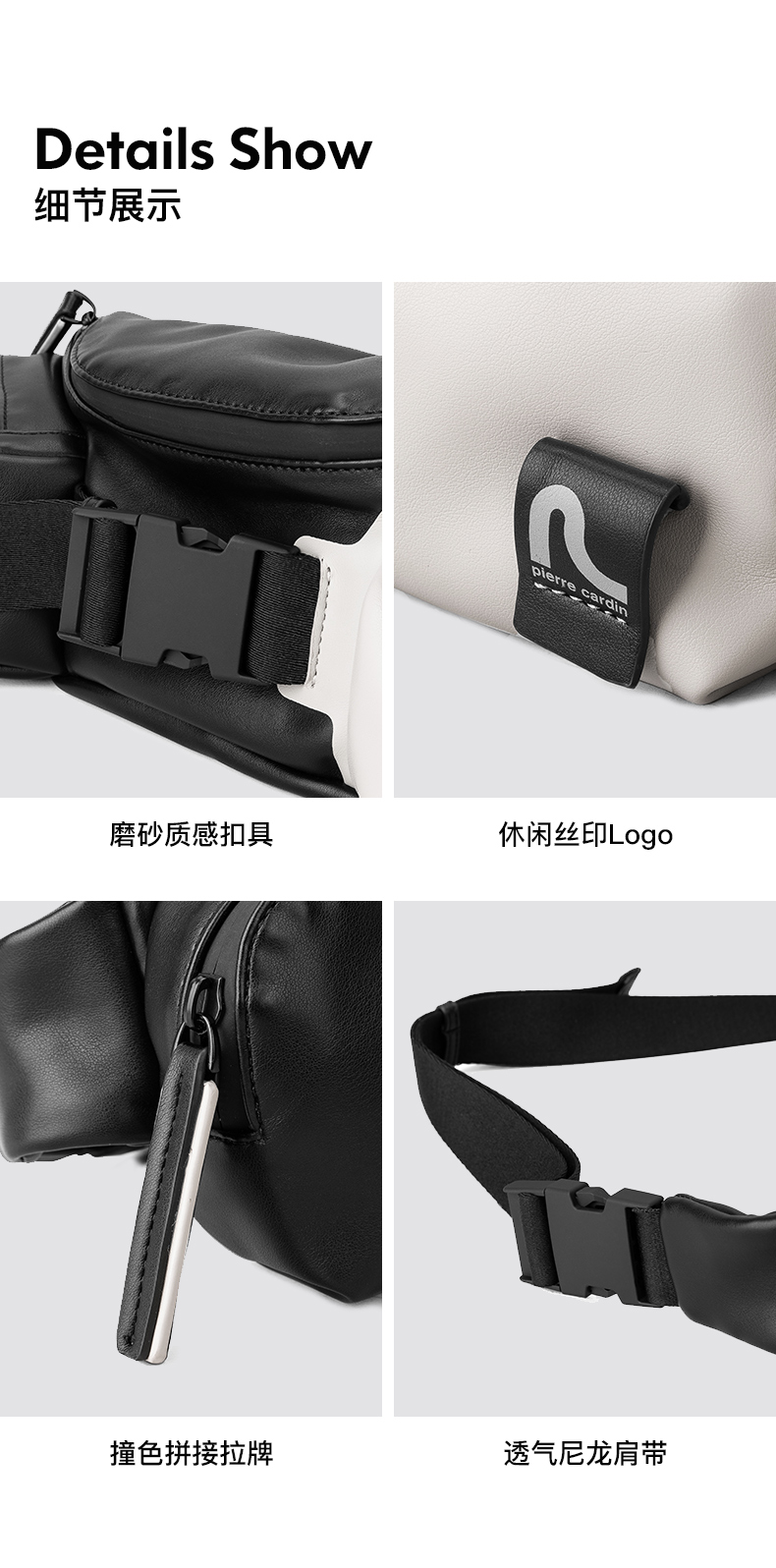 皮尔卡丹caper系列 撞色胸包男式斜挎包