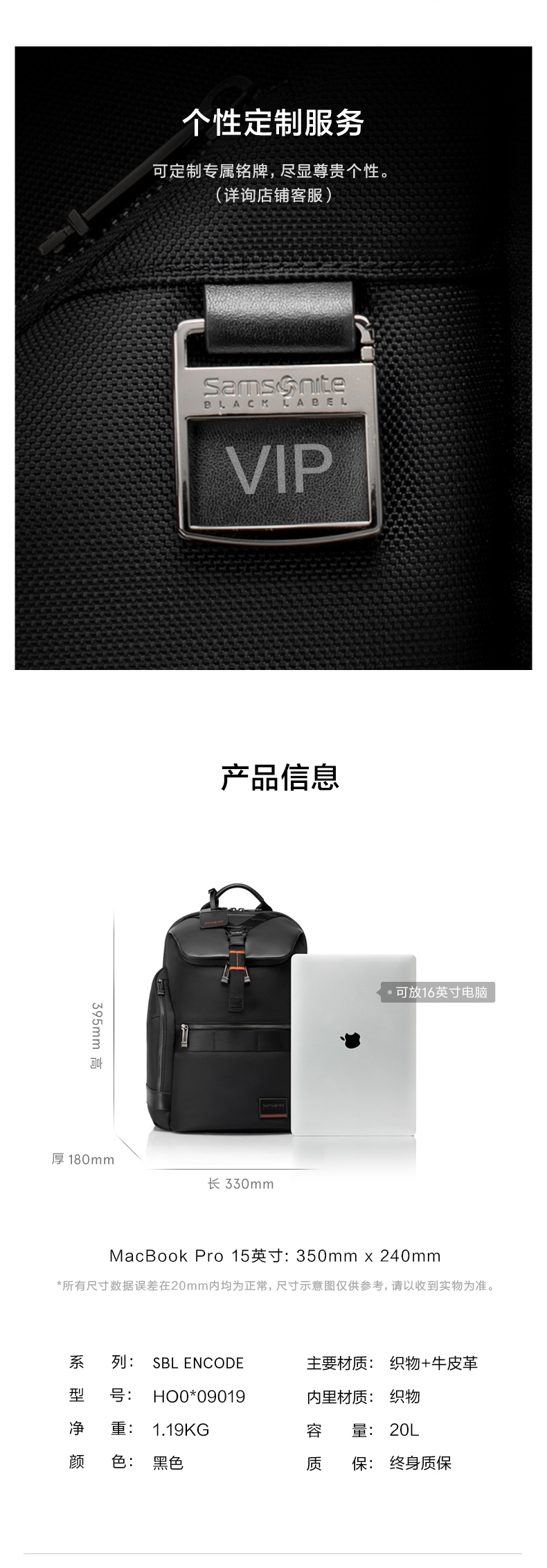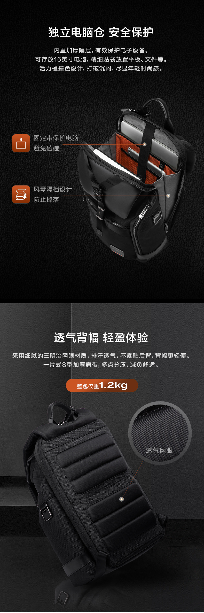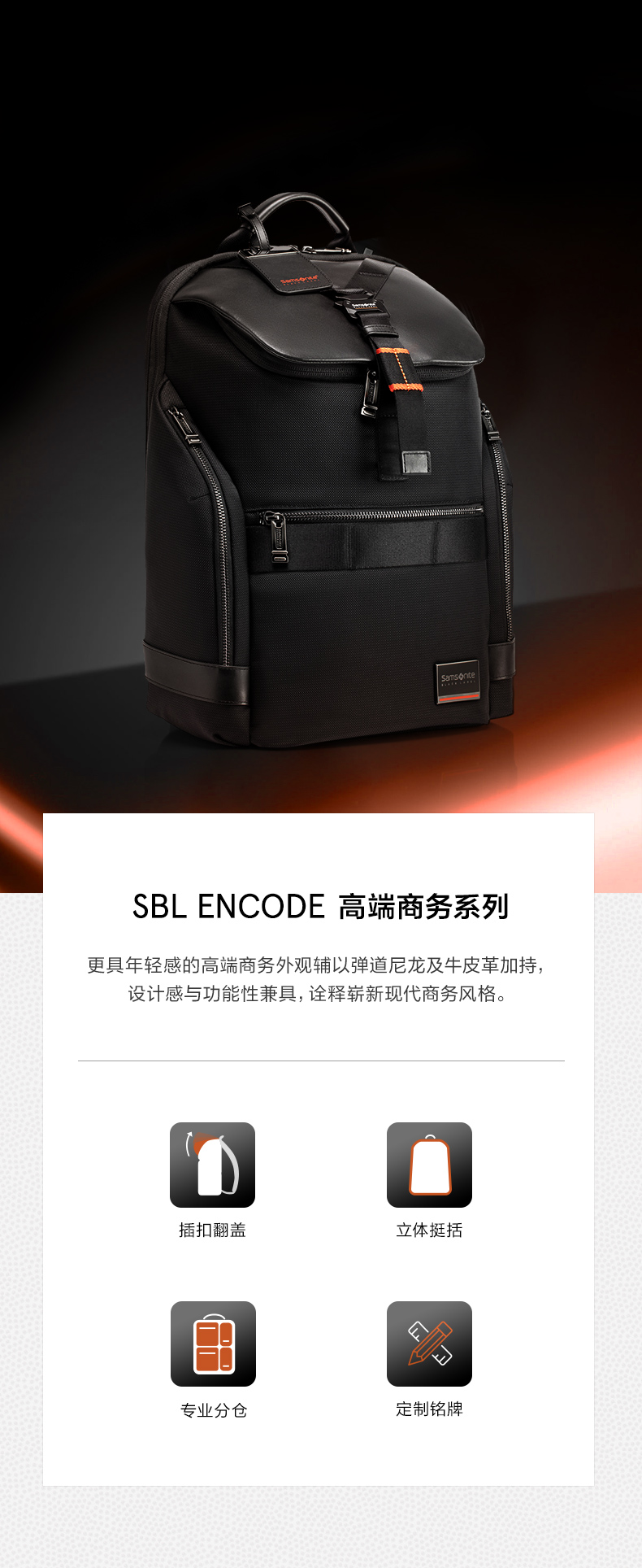新秀丽SBL ENCODE高端黑标系列 男士商务时尚翻盖双肩包HO0*019