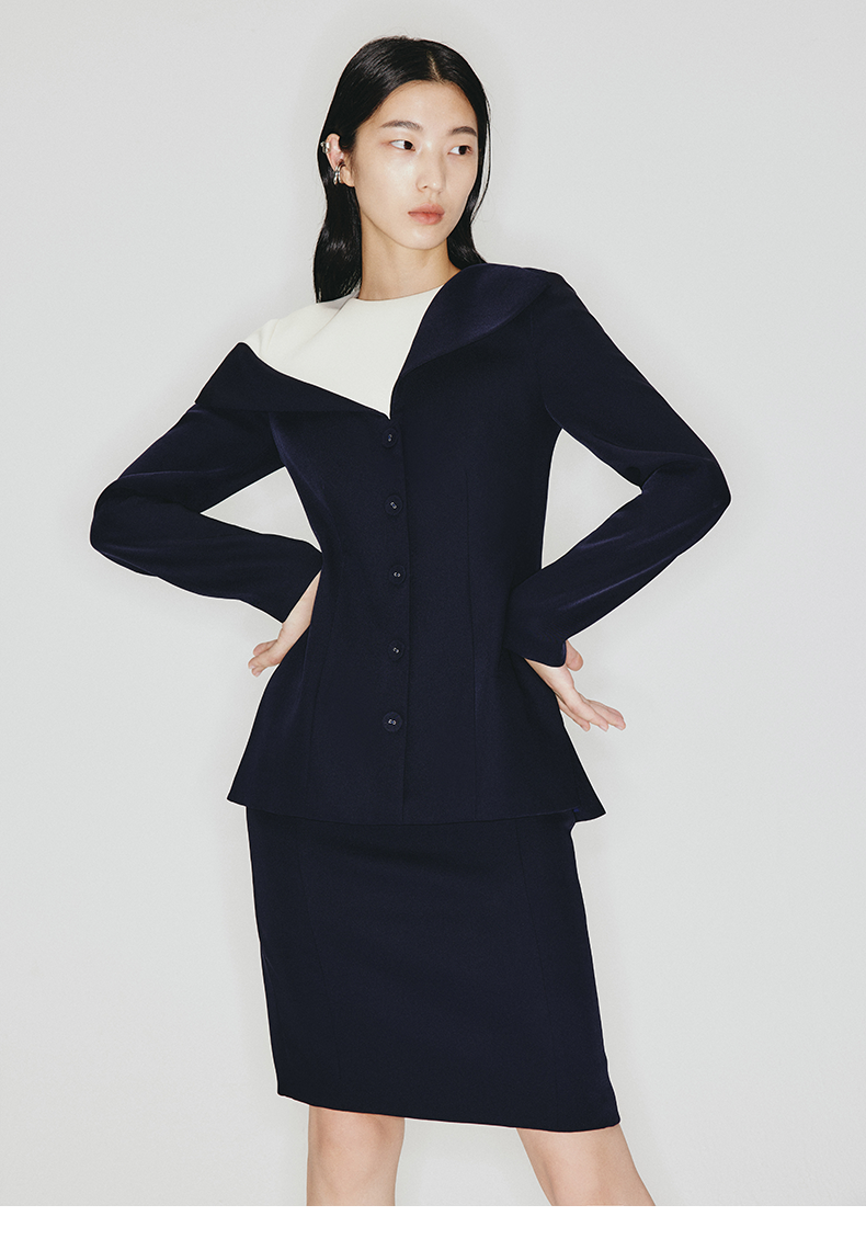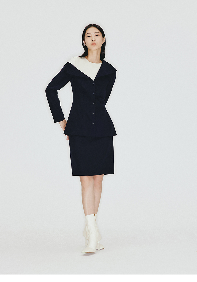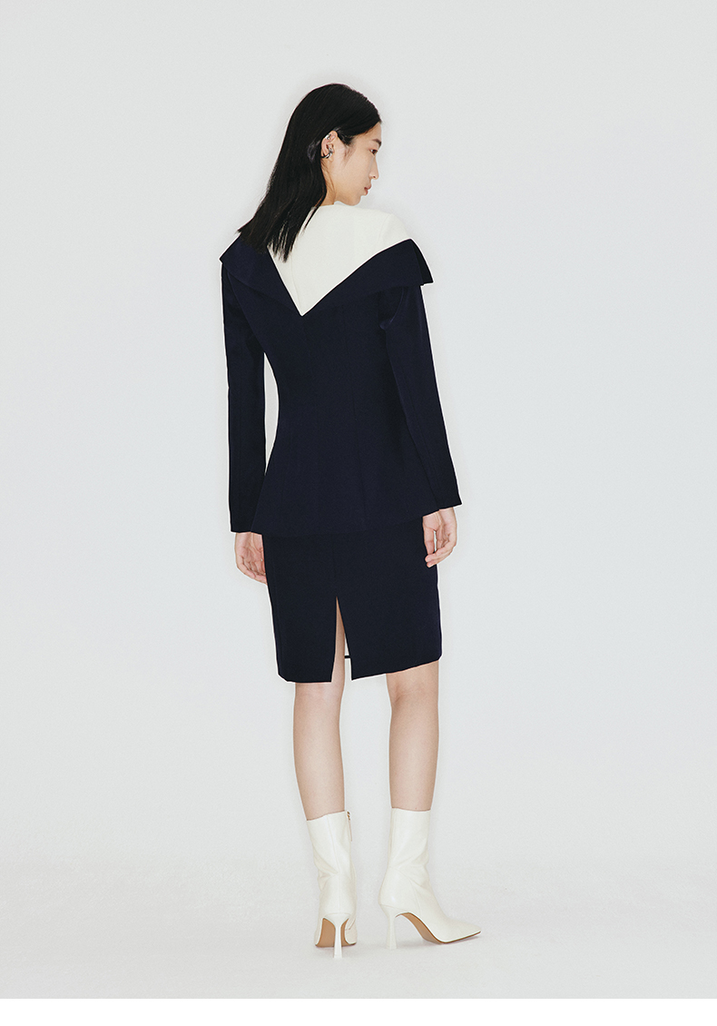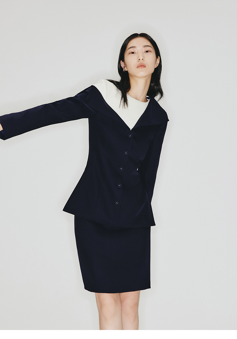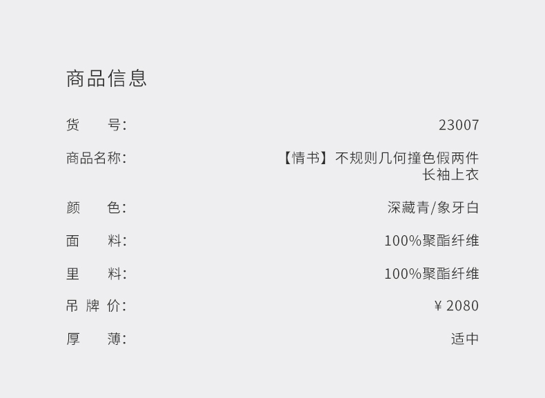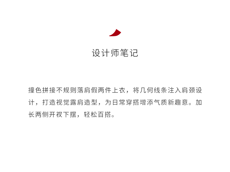 【情书】不规则几何撞色假两件长袖上衣/23007