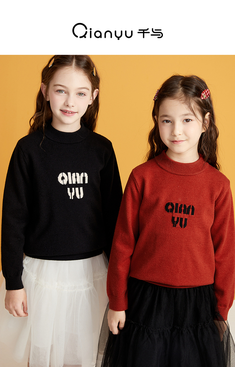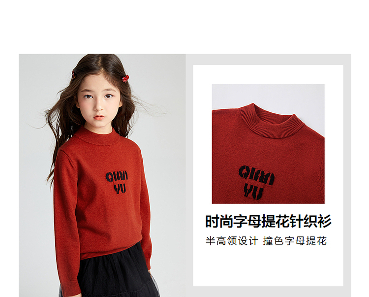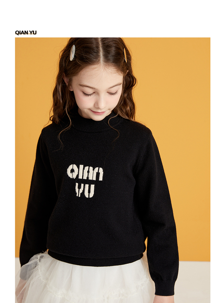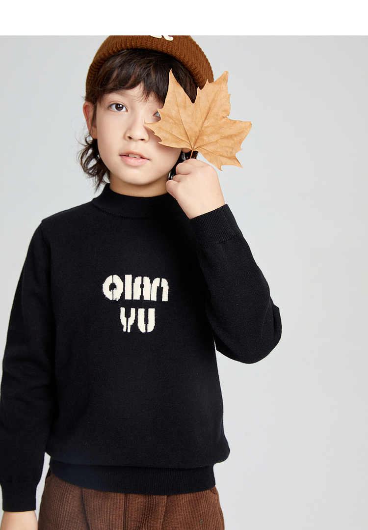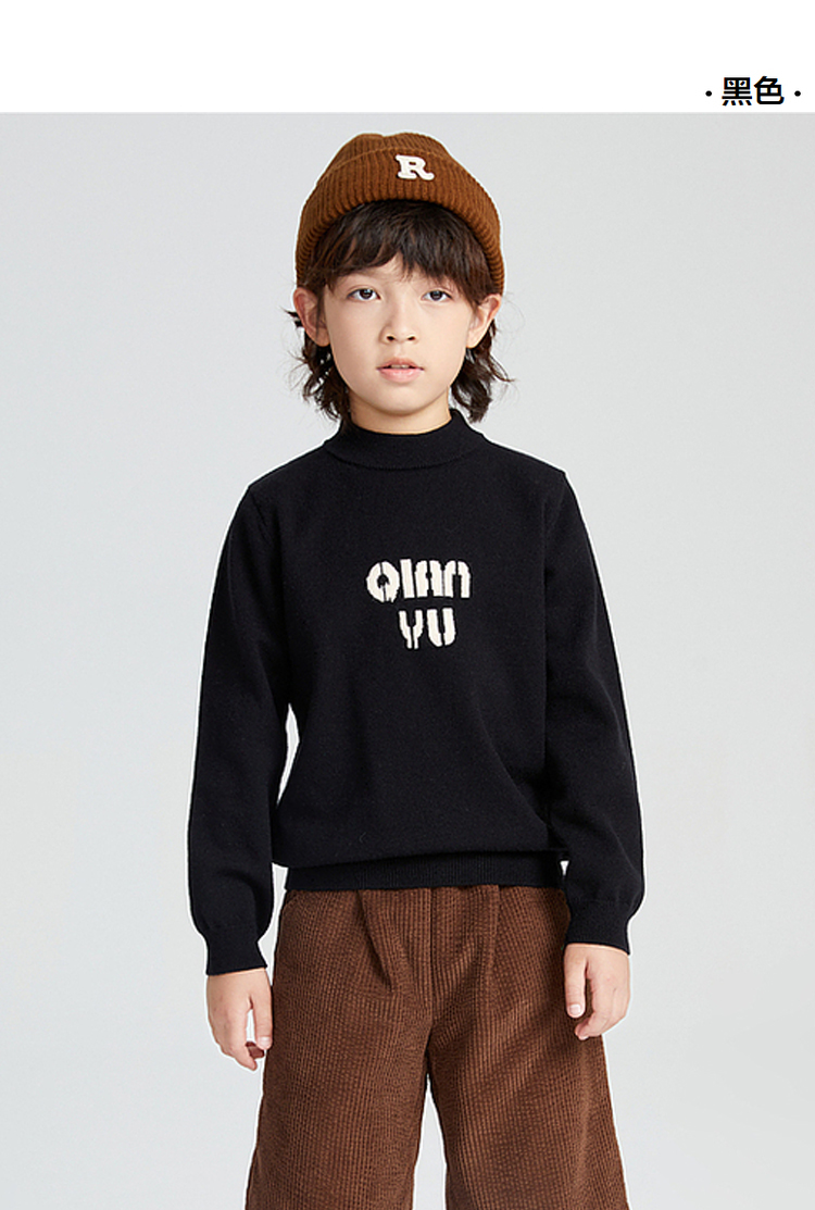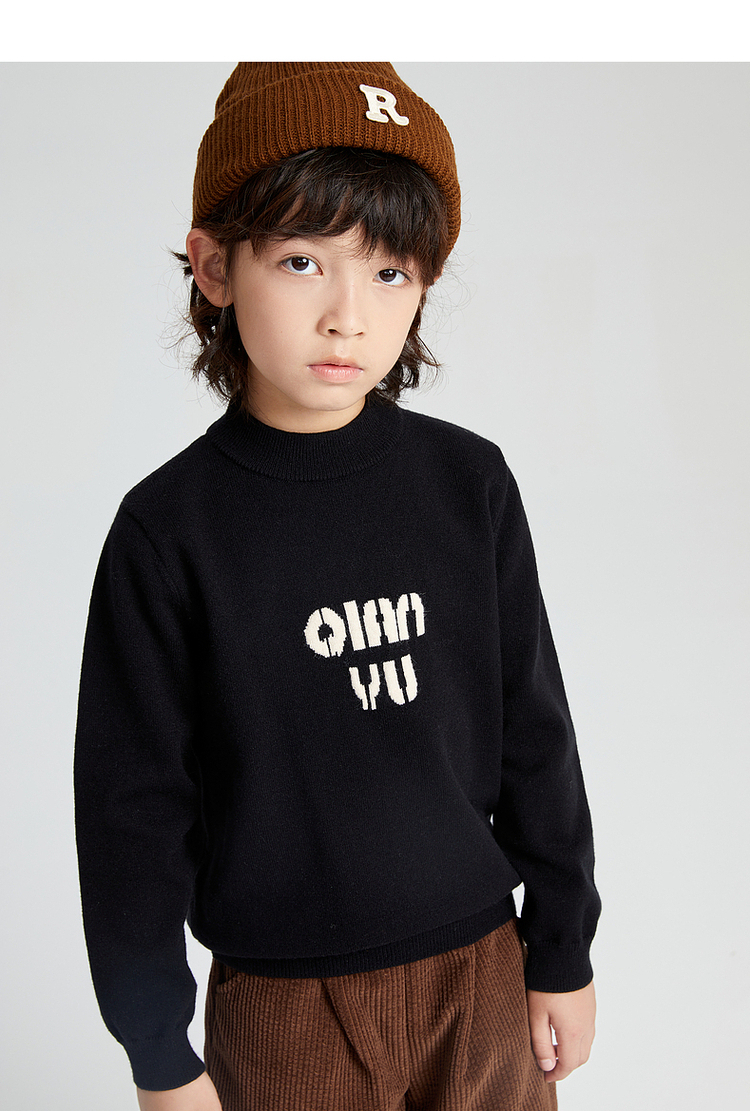 笛莎千与2024冬季新款男女童同款时尚字母提花针织衫